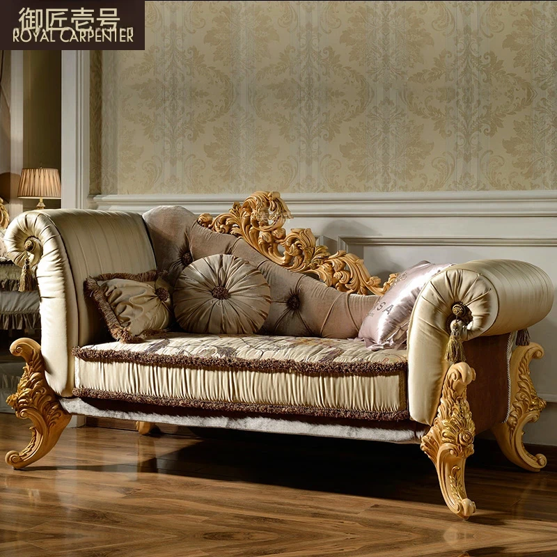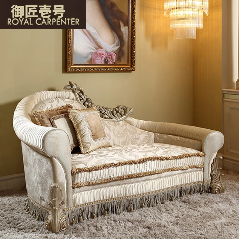 御匠壹号 欧風ソファセット 高級感溢れる無垢材彫刻入りファブリックの貴妃椅子 豪華な別荘リビング家具で、極上のくつろぎを体験してください。