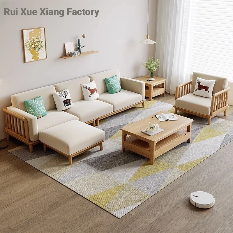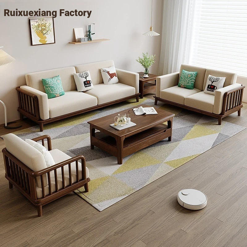 2023 New Nordic Style YF-161 Solid Wood Sofa with Modern Minimalist Design - Perfect for Your Living Room, Home Use, and Japanese-Inspired Cushions.