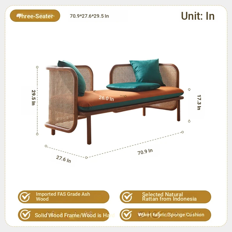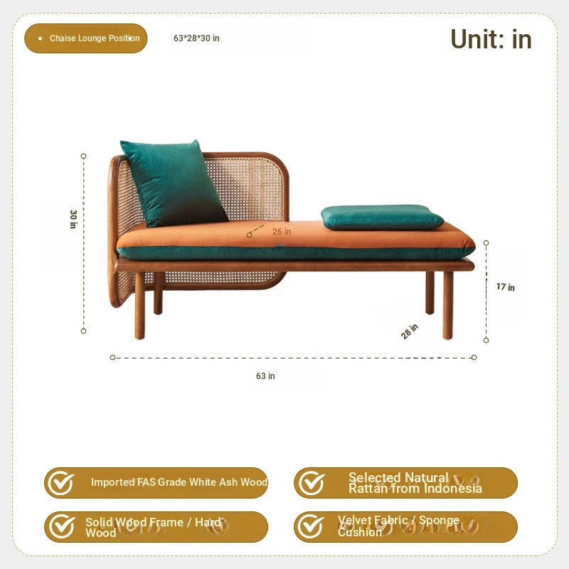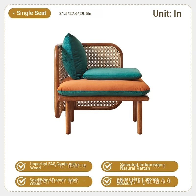 2023 New Rattan Sofa Set for Home - Minimalist Solid Wood Design, Wabi-Sabi Style Chaise Lounge, Perfect for Cozy Living Rooms and Boutique Hotels