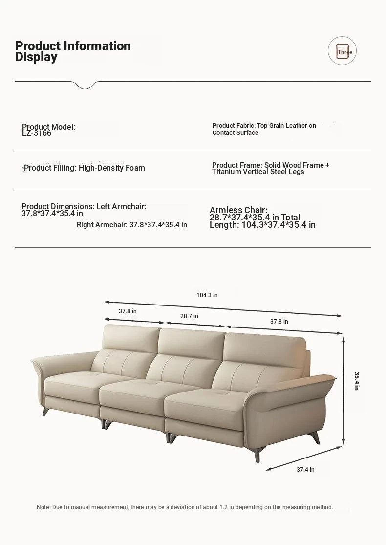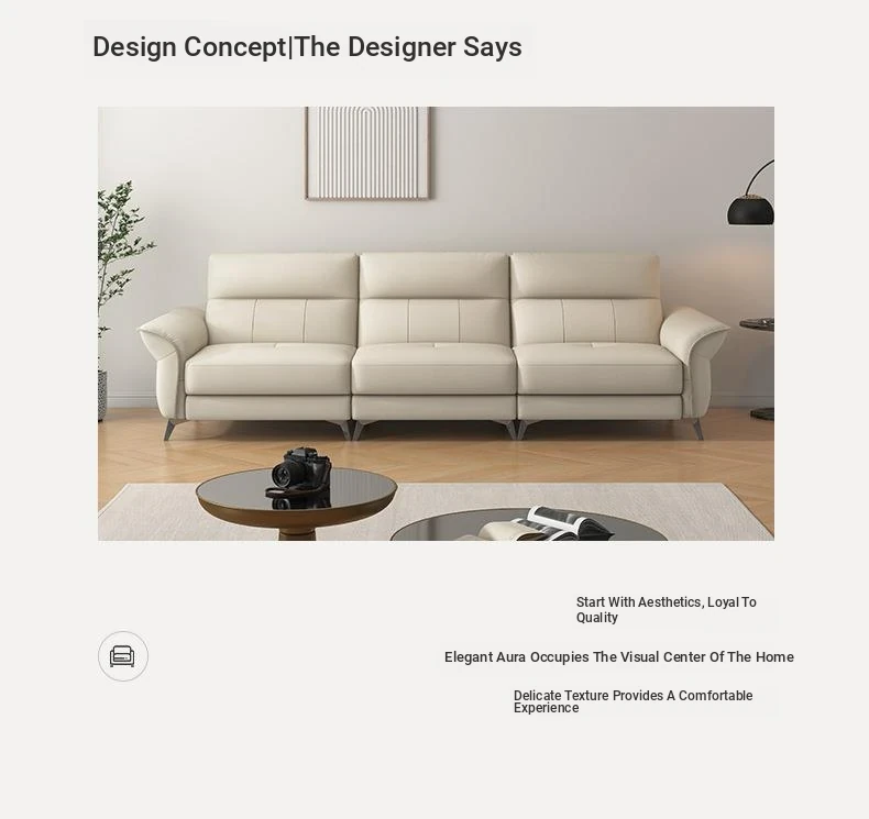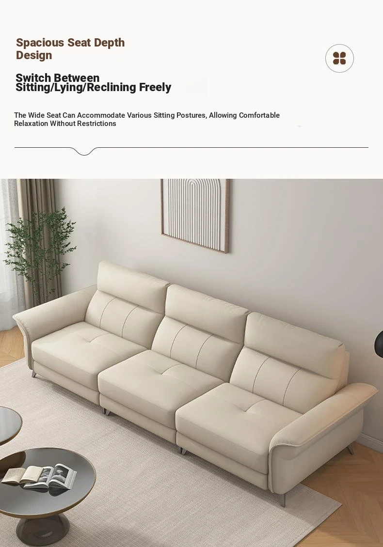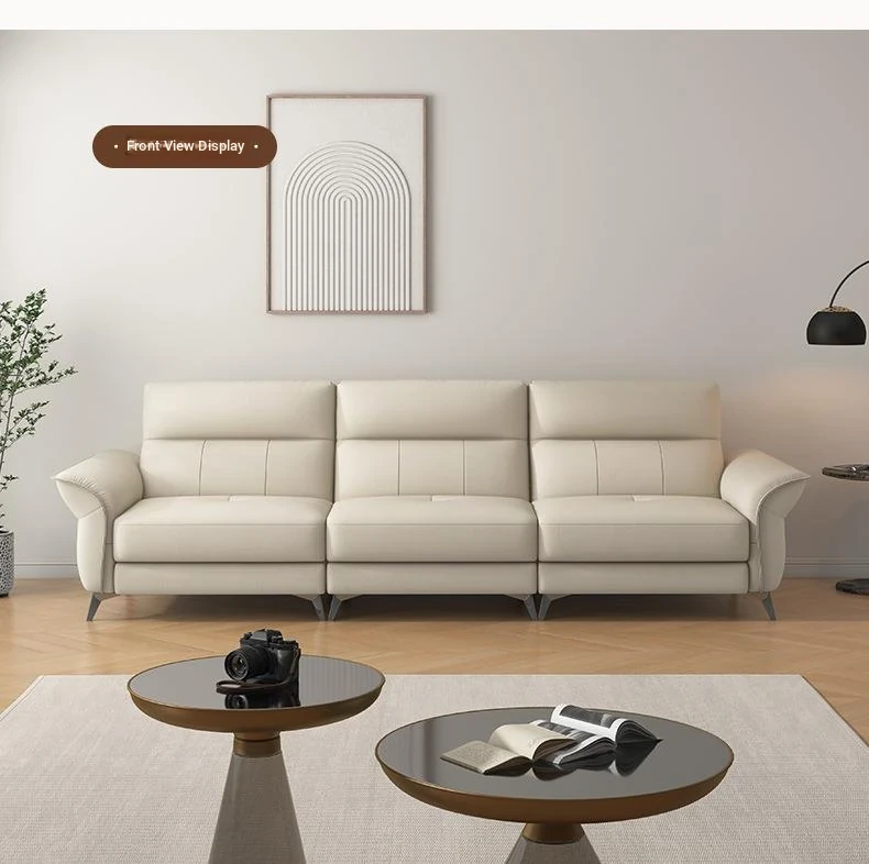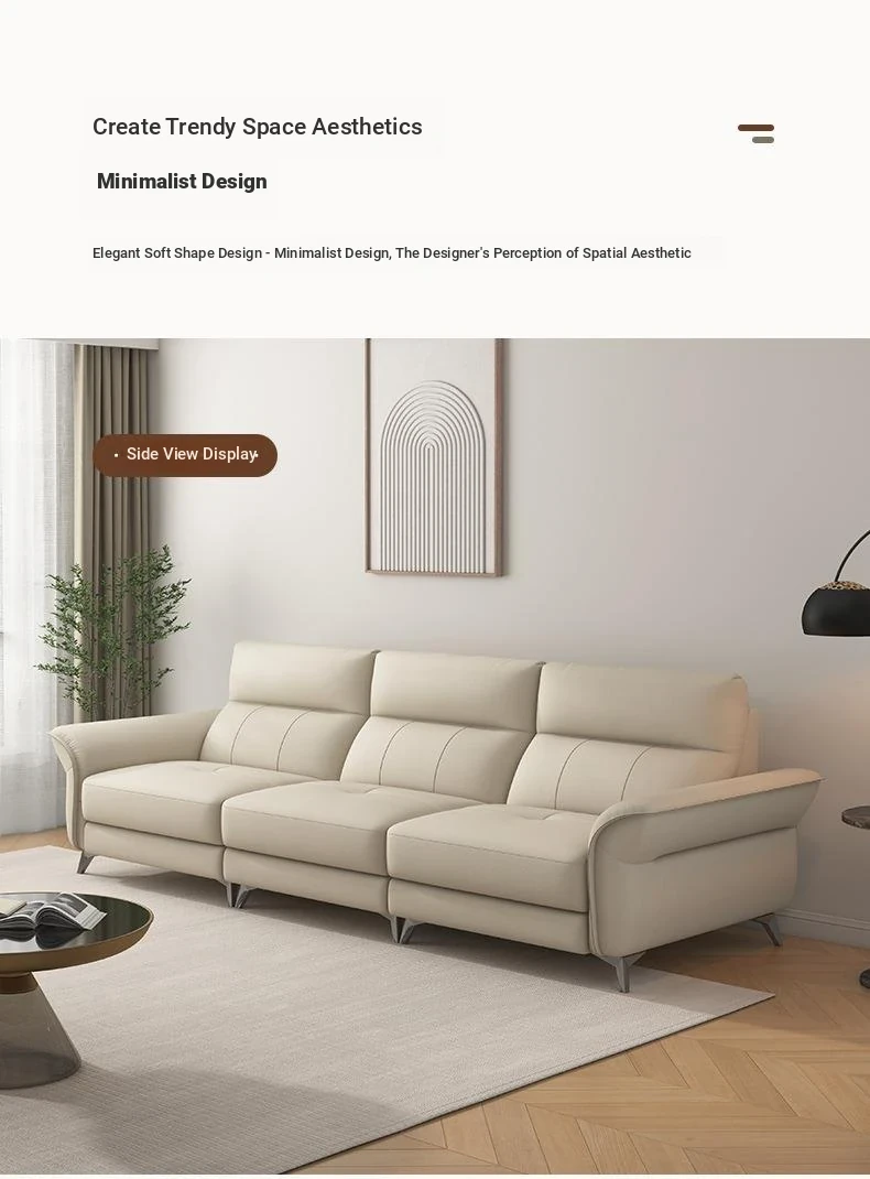 2024 New Arrival: Modern Minimalist Genuine Leather 3-Seater Sofa for Small Spaces - Premium Top-Grain Cowhide Couch for Your Living Room