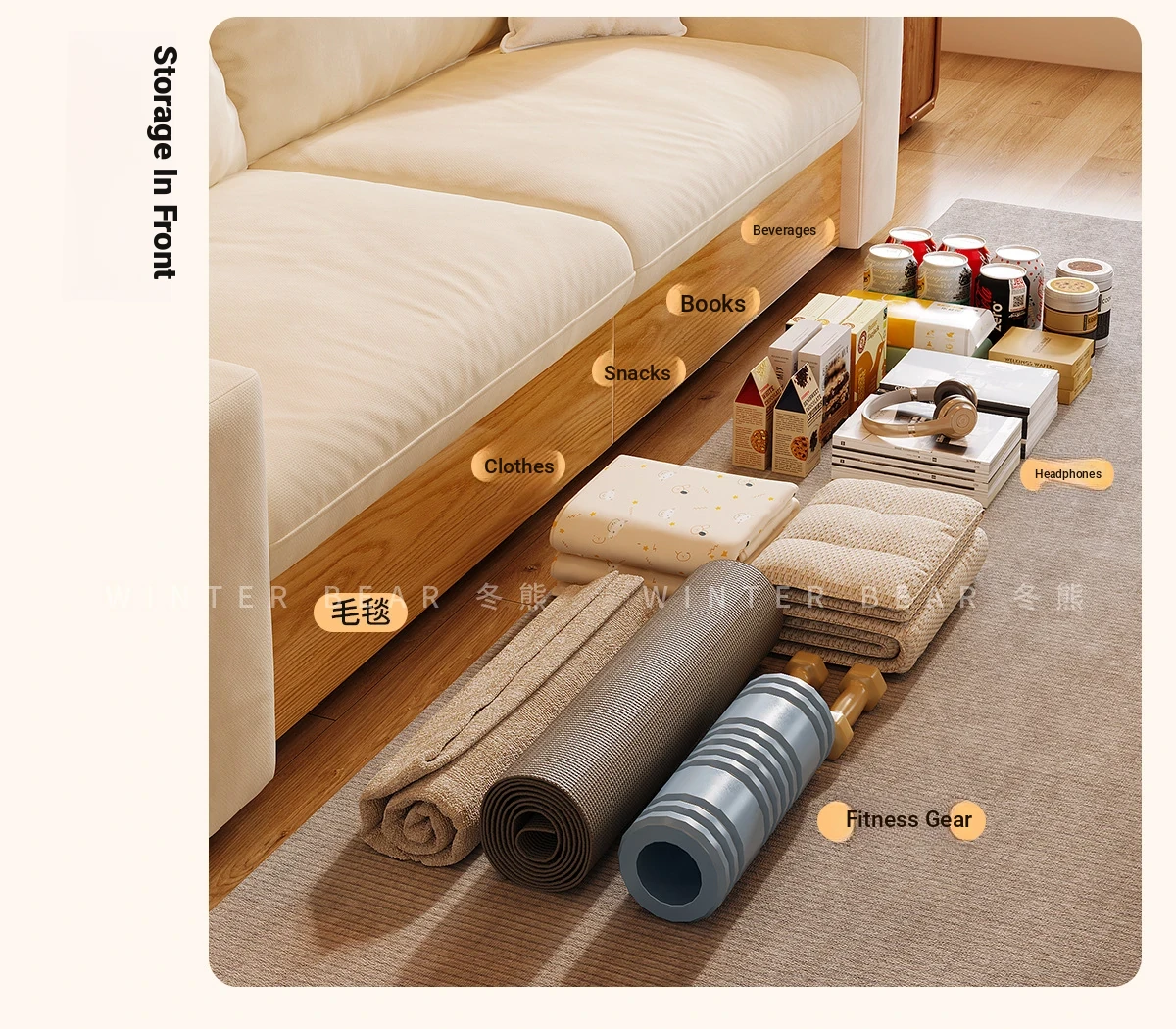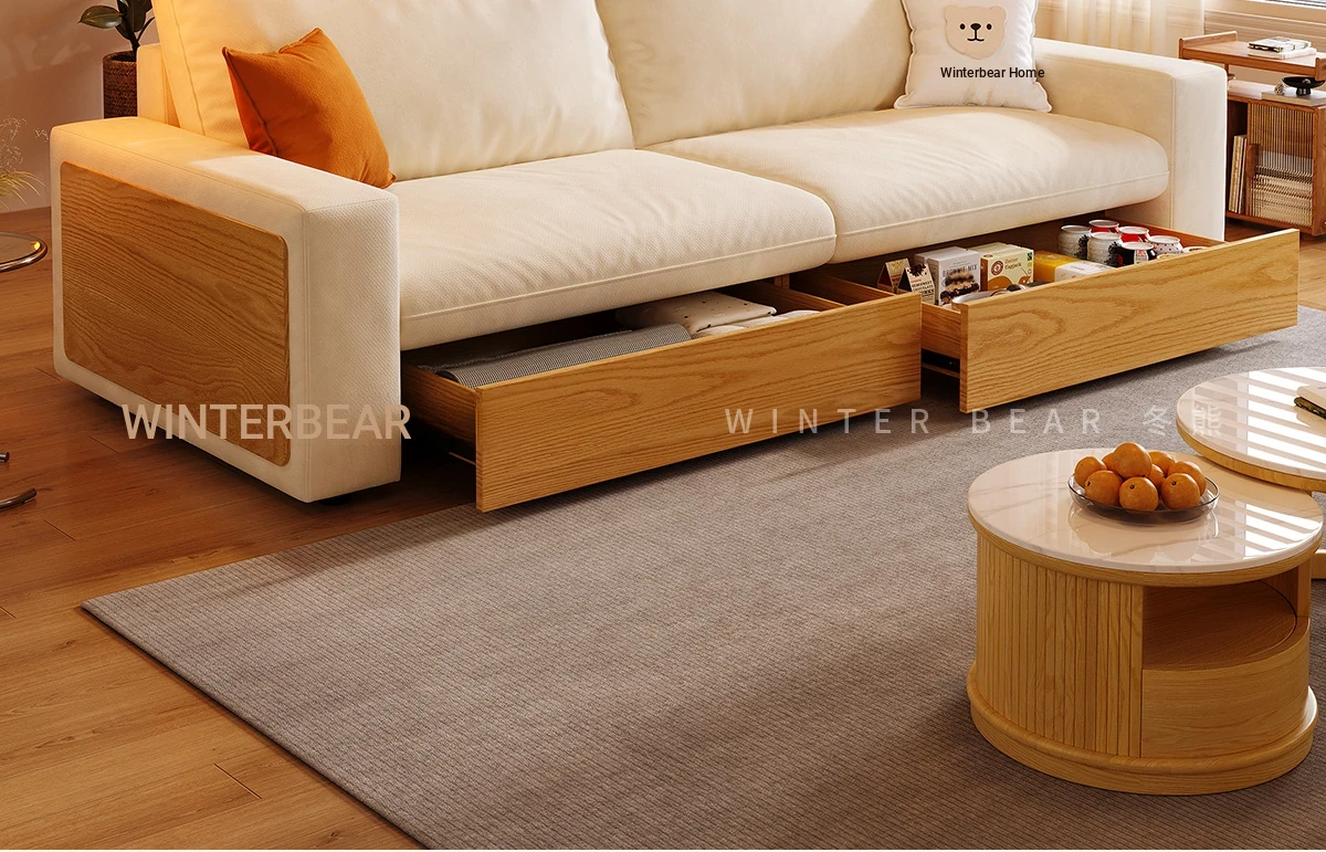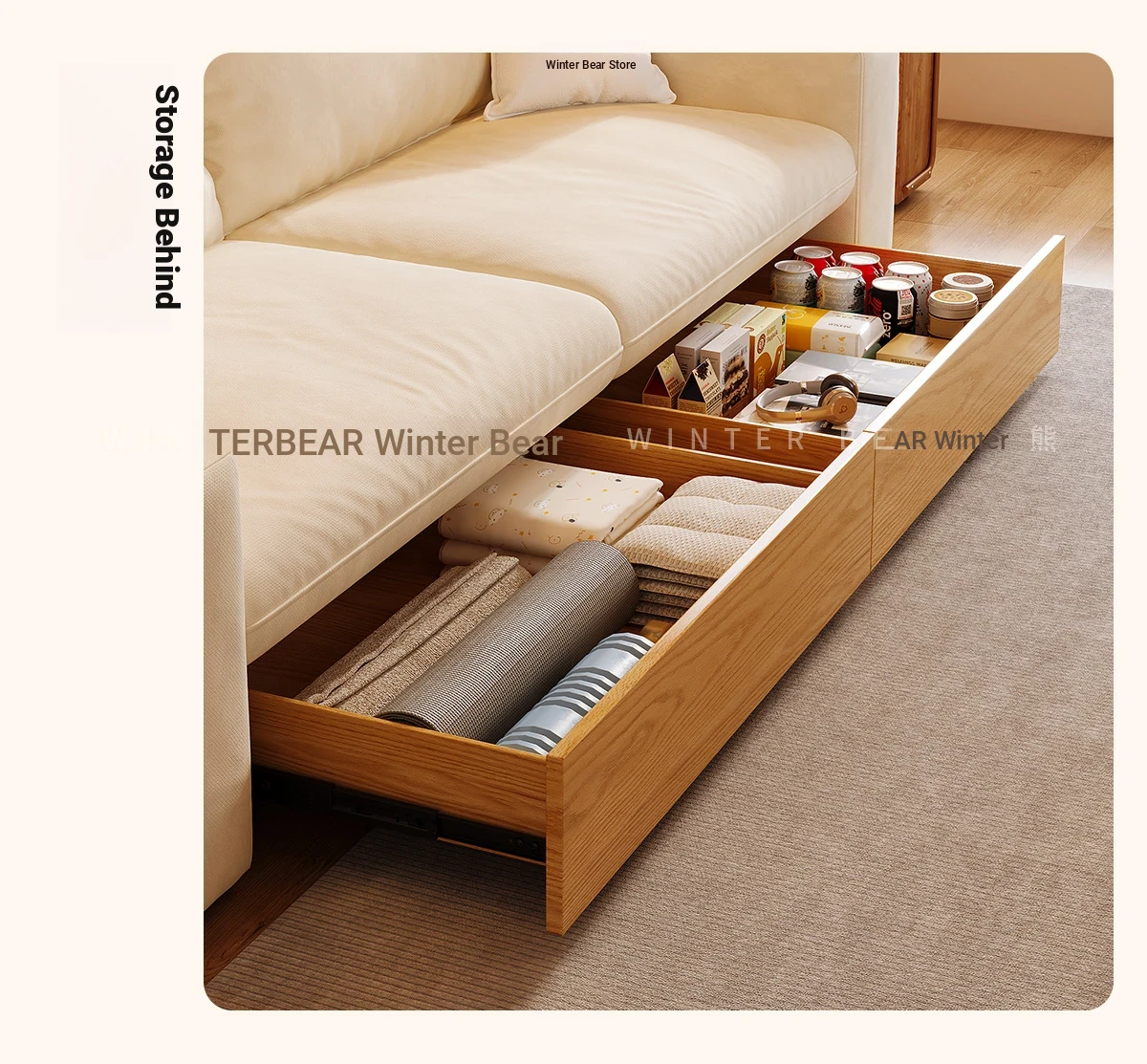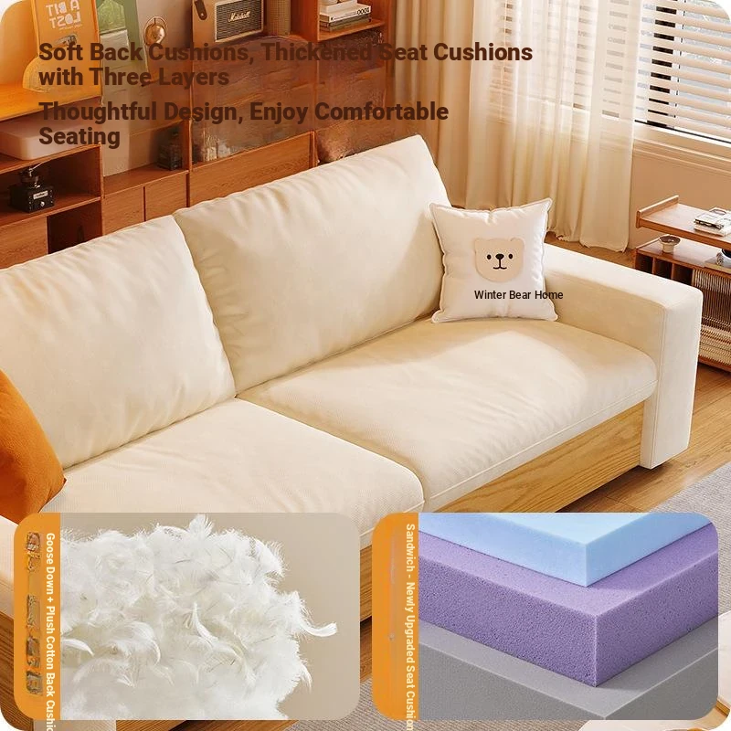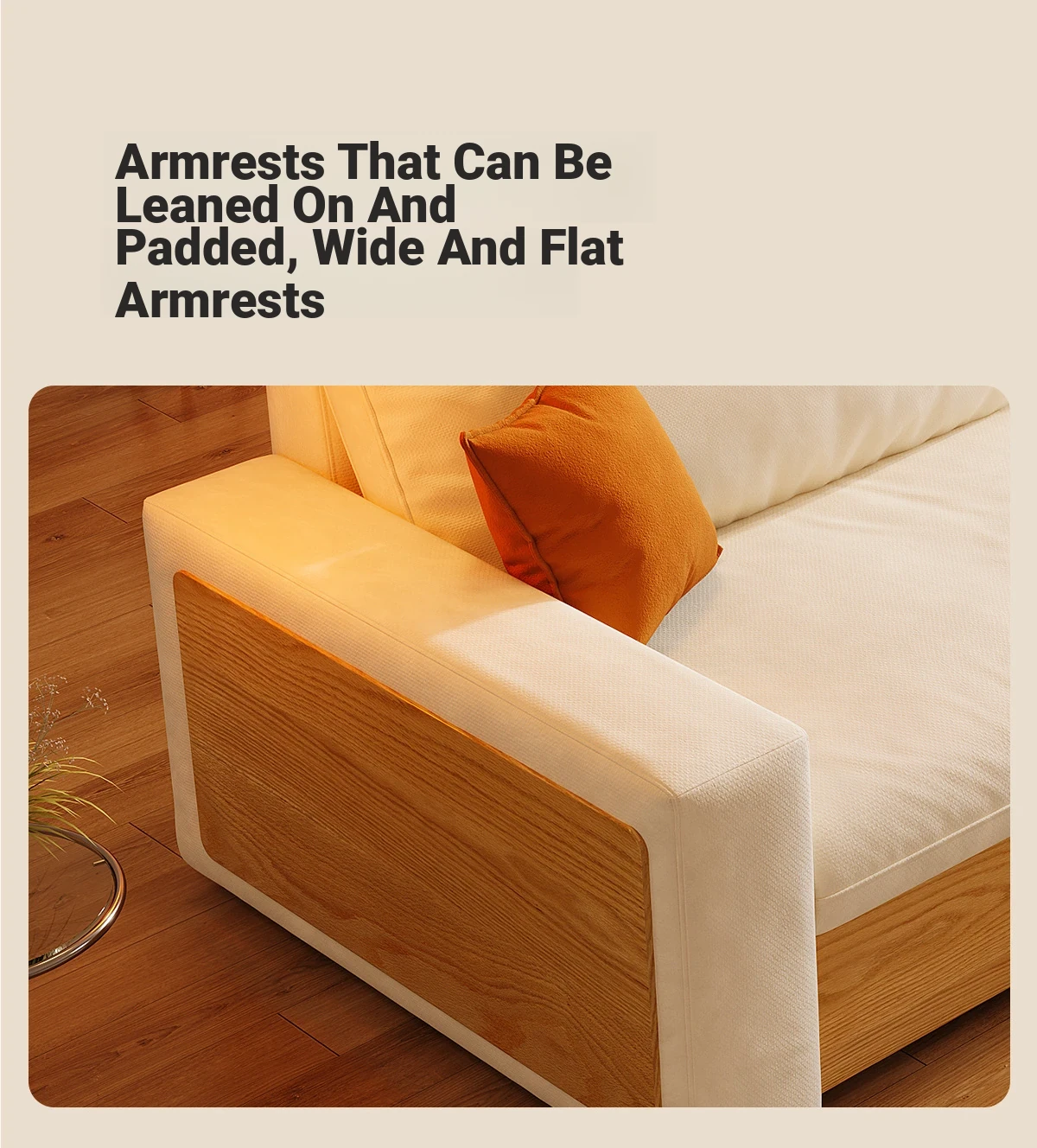 2025 New Japanese Style Solid Wood Sofa for Small Spaces - Rustic Storage Couch with Soft Fabric, Perfect for Cozy Living Rooms