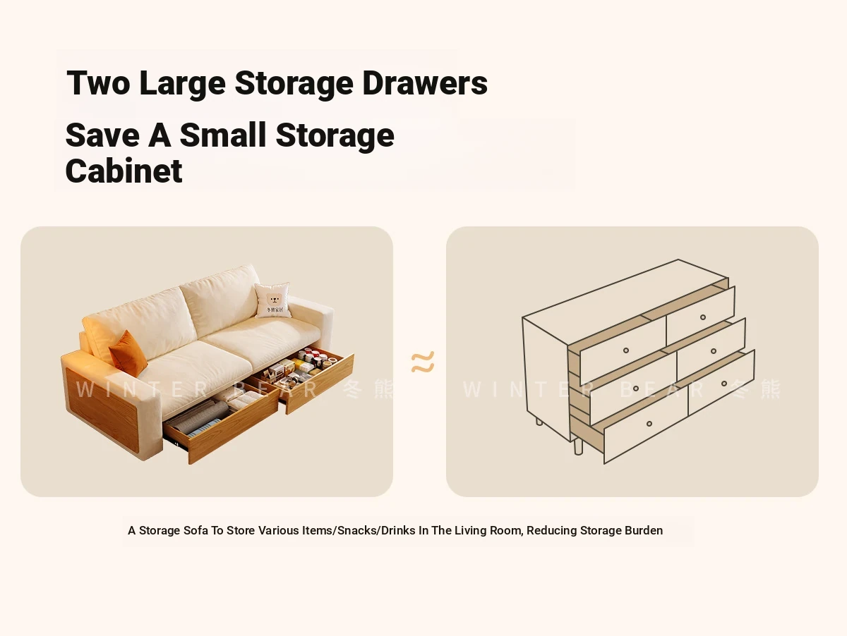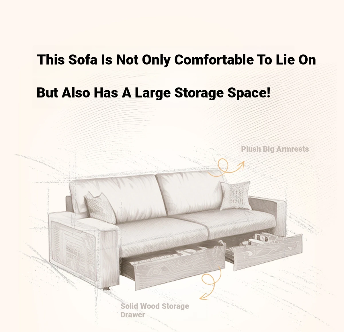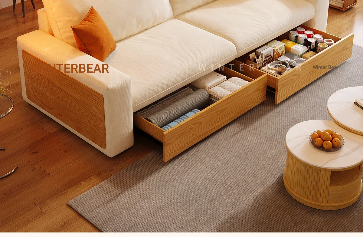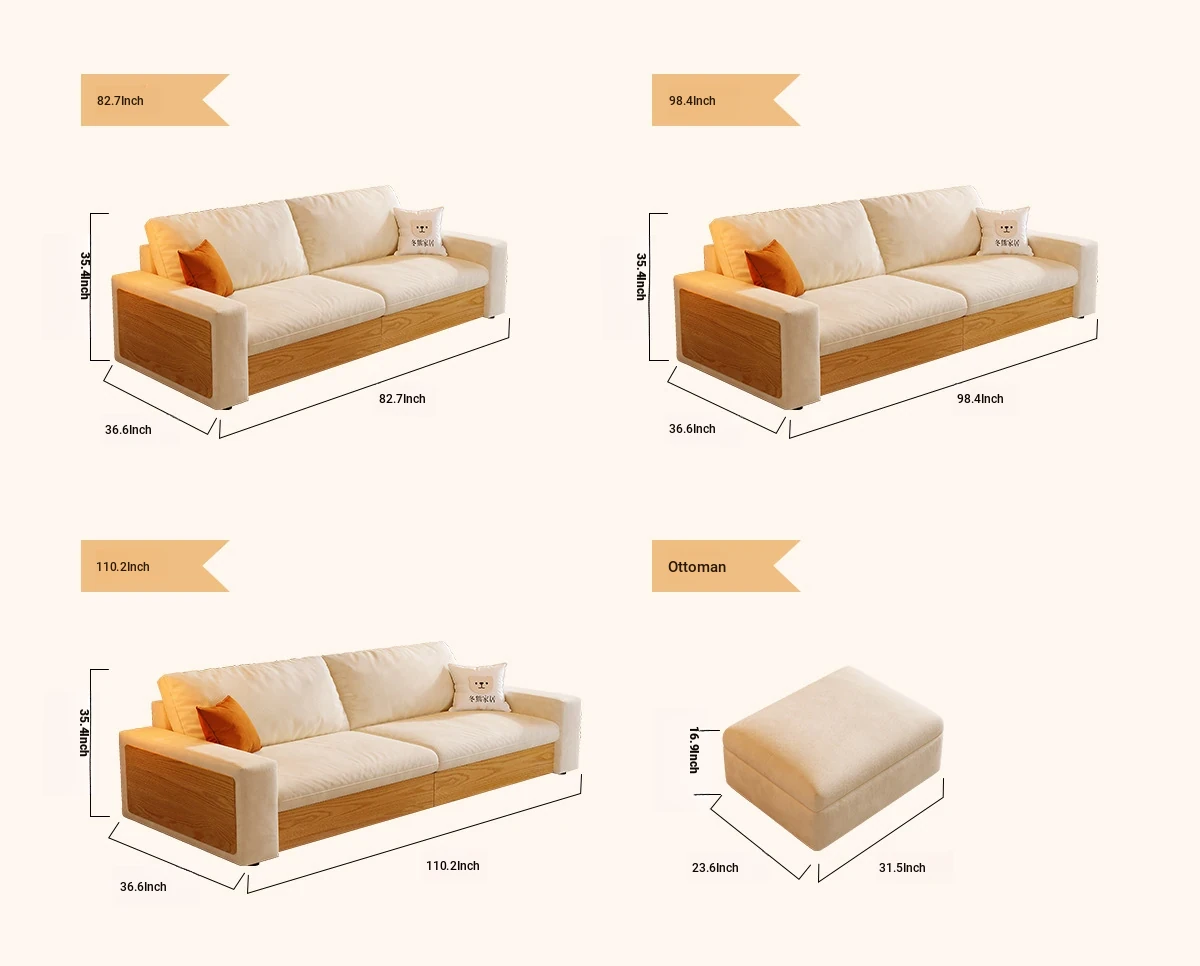2025 New Japanese Style Solid Wood Sofa for Small Spaces - Rustic Storage Couch with Soft Fabric, Perfect for Cozy Living Rooms