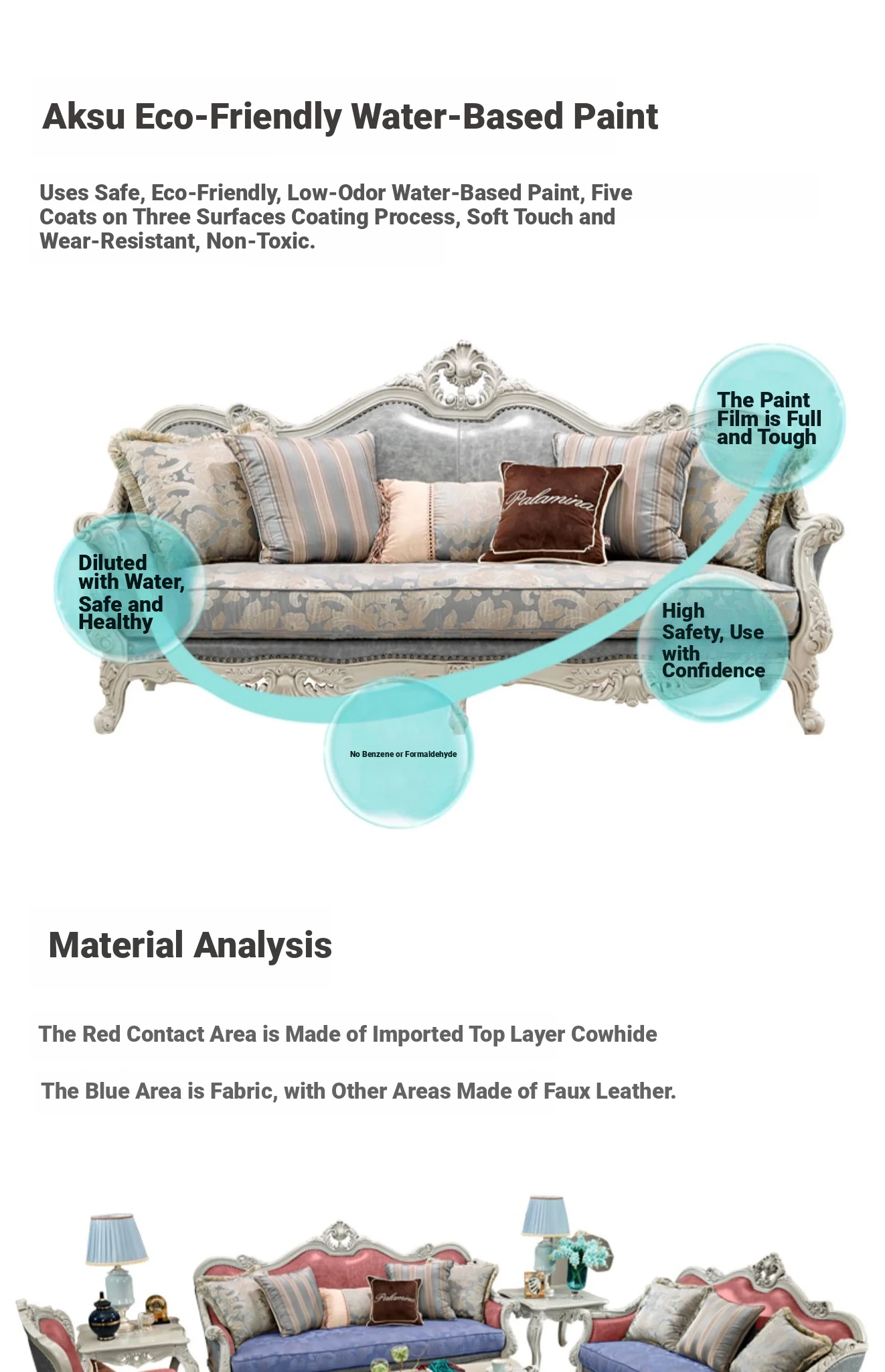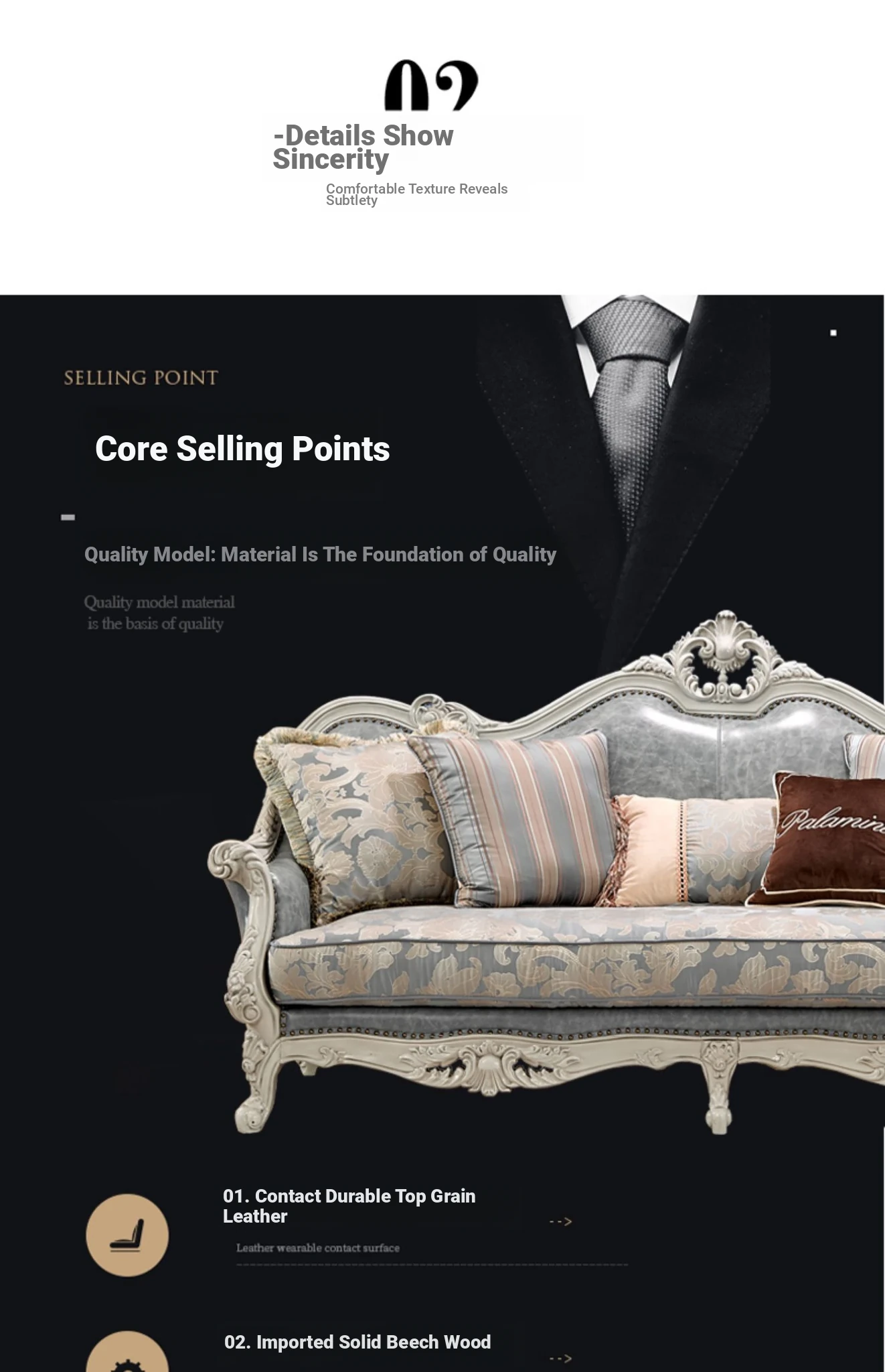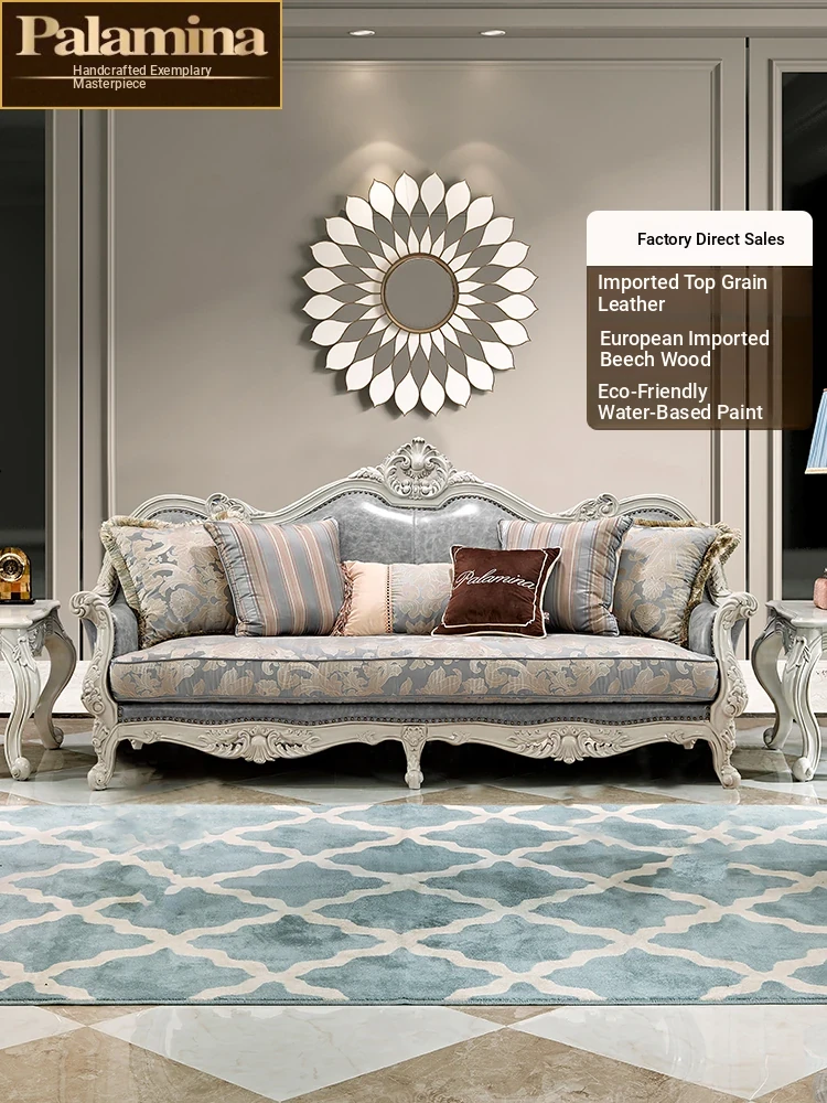 American Style Luxury Sofa - European Genuine Leather 1-2-3 Seater French Solid Wood Minimalist Fabric Living Room Set with Exquisite Carvings