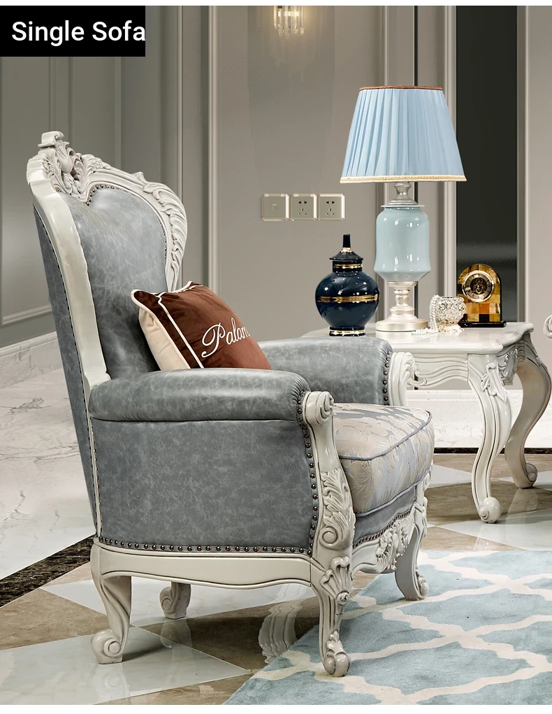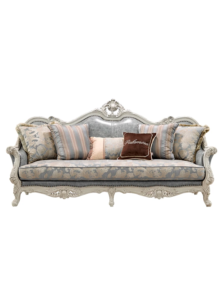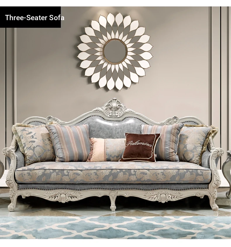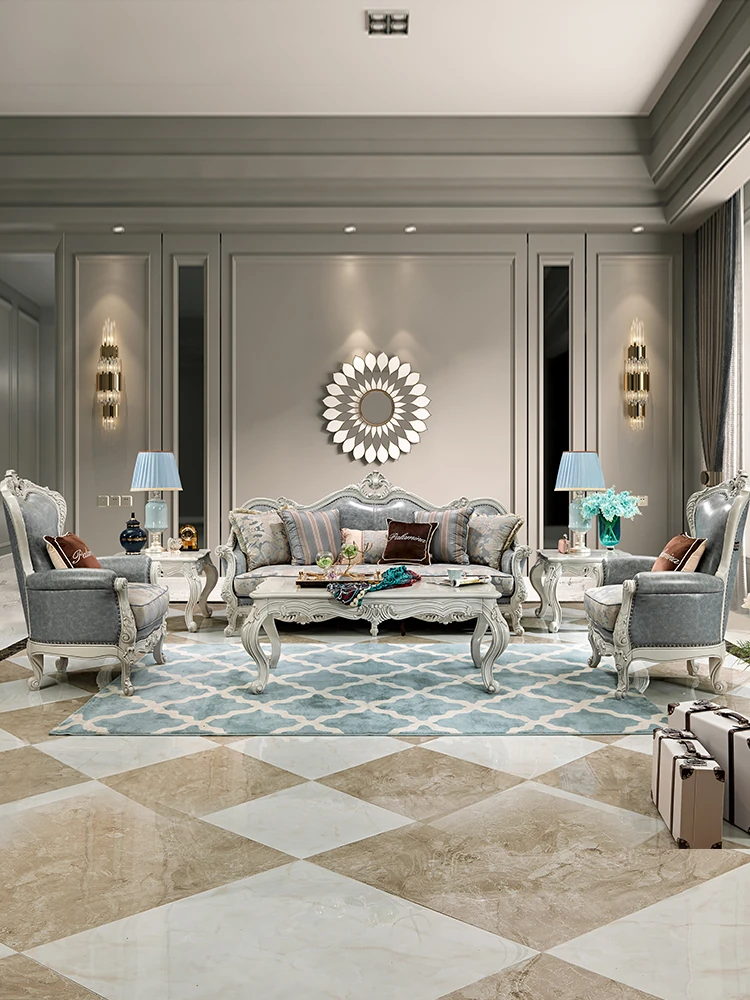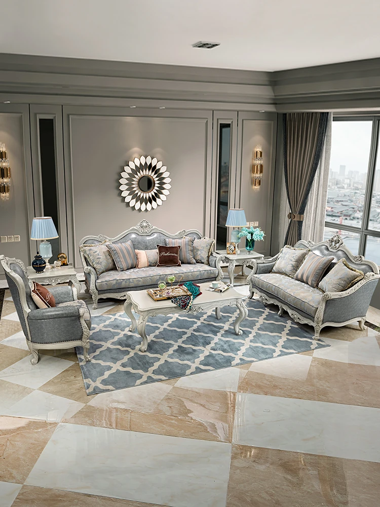 American Style Luxury Sofa - European Genuine Leather 1-2-3 Seater French Solid Wood Minimalist Fabric Living Room Set with Exquisite Carvings