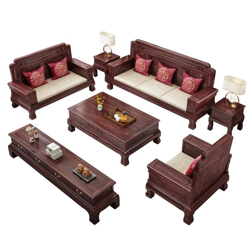 Australian Rosewood New Chinese Style Solid Wood Sofa Set – Complete Luxury Furniture for Villas and Living Rooms, Featuring Exquisite Carvings, Perfect for All Sizes of Homes.