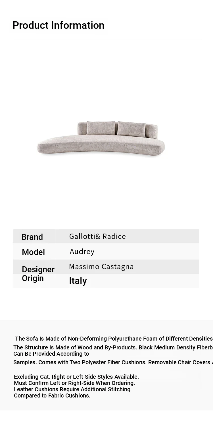 Authentic Italian Import Gallotti&Radice Audrey Curved Sofa - Elegant Design for Luxurious Living Spaces
