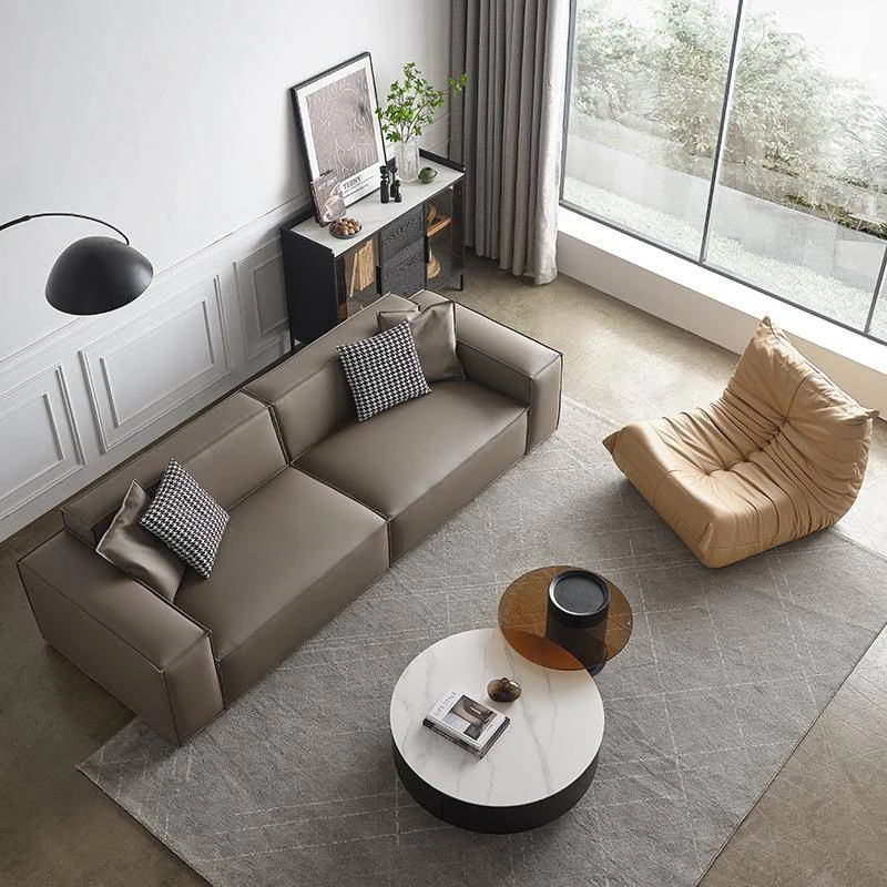 Bxater Genuine Leather Sofa Set - Stylish Italian Design for Living Room, Modular Tofu-Style Sofa Combination with Sleek Square Blocks. Perfect for Modern Homes!