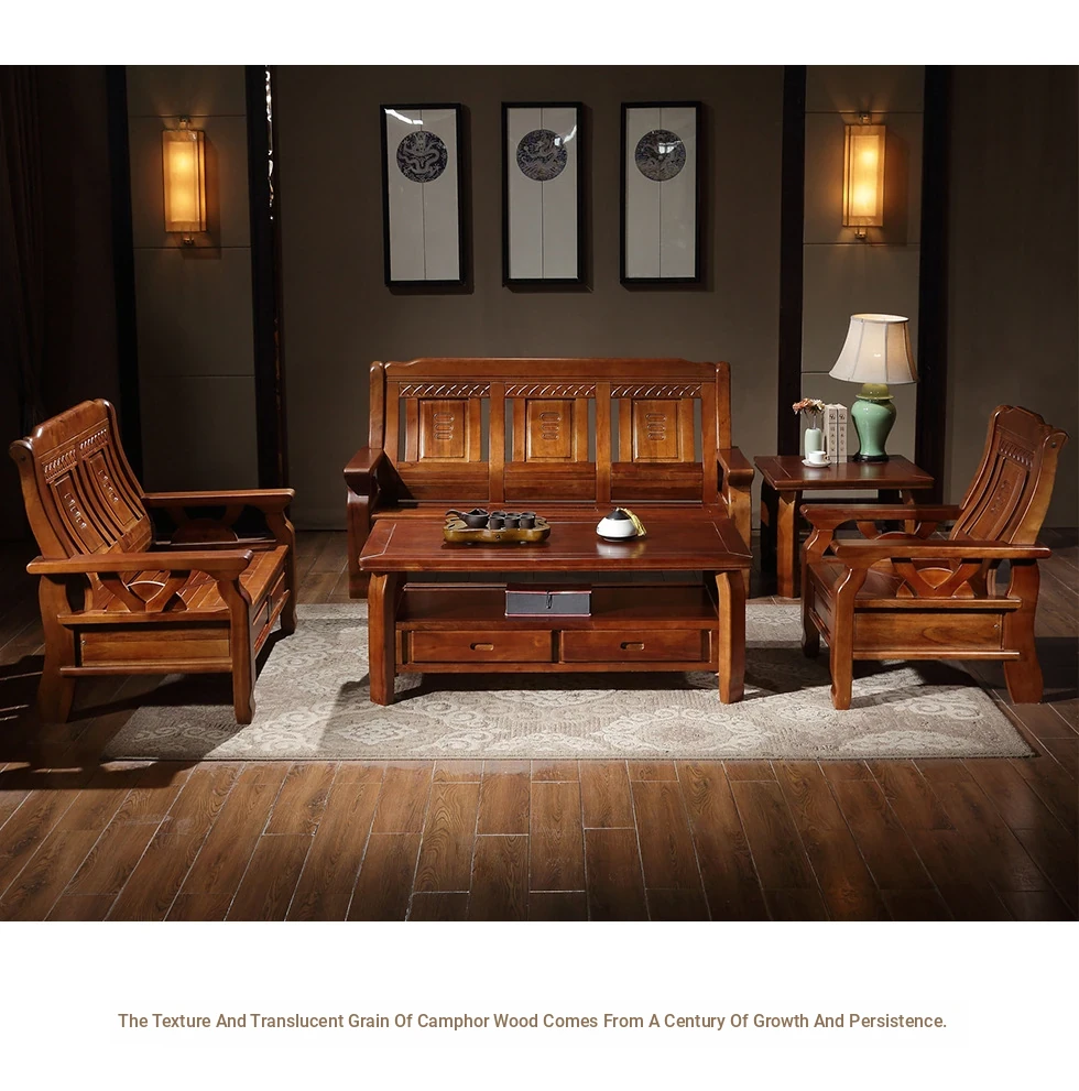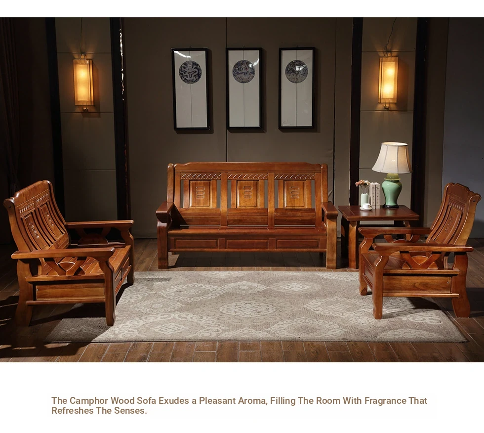 Chinese Solid Wood Sofa Set - Antique Carved 123 Combination, Dual-Use for Winter & Summer, Made of Camphor Wood, Perfect for Your Living Room Furniture Collection