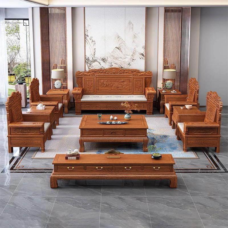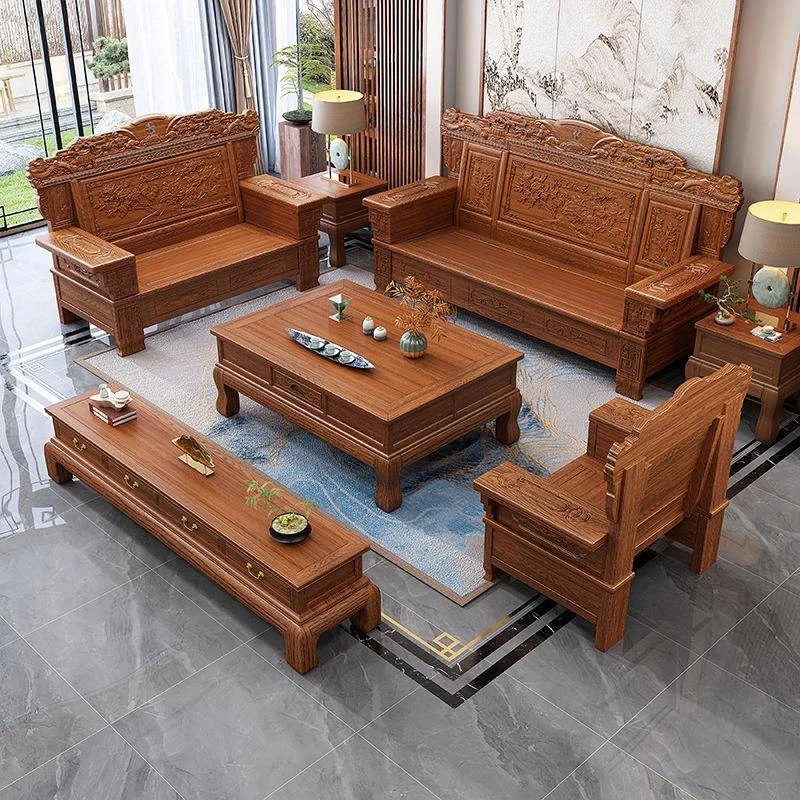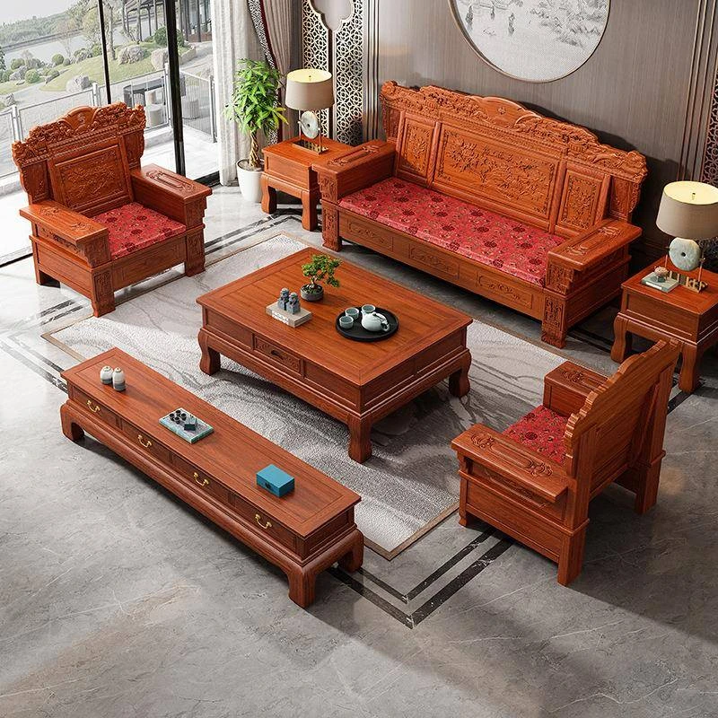 [Rosewood] 1123 + tea table +3 square table + TV cabinet cushion + tempered glass