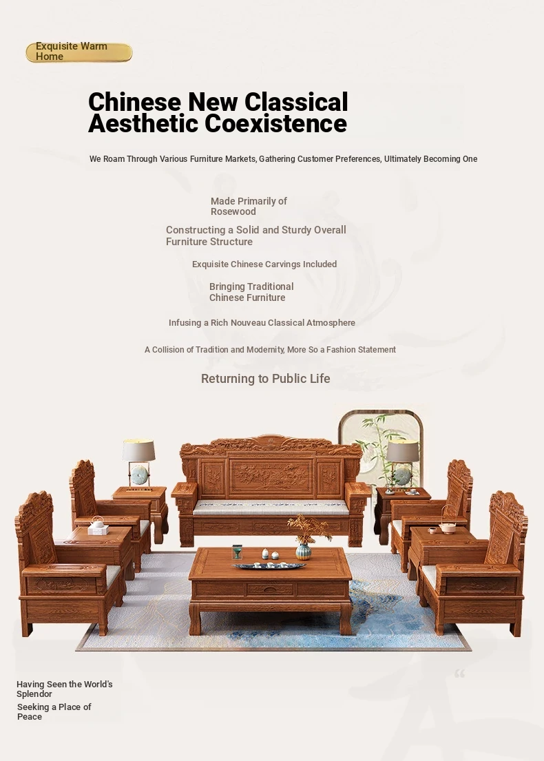 [Rosewood] 113 + tea table + square + TV cabinet cushion + tempered glass
