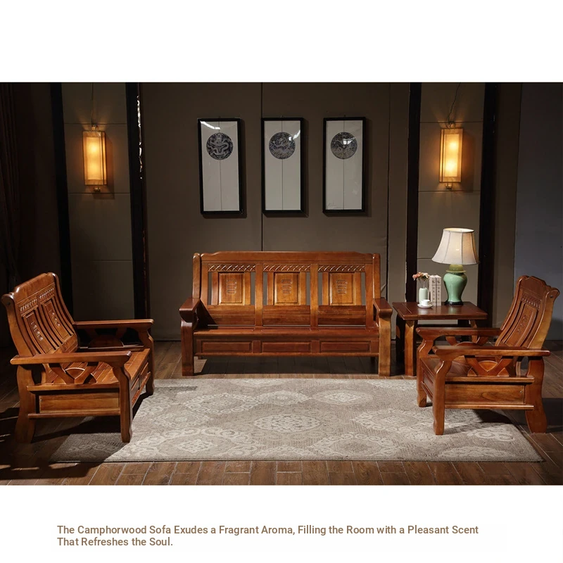 Classic Chinese Solid Wood Sofa Set - 123 Combination, Antique Carved Design, Dual-Use for Winter and Summer, Stylish Camphor Wood Living Room Furniture