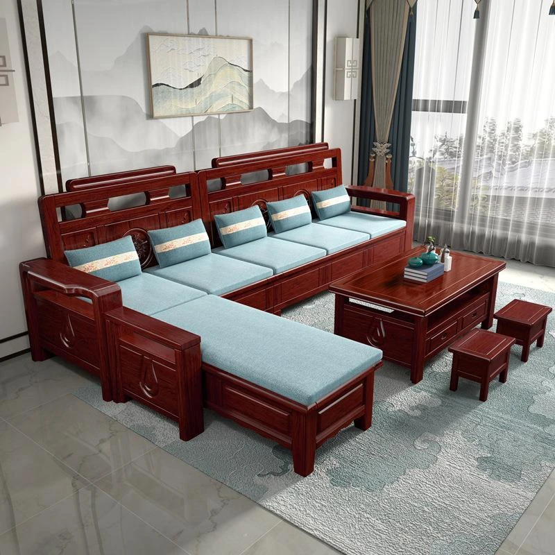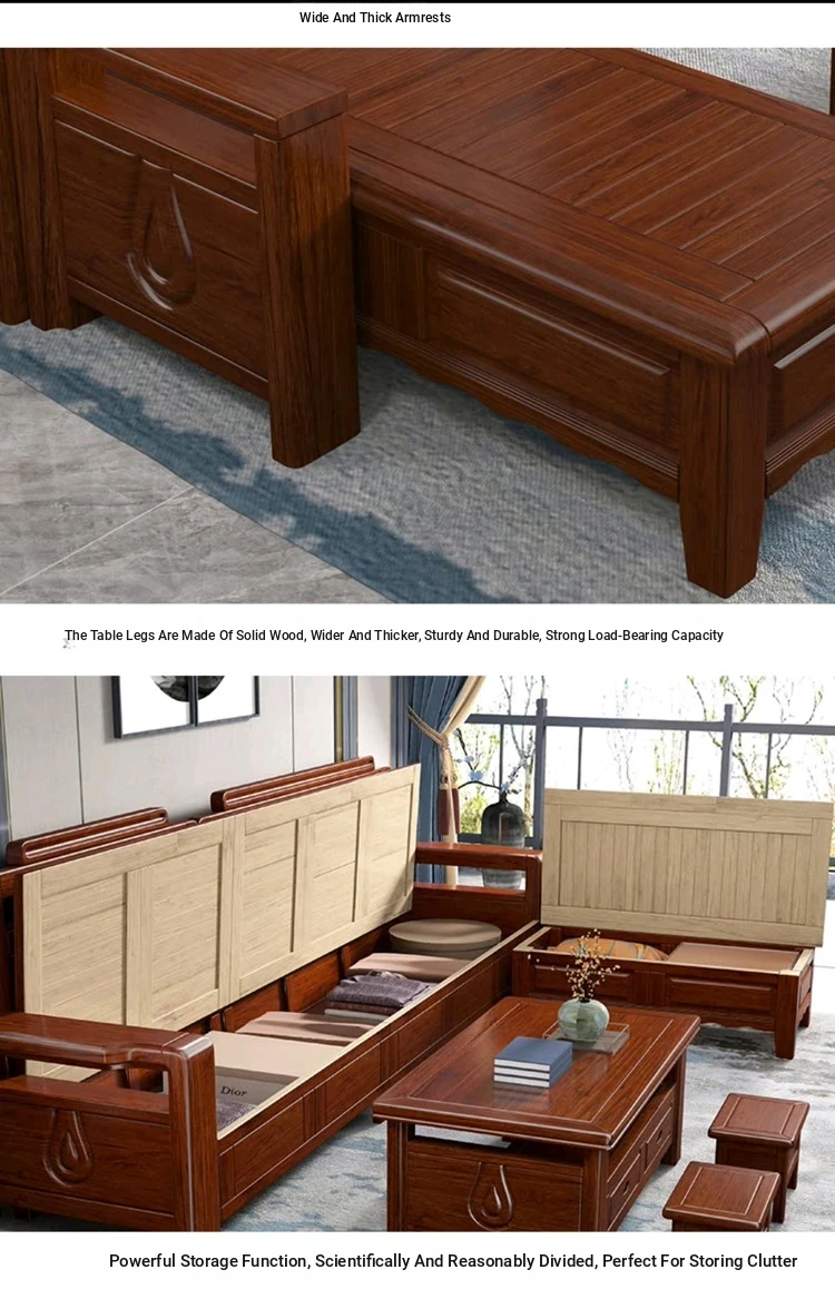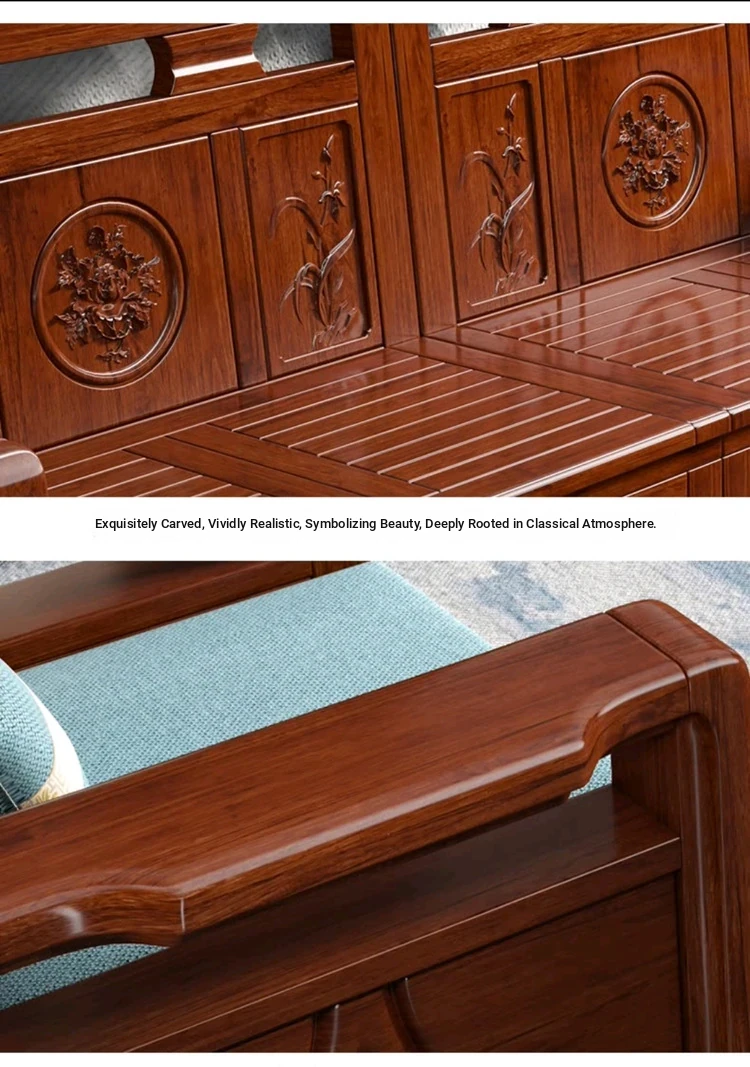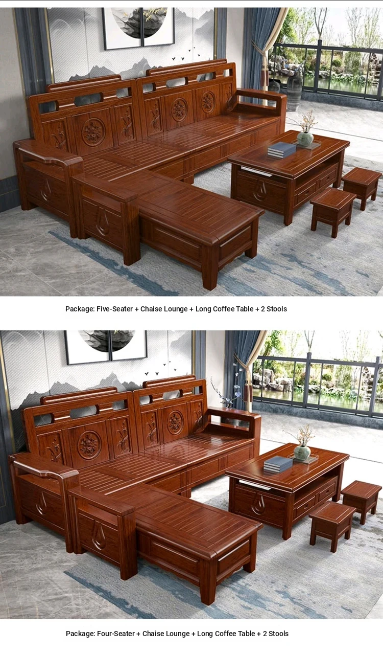 Classic Chinese Style Carved Solid Wood Sofa Set - Versatile and Functional Corner Chaise Lounge in Camphor Wood for All Seasons, with Ample Storage Space