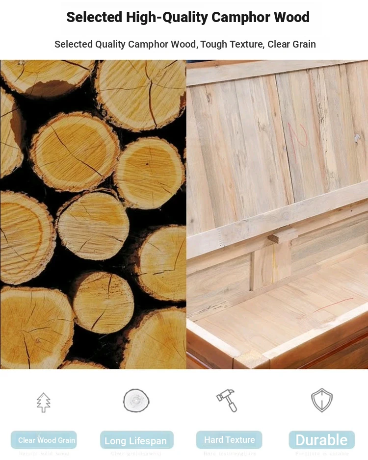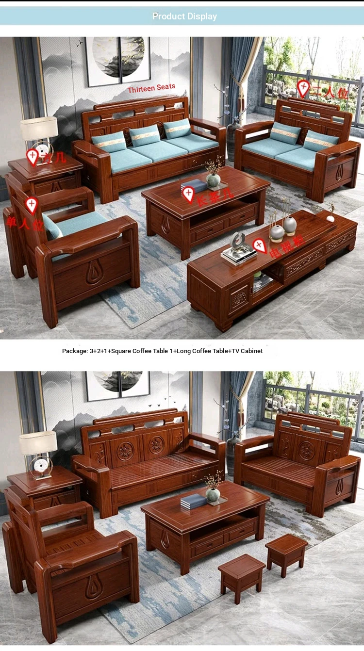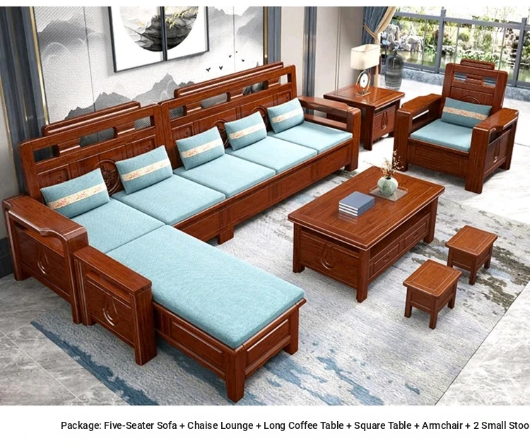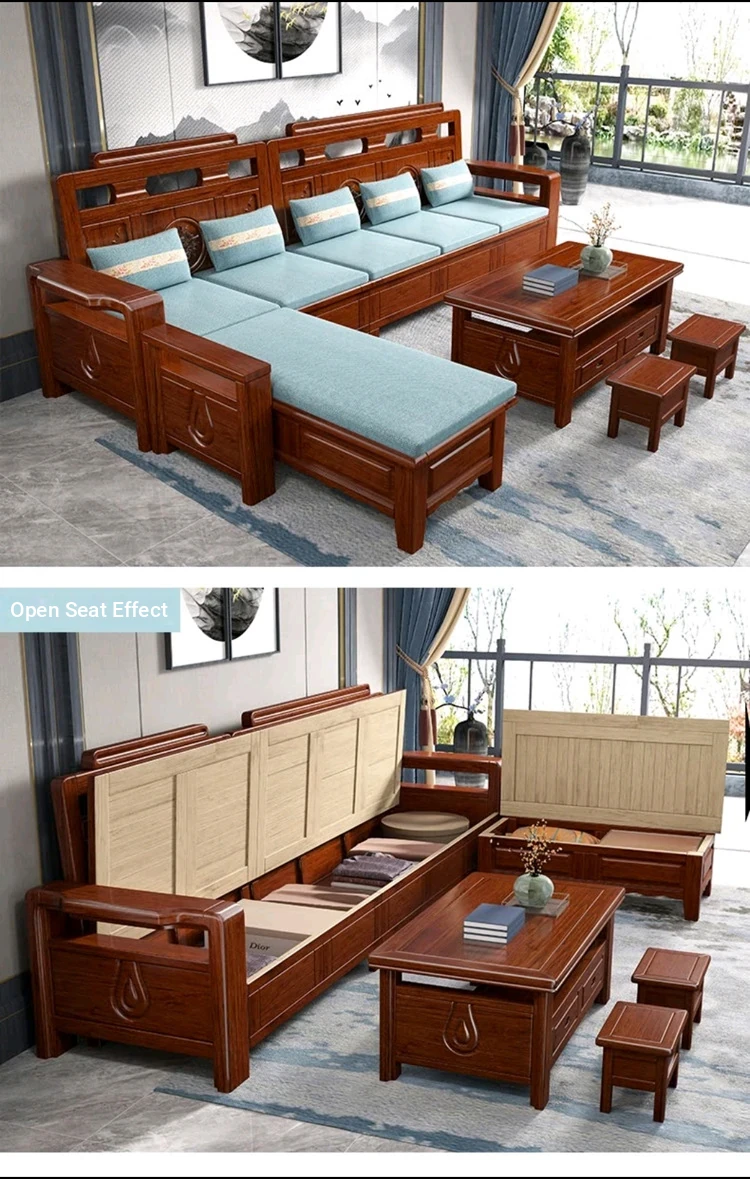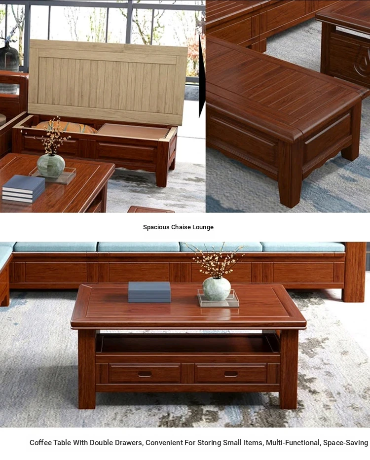 Classic Chinese Style Carved Solid Wood Sofa Set - Versatile and Functional Corner Chaise Lounge in Camphor Wood for All Seasons, with Ample Storage Space