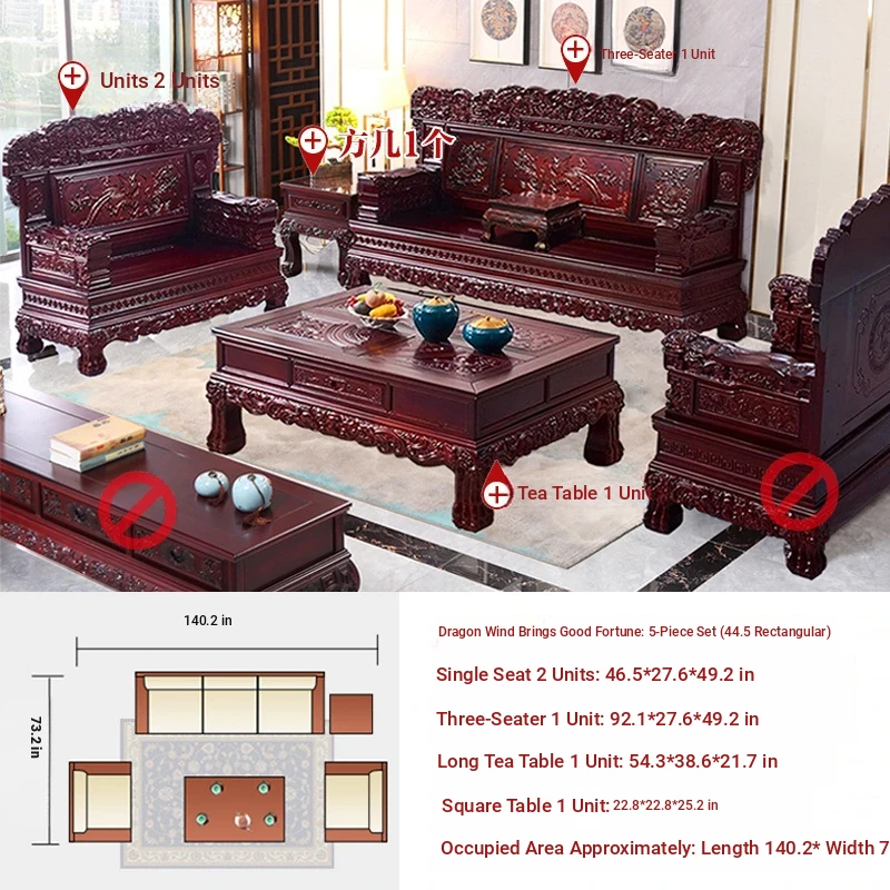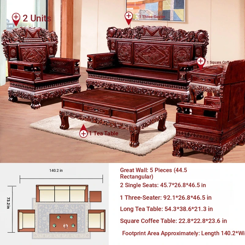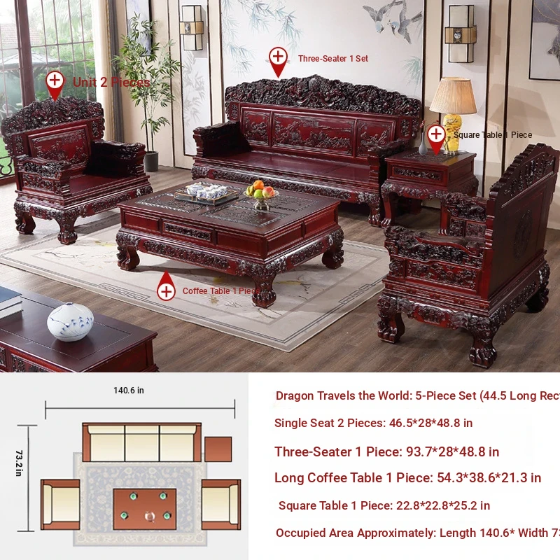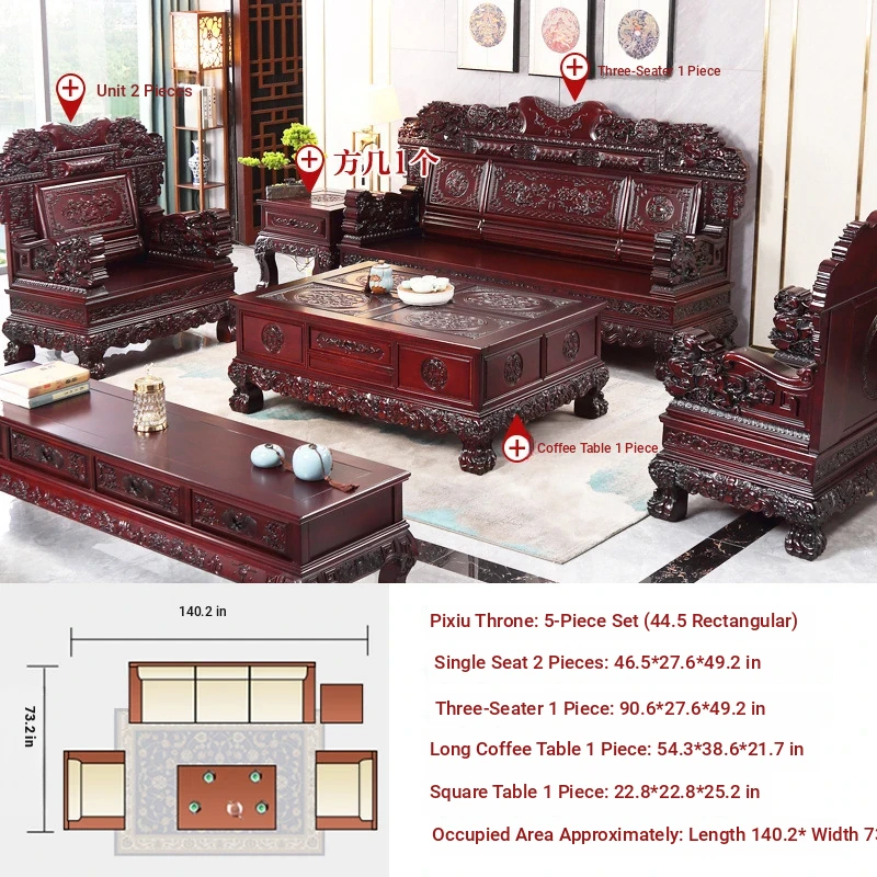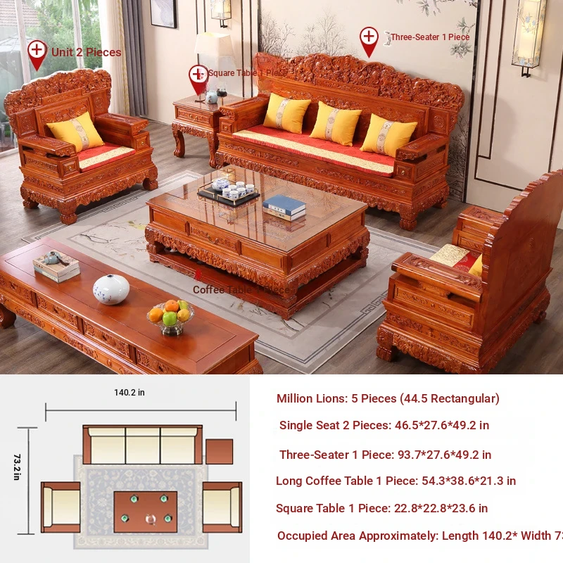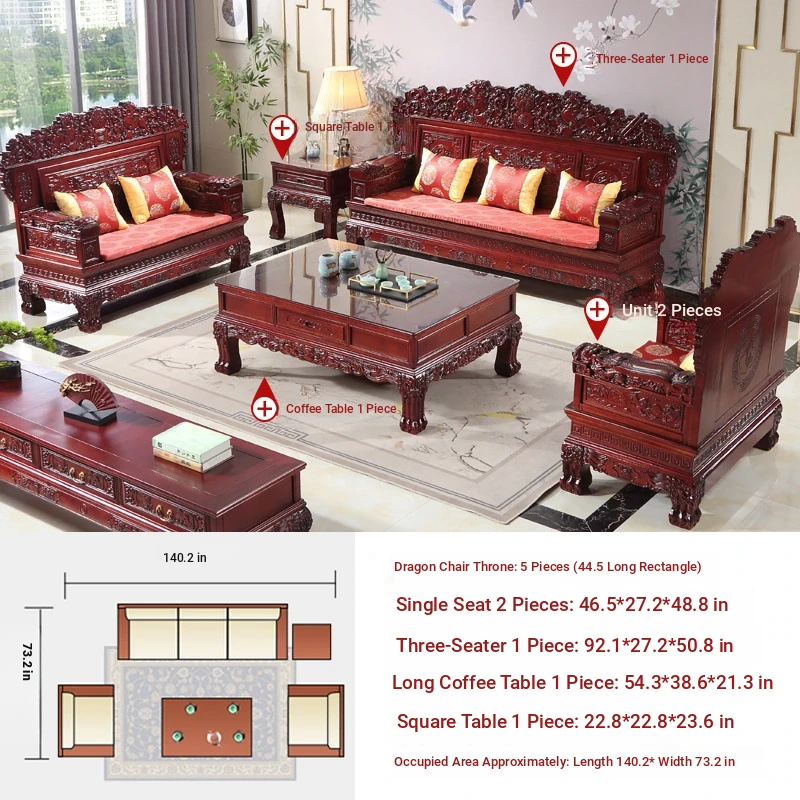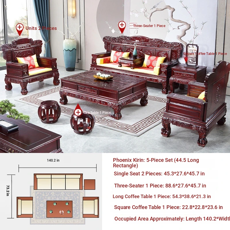 Classic Chinese-Style Solid Wood Sofa Set for Living Room - Elegant Ming Dynasty Inspired Design with Mortise and Tenon Joinery, Perfect for Traditional and Contemporary Homes