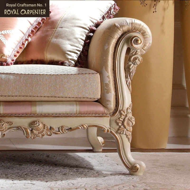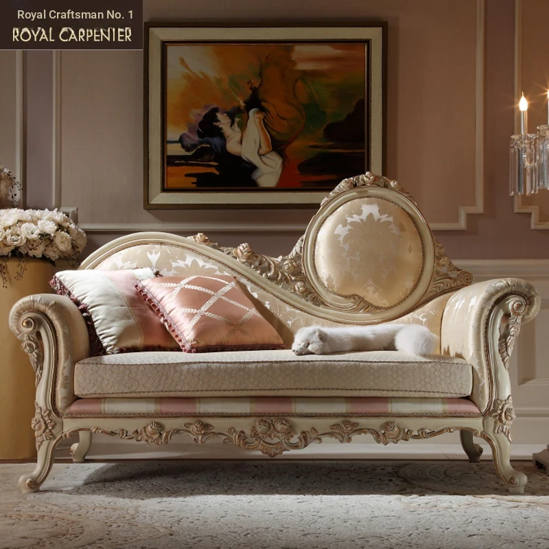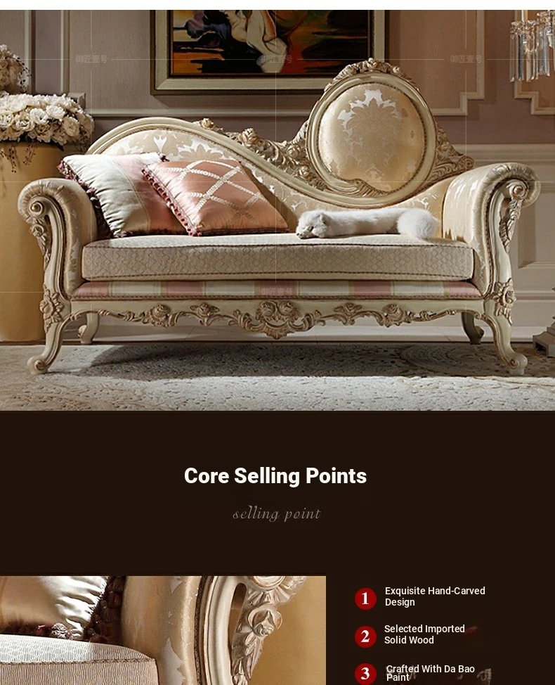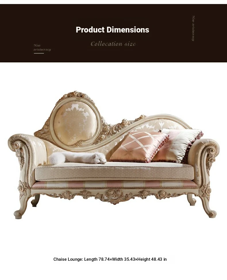 Classic French Style Solid Wood Chaise Lounge - Elegant Upholstered Single Sofa for Bedroom - Luxurious American Design for Ultimate Comfort