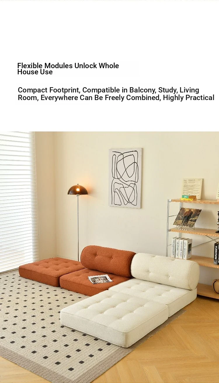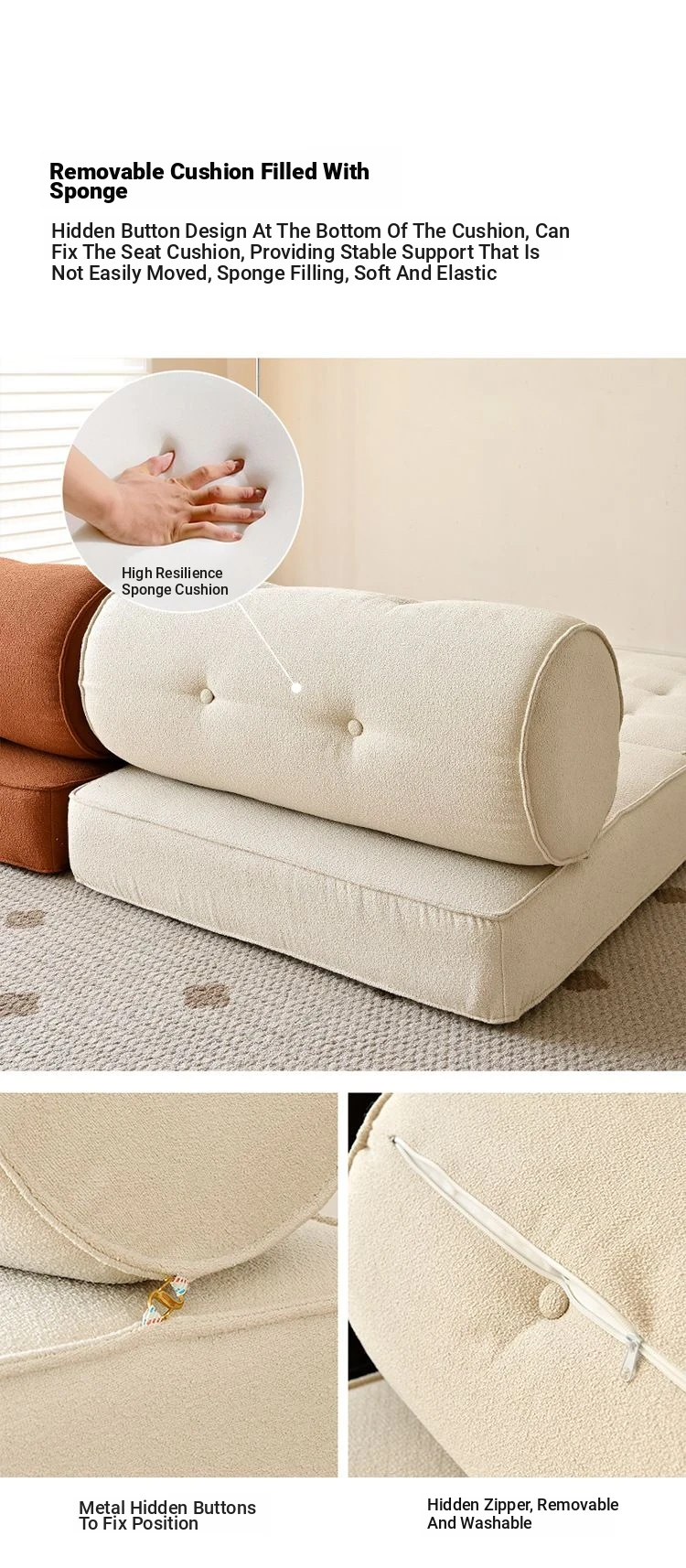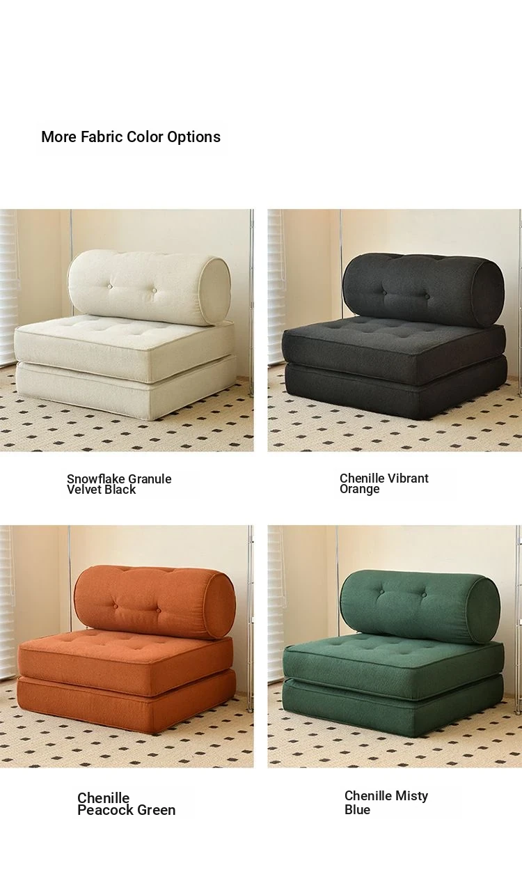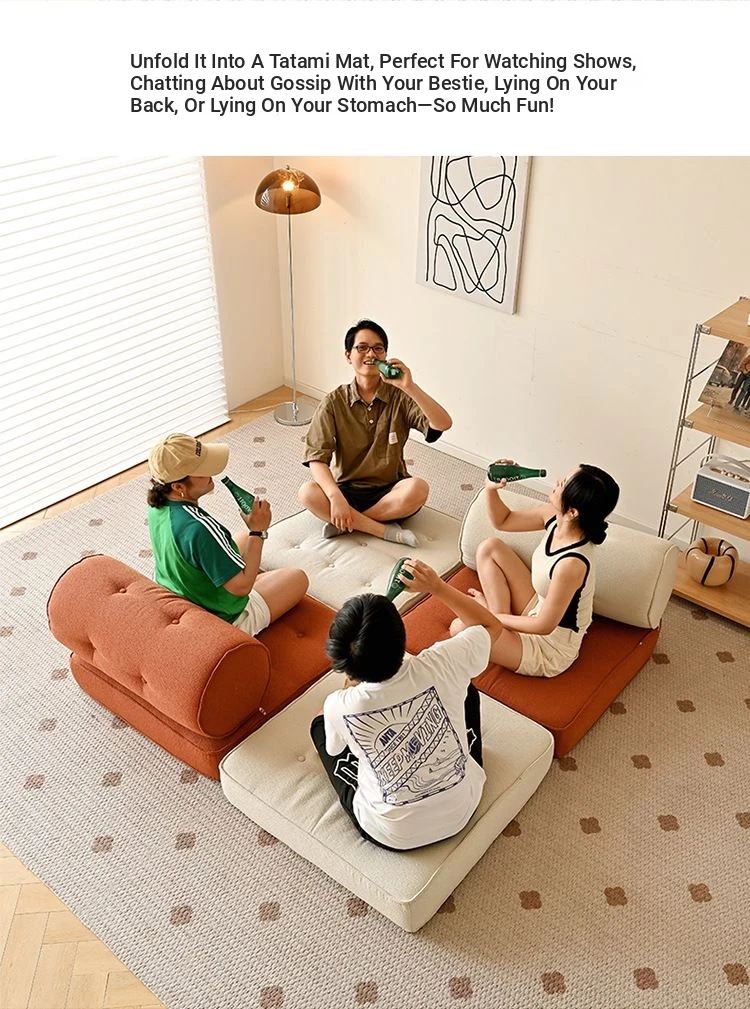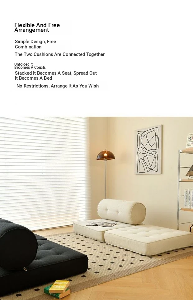 Creamy Foldable Modular Sofa Bed - White Fabric, Washable, Versatile Square Design for Relaxation and Comfort - Perfect for Small Spaces and Lazy Days!