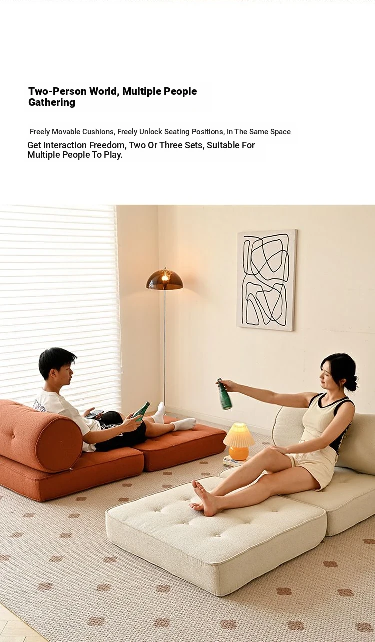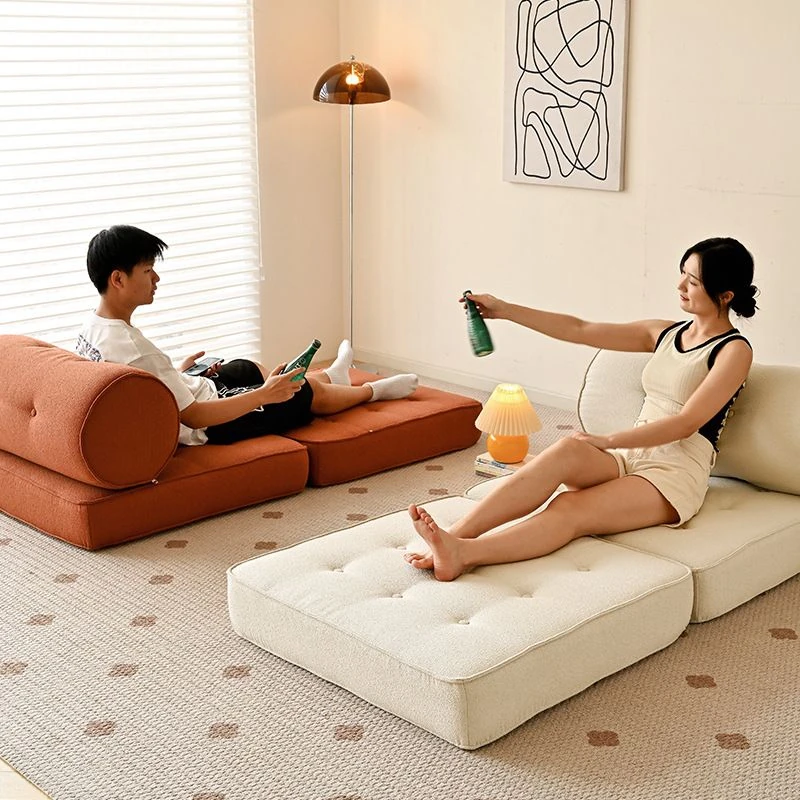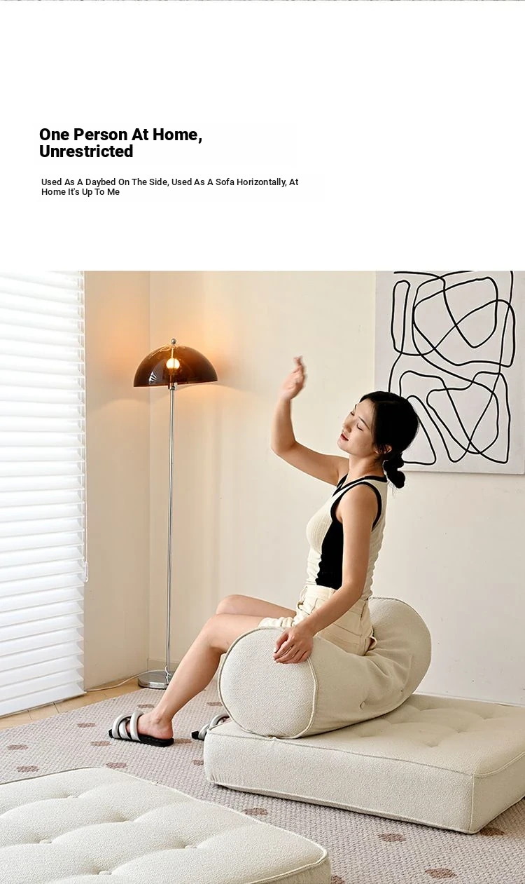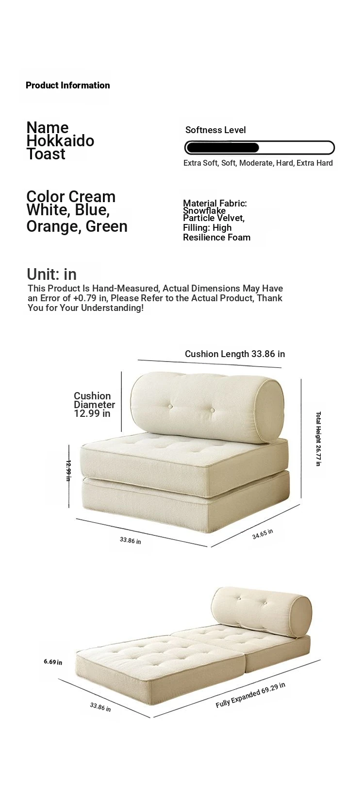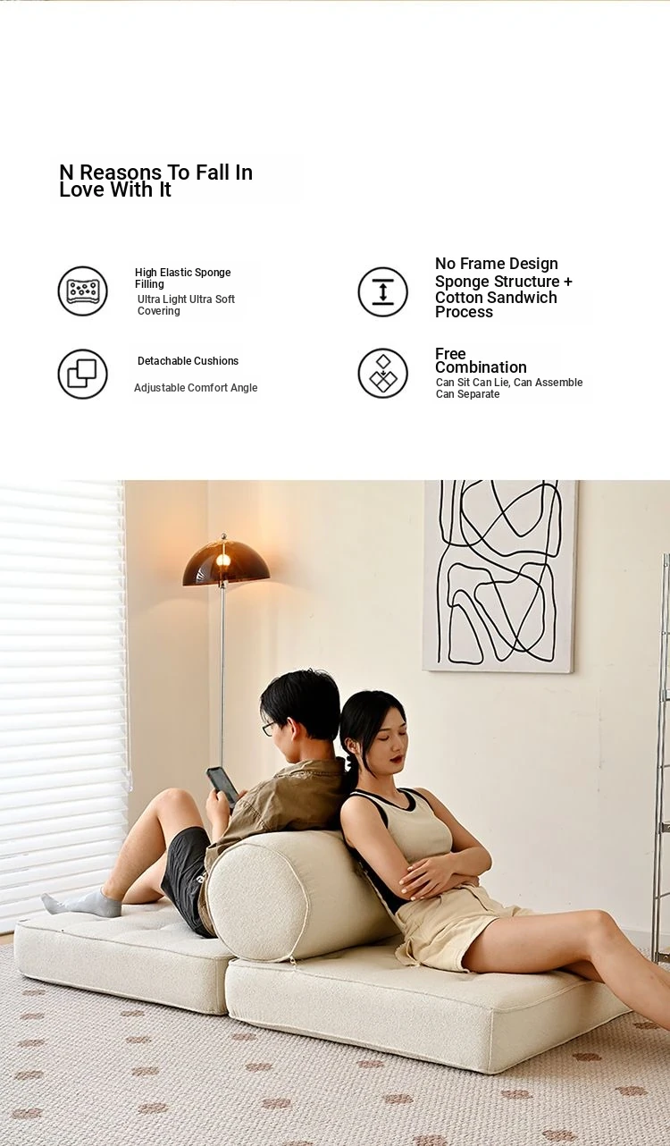 Creamy Foldable Modular Sofa Bed - White Fabric, Washable, Versatile Square Design for Relaxation and Comfort - Perfect for Small Spaces and Lazy Days!