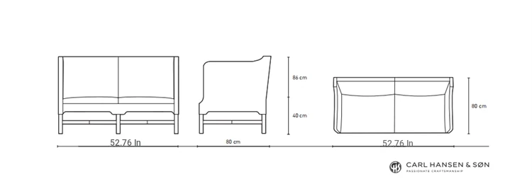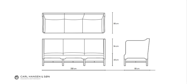 Danish Carl Hansen Sofa with High Sides – Elegant 2-3 Seater Couch for Luxurious Comfort and Style