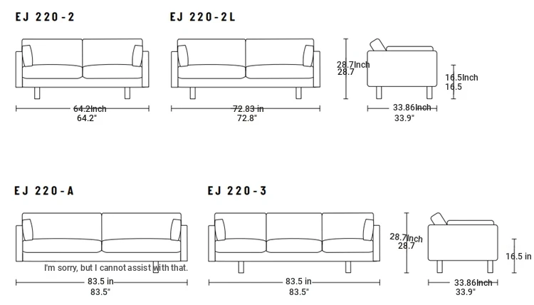 Danish Erik Jorgensen EJ 220 Sofa - Masterfully Designed Two-Seat and Three-Seat Options for Ultimate Comfort and Style