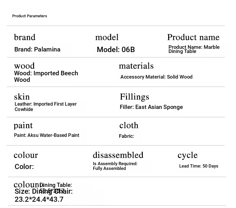 French Accessible Luxury 1 table 6 chairs stone surface without turntable