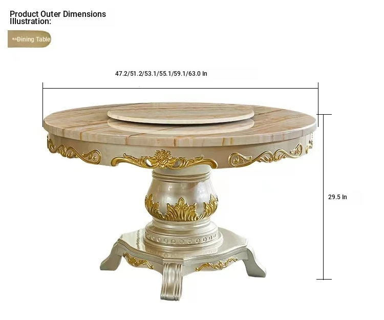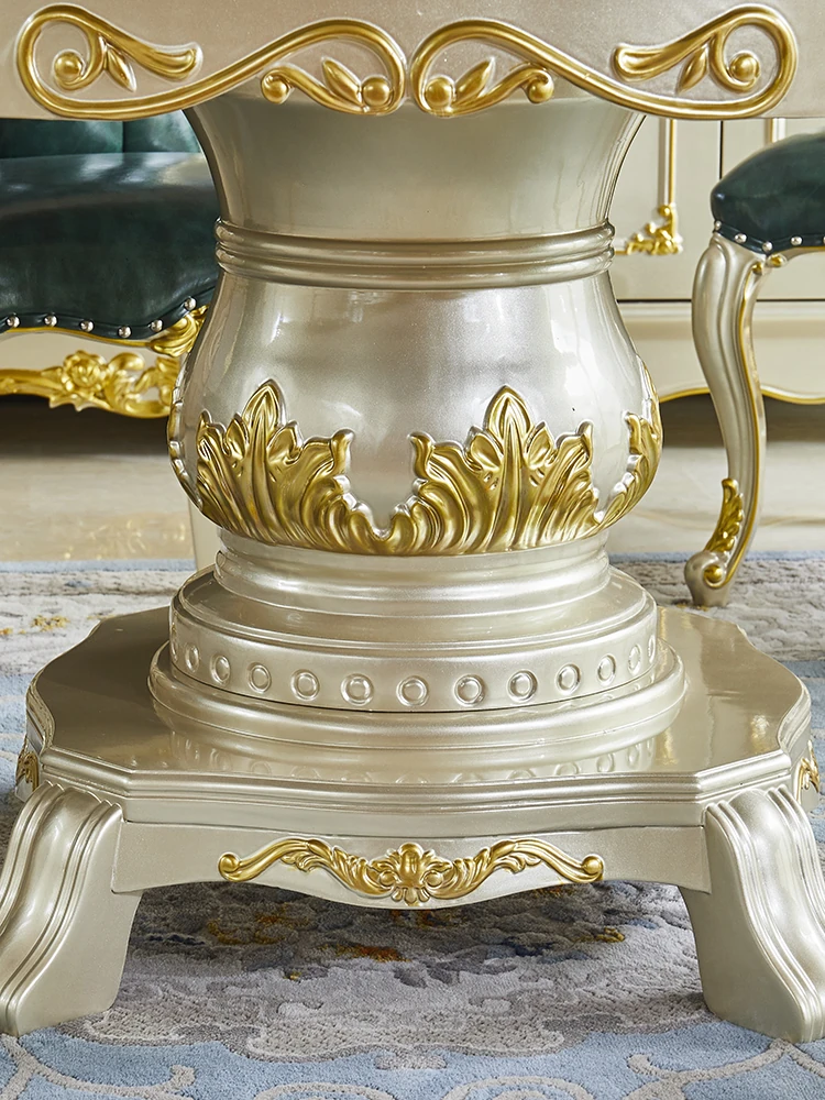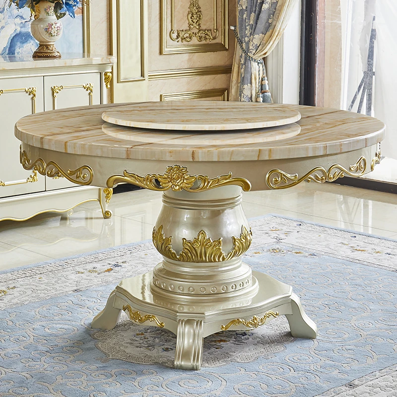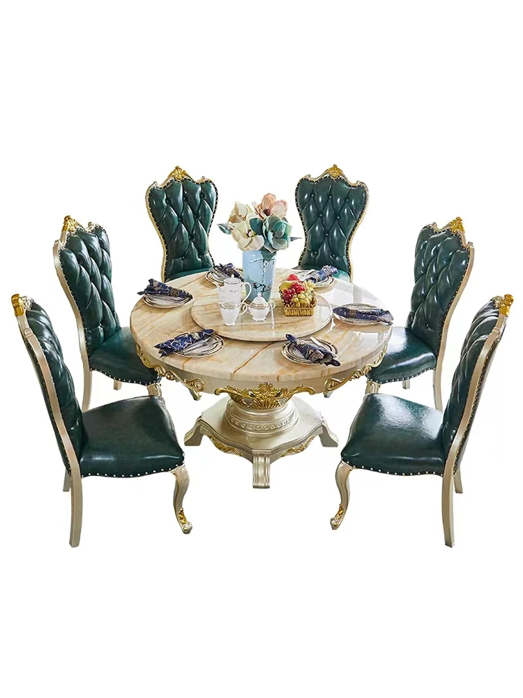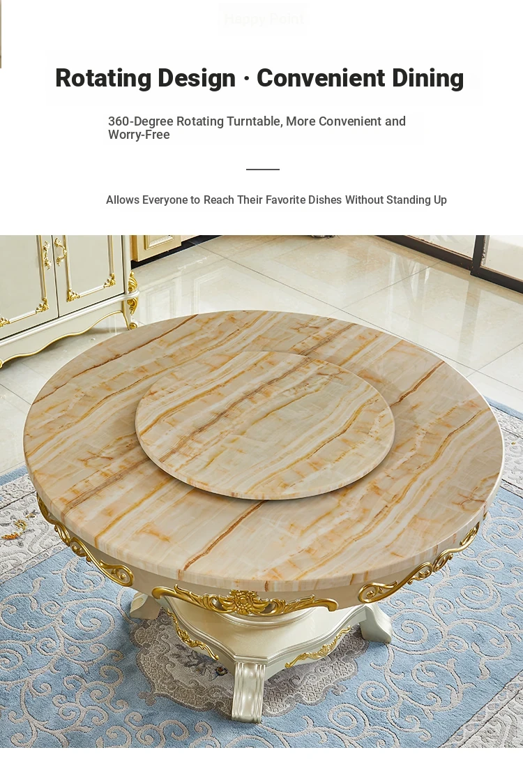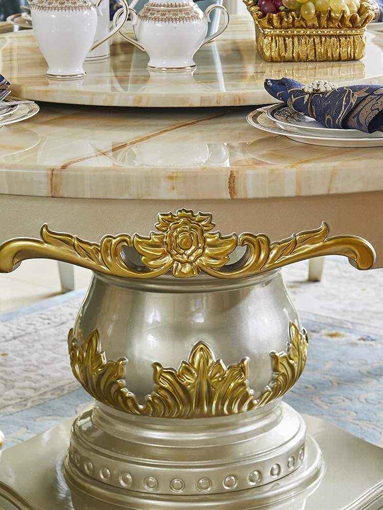 Elegant European Style Round Marble Dining Table Set with Champagne Gold Solid Wood - Perfect for Small Spaces, Includes Rotating Dining Table for Convenient Family Meals