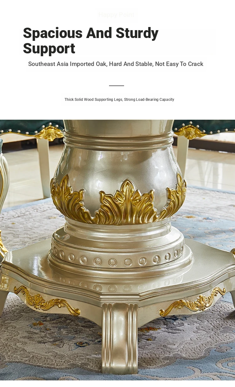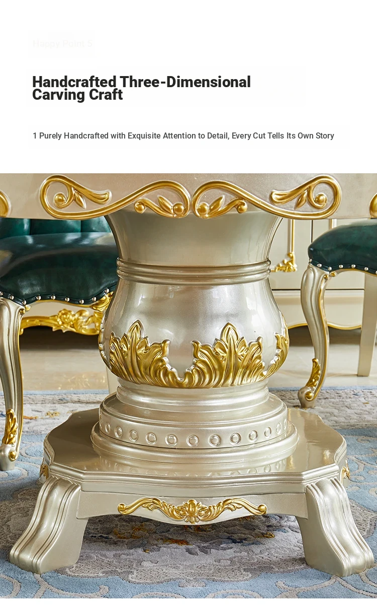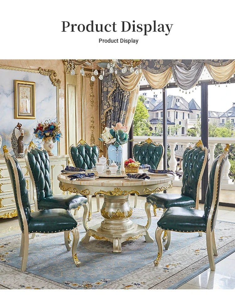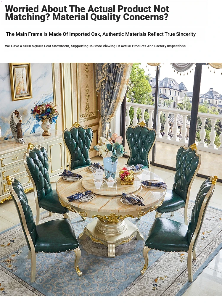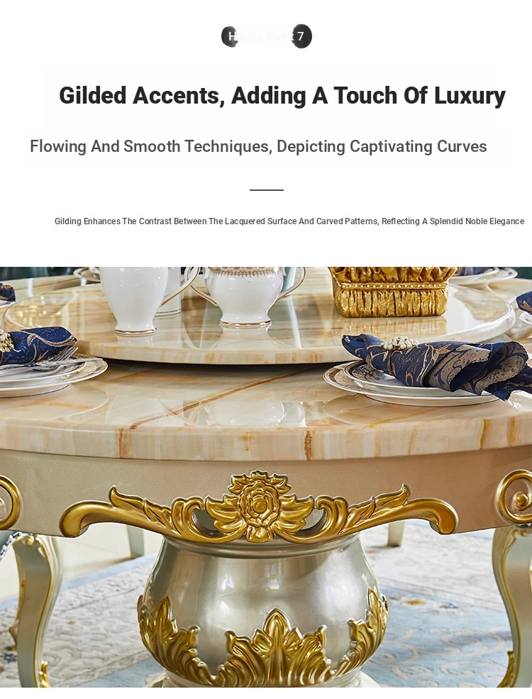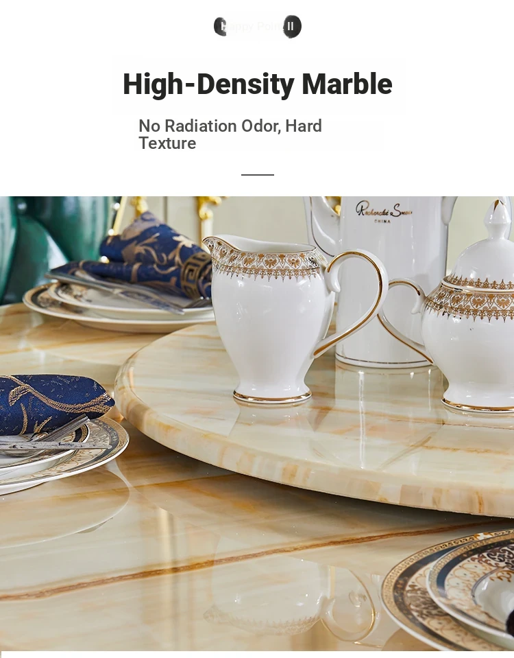 Elegant European Style Round Marble Dining Table Set with Champagne Gold Solid Wood - Perfect for Small Spaces, Includes Rotating Dining Table for Convenient Family Meals