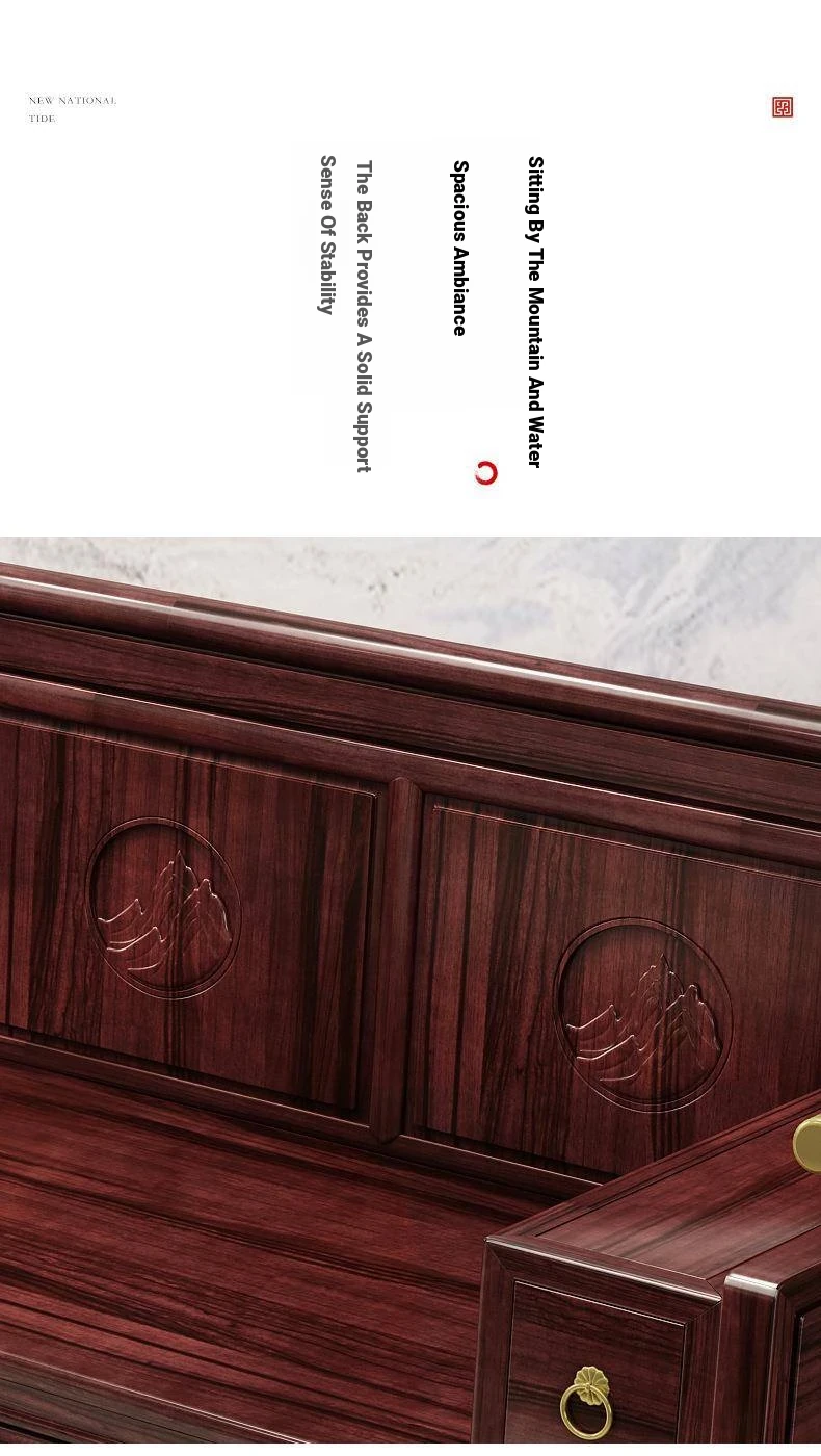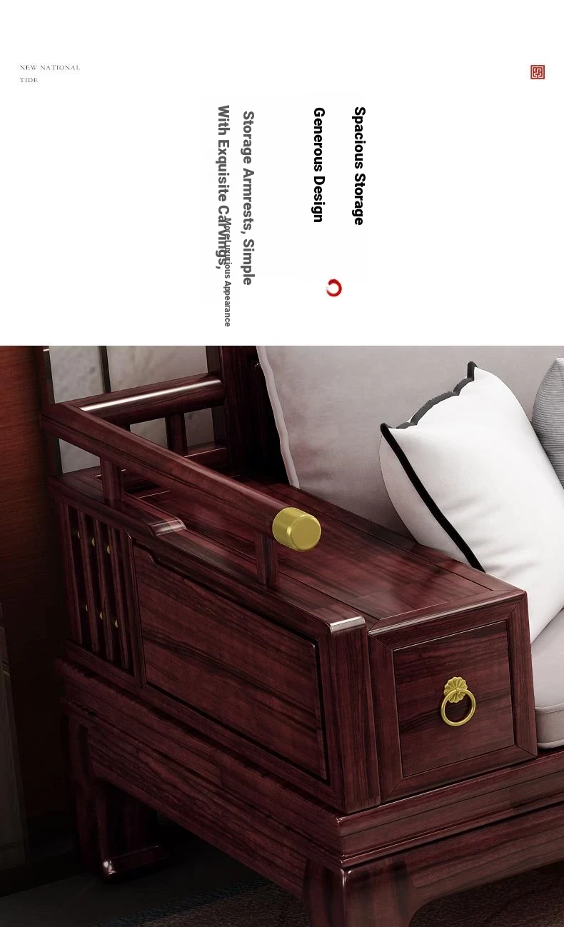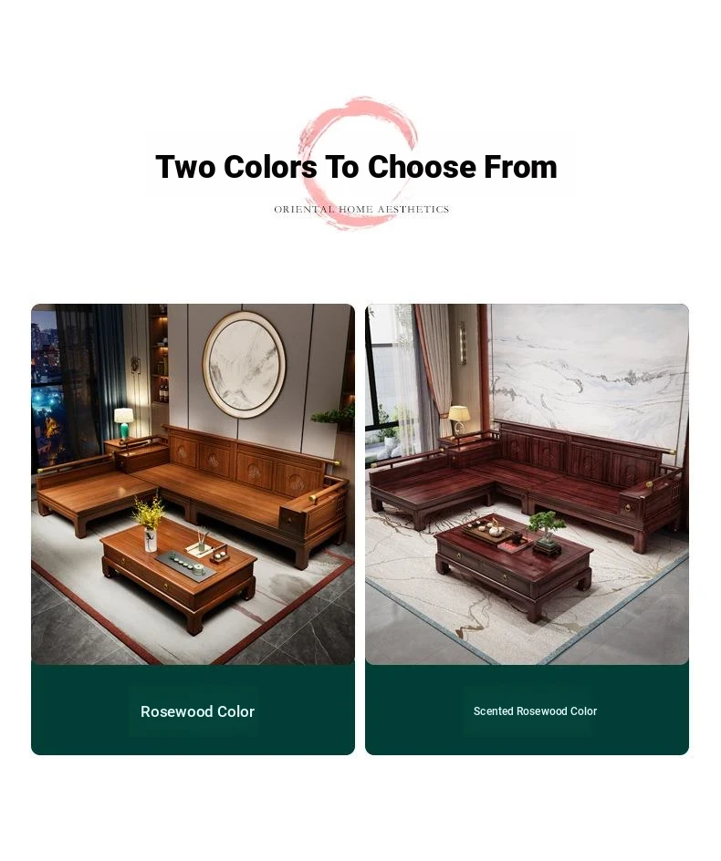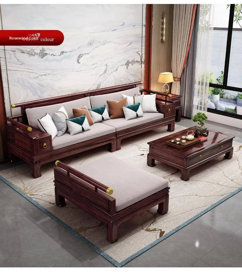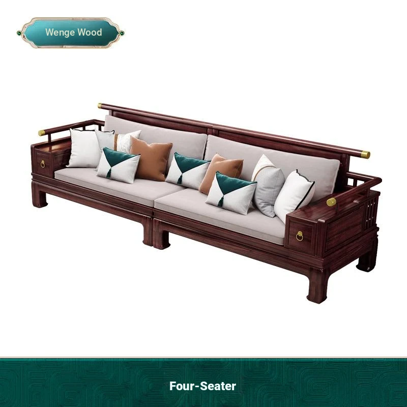 Elegant New Chinese Style Black Gold Wood Solid Corner Sofa with Chaise - Versatile for Winter and Summer, Perfect for Small Spaces, Classical Faux Wood Living Room Furniture