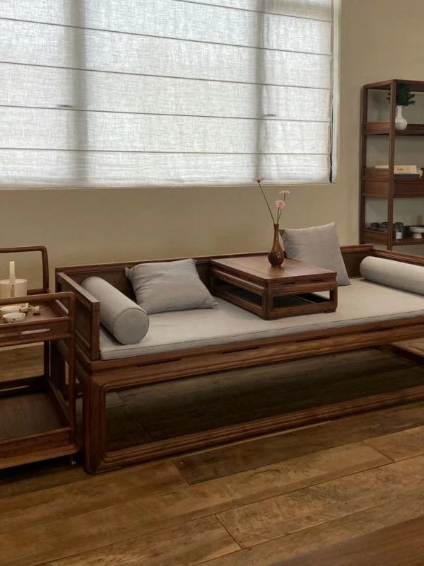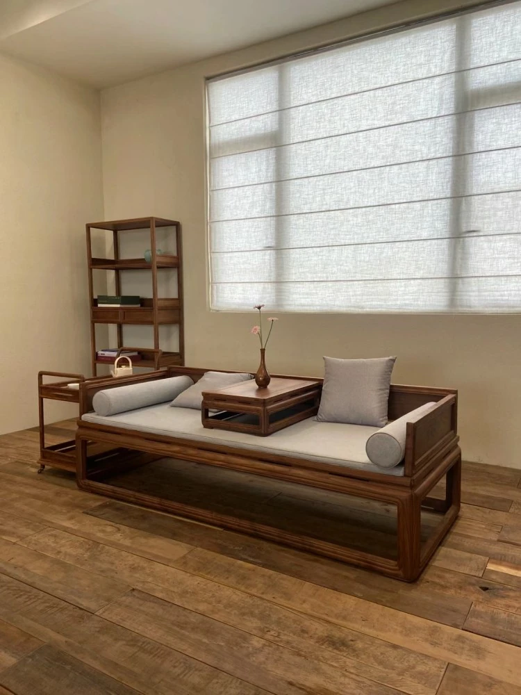 Elegant Solid Wood Sofa Set for Living Room and Tea Room - Versatile All-Season Luohan Bed with Zen Aesthetic. Perfect for Modern Chinese Style Home Décor!