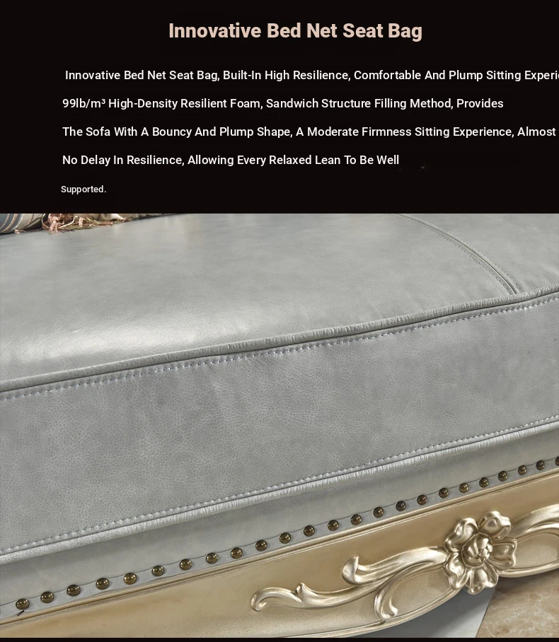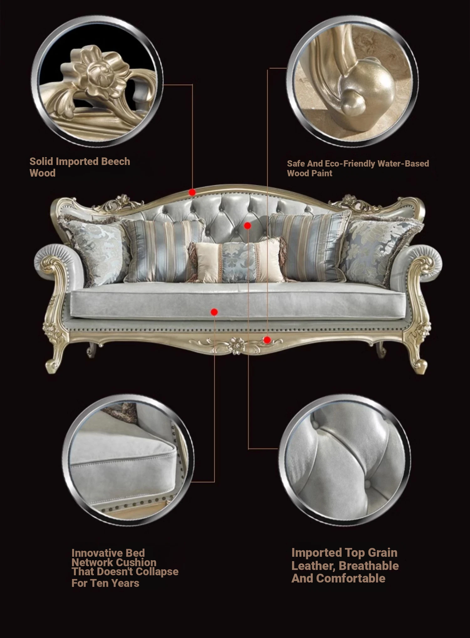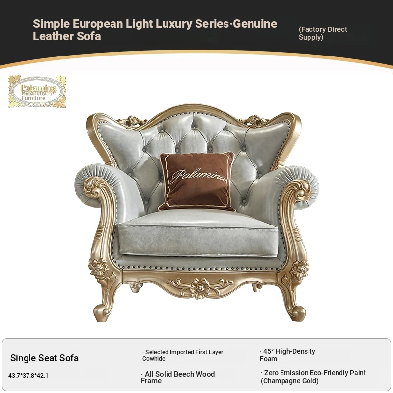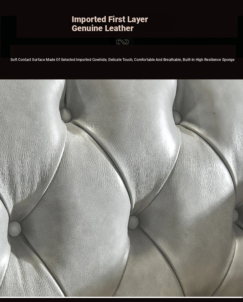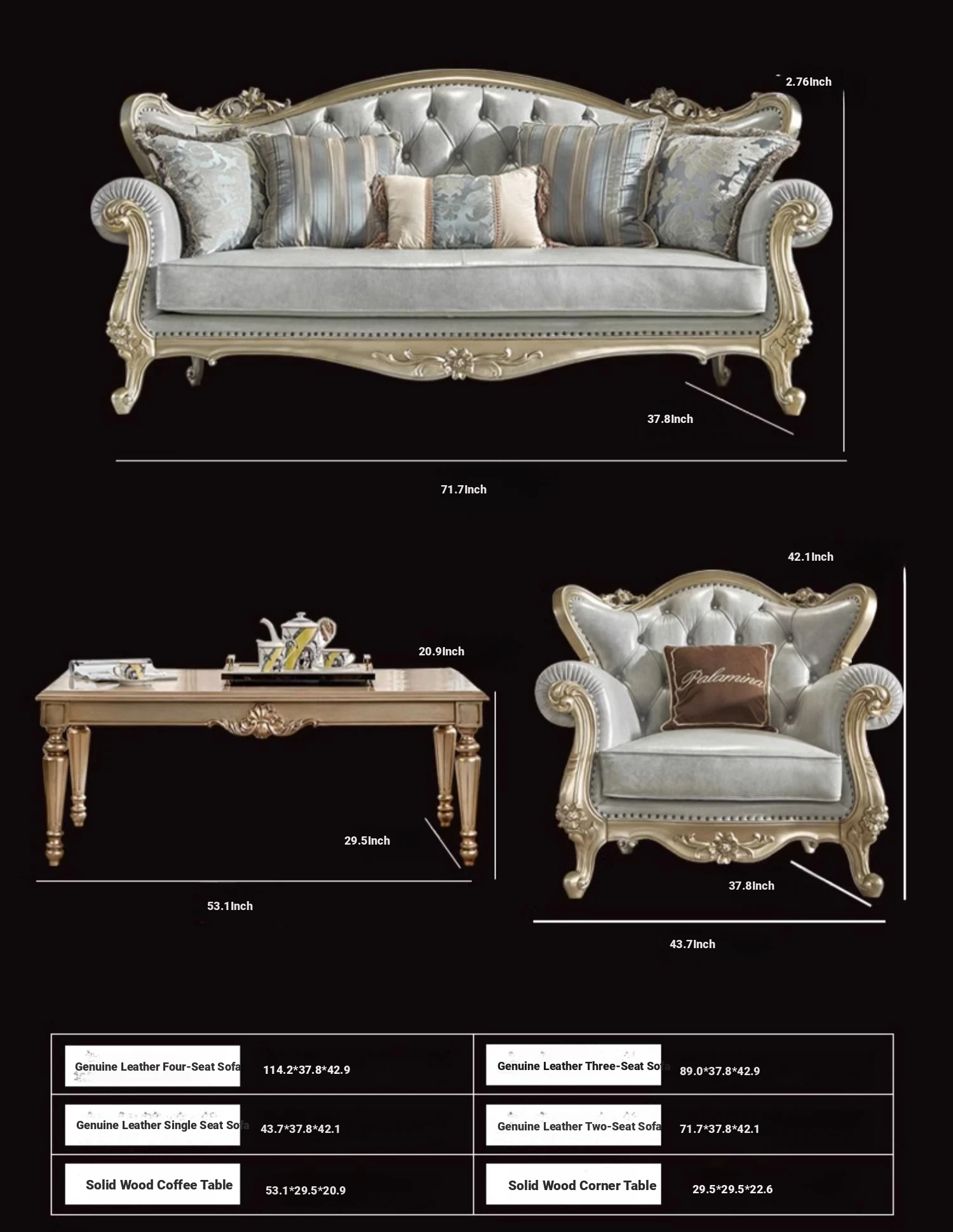 European Style Genuine Leather Sofa - American Light Luxury, Top-Grain Cowhide, French Full Solid Wood, 3-Seater Combination Living Room Furniture - Luxurious Comfort for Your Home