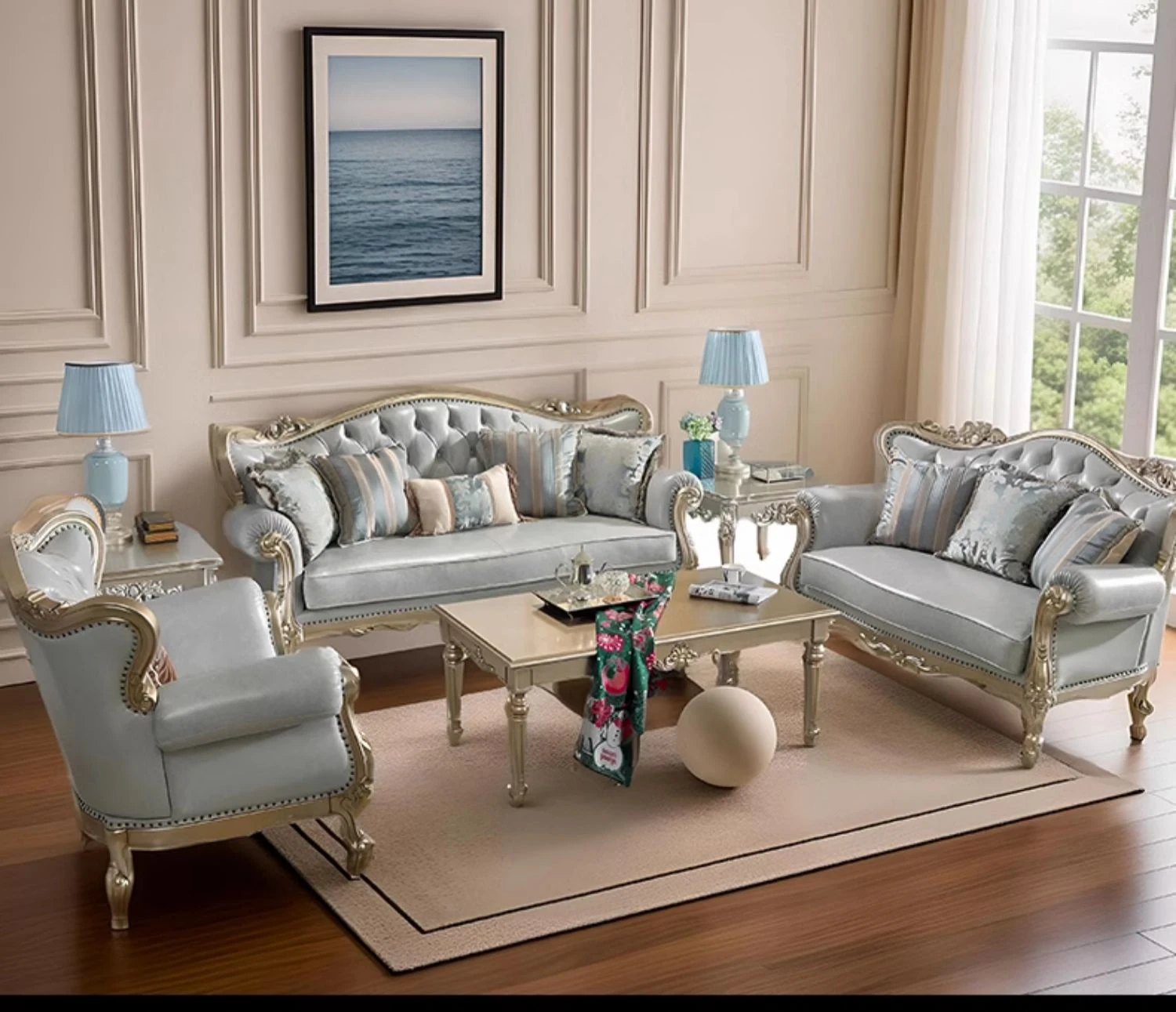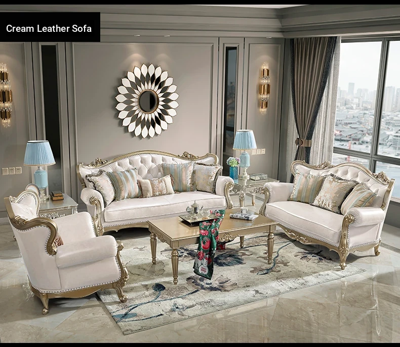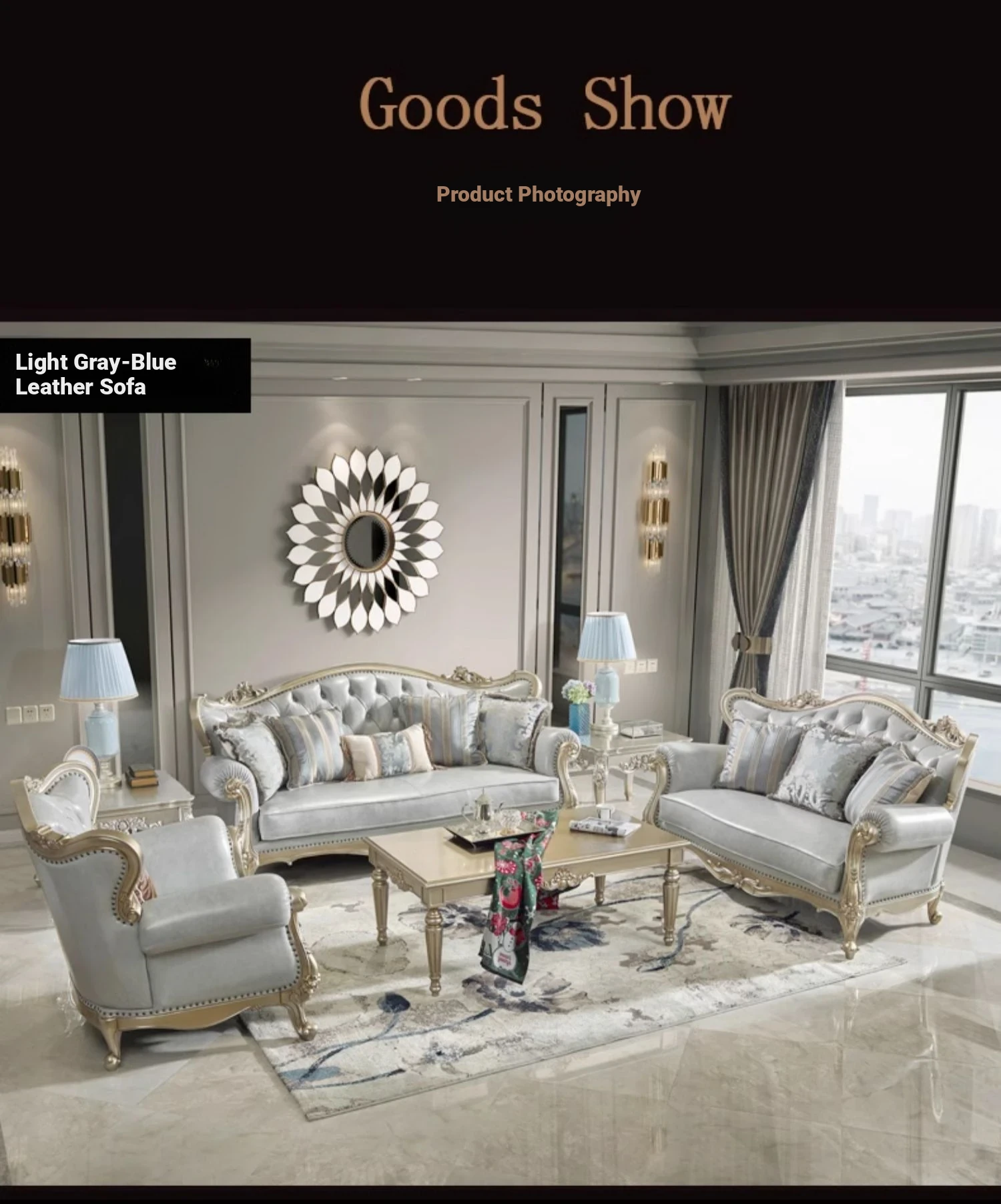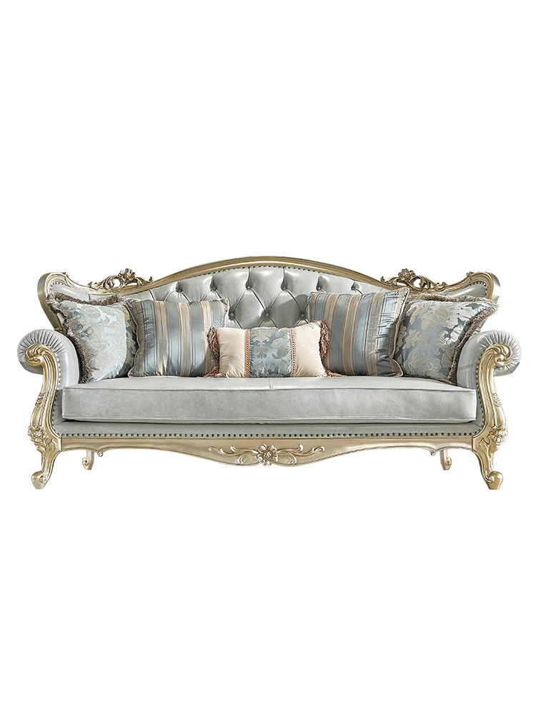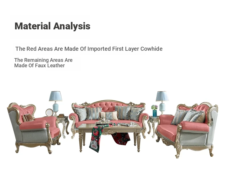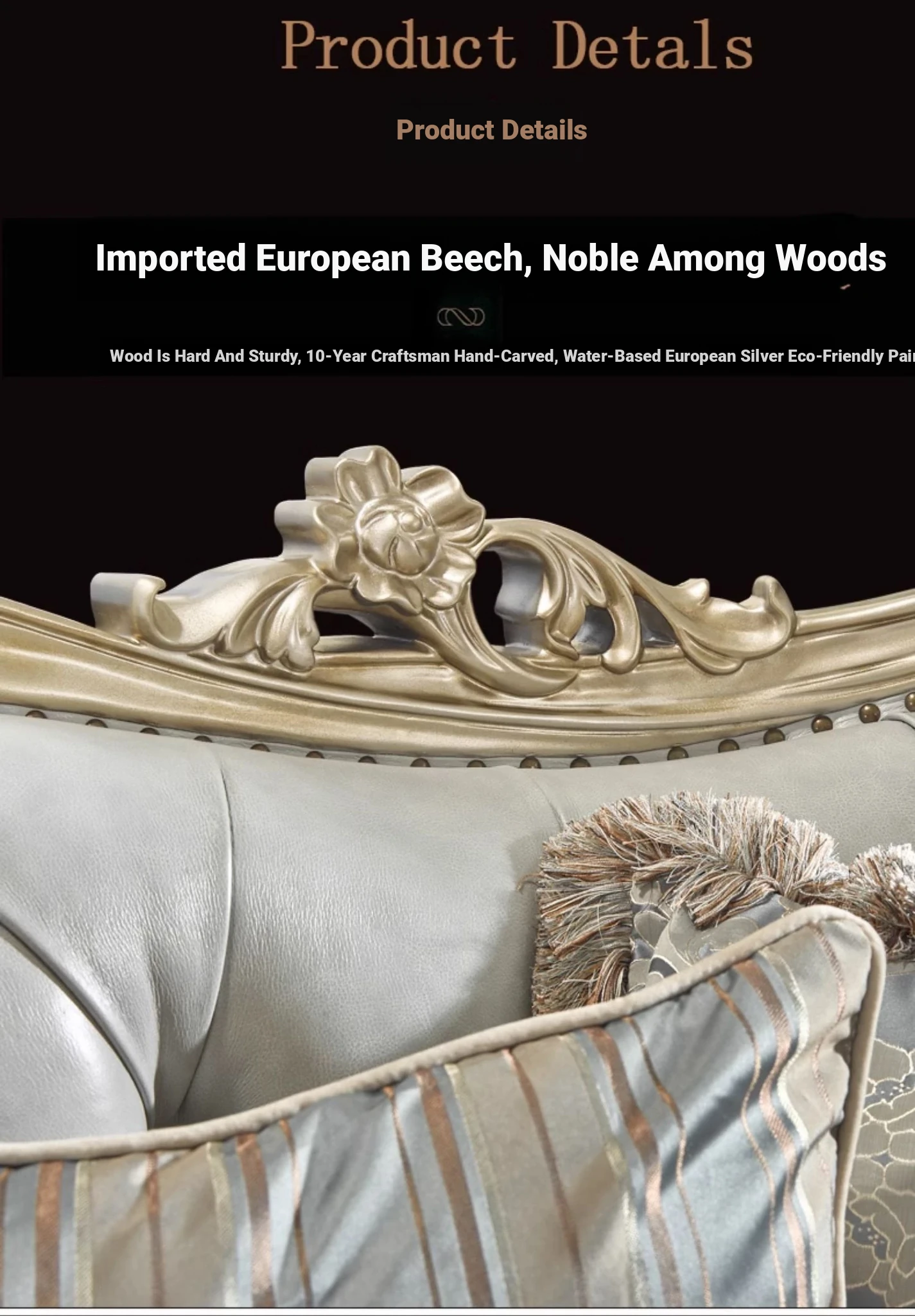 European Style Genuine Leather Sofa - American Light Luxury, Top-Grain Cowhide, French Full Solid Wood, 3-Seater Combination Living Room Furniture - Luxurious Comfort for Your Home
