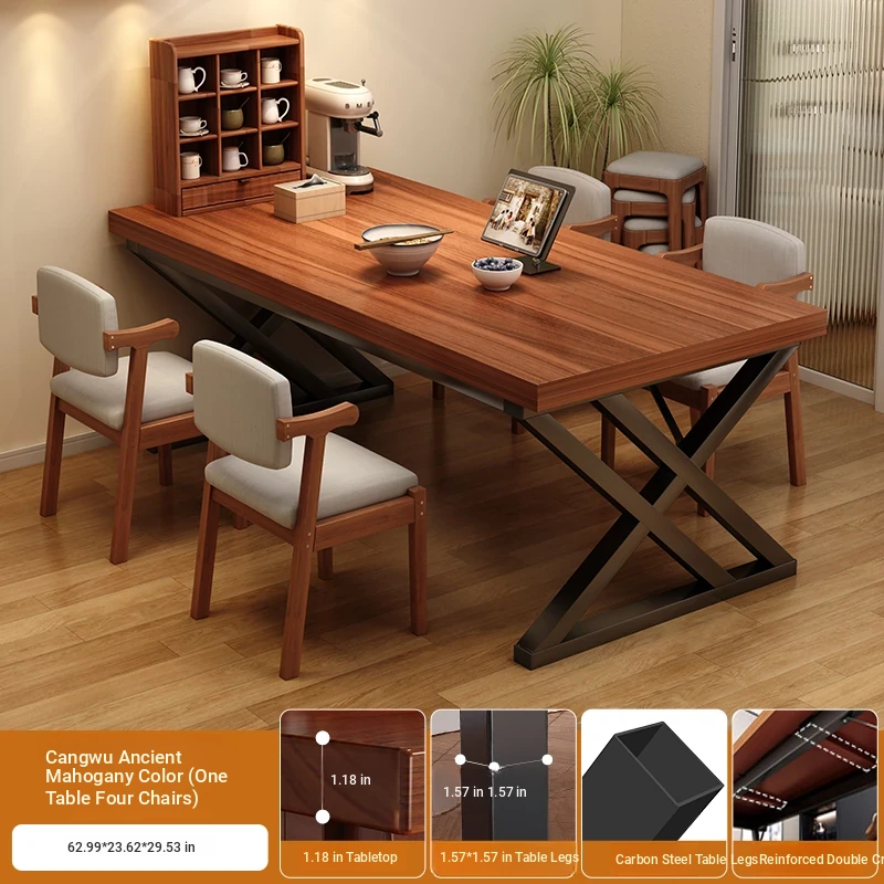 [Main picture combination] solid wood chair * 4 Cangwu ancient sandalwood color 120*60*75