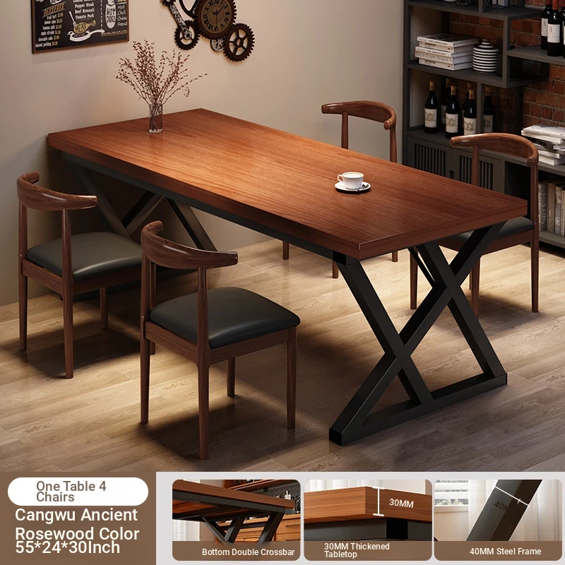 [A table of four chairs * iron horn chair] walnut color 62.99in*27.56in*29.53in