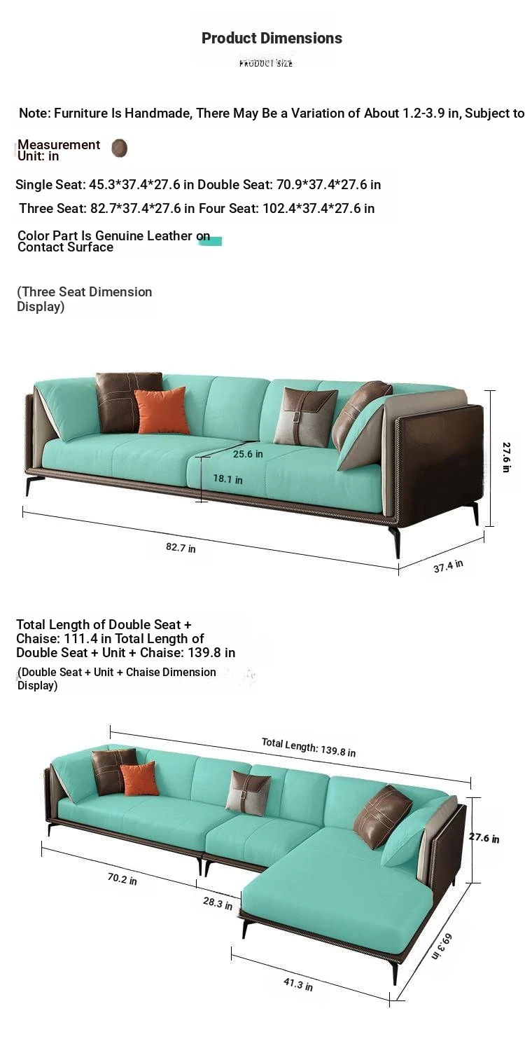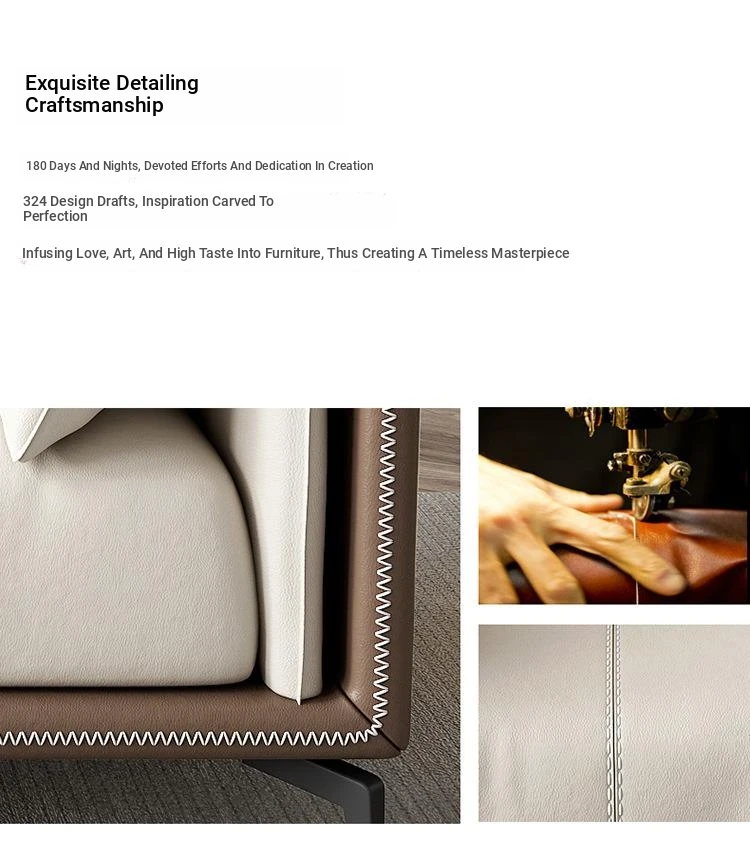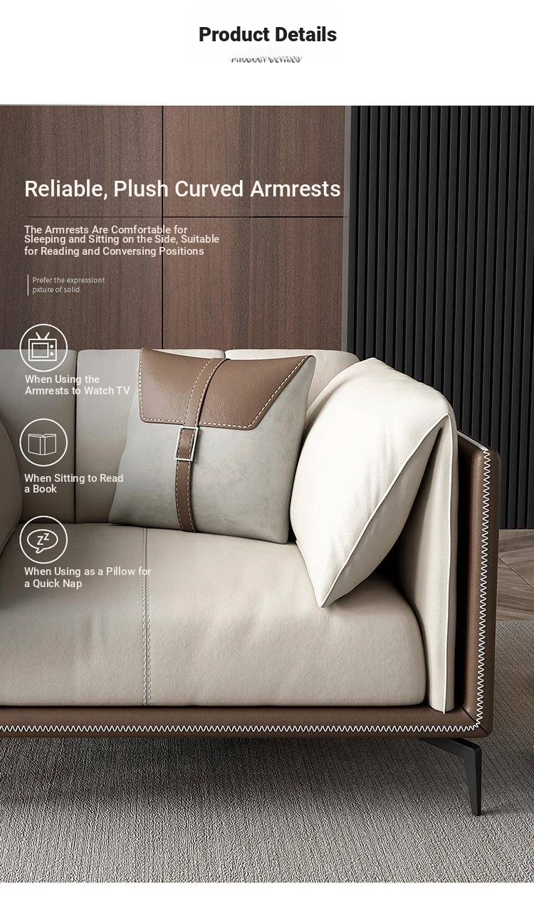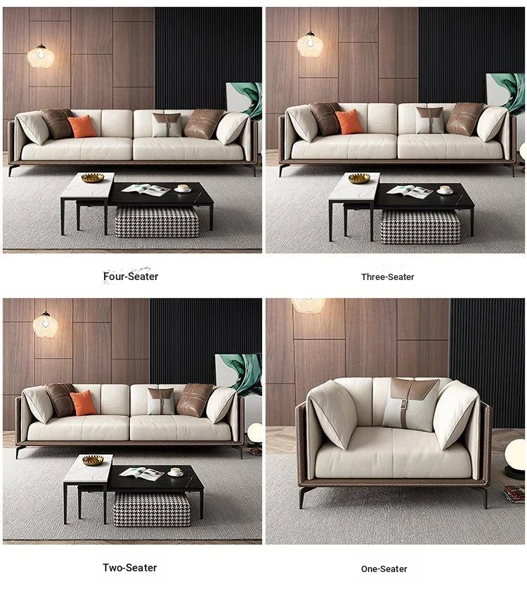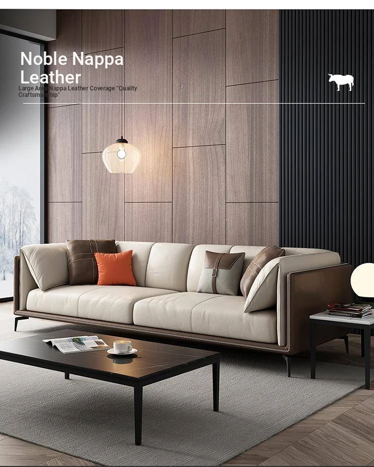 Genuine Leather Italian Style Sofa Set - Modern Minimalist Design for Small Spaces, Perfect for Offices and Hotels, Made with Top Grain Cowhide