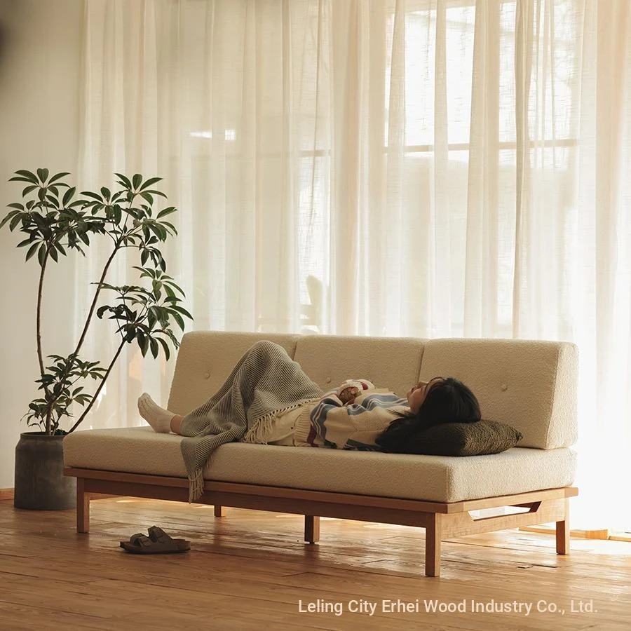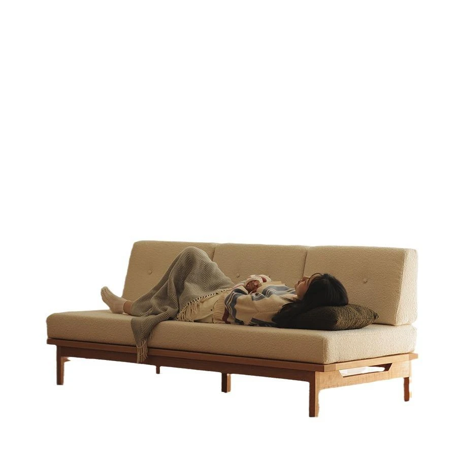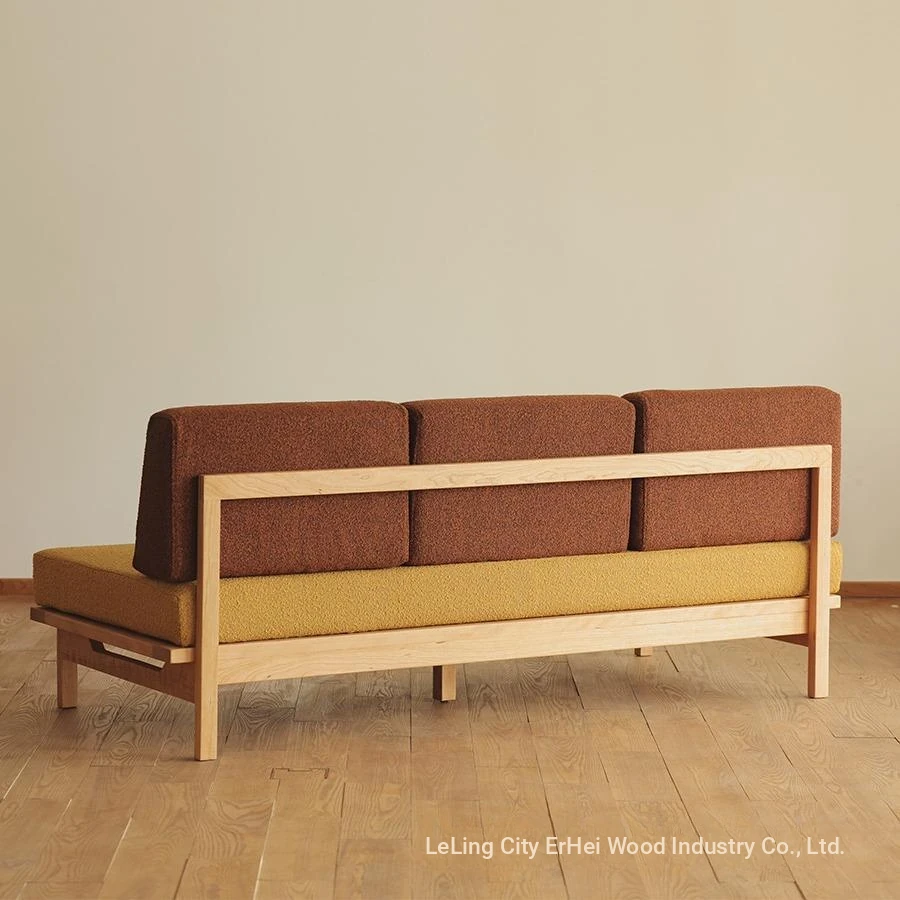 Japanese-Style Cherry Wood Frame Sofa - Armrest-Free Solid Wood Vintage Fabric Lounge Sofa for Living Room