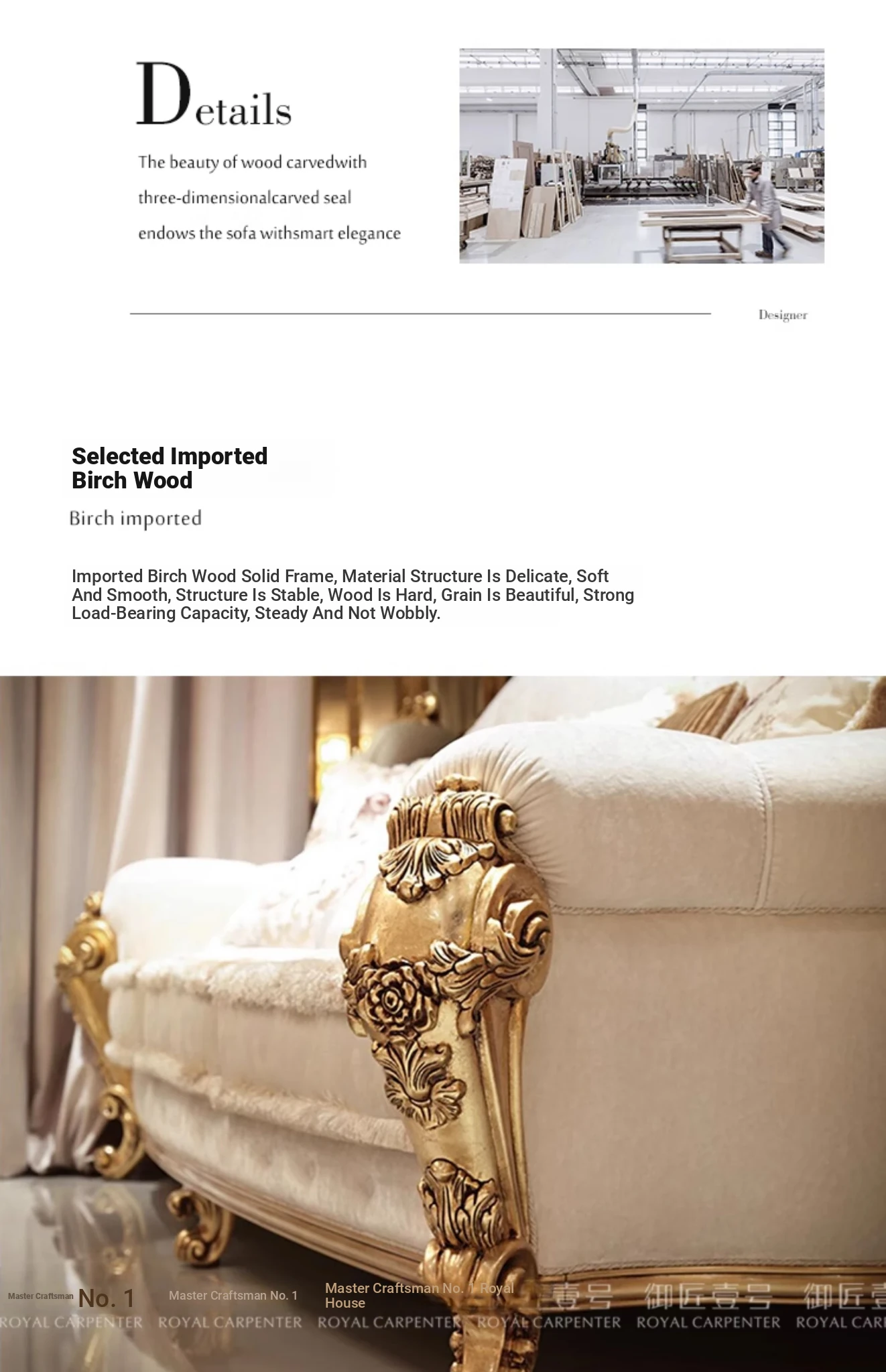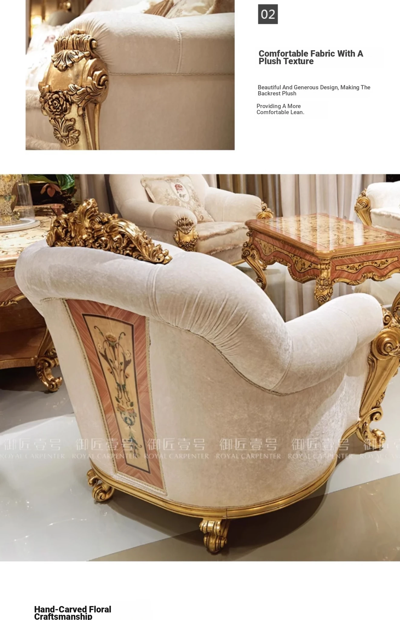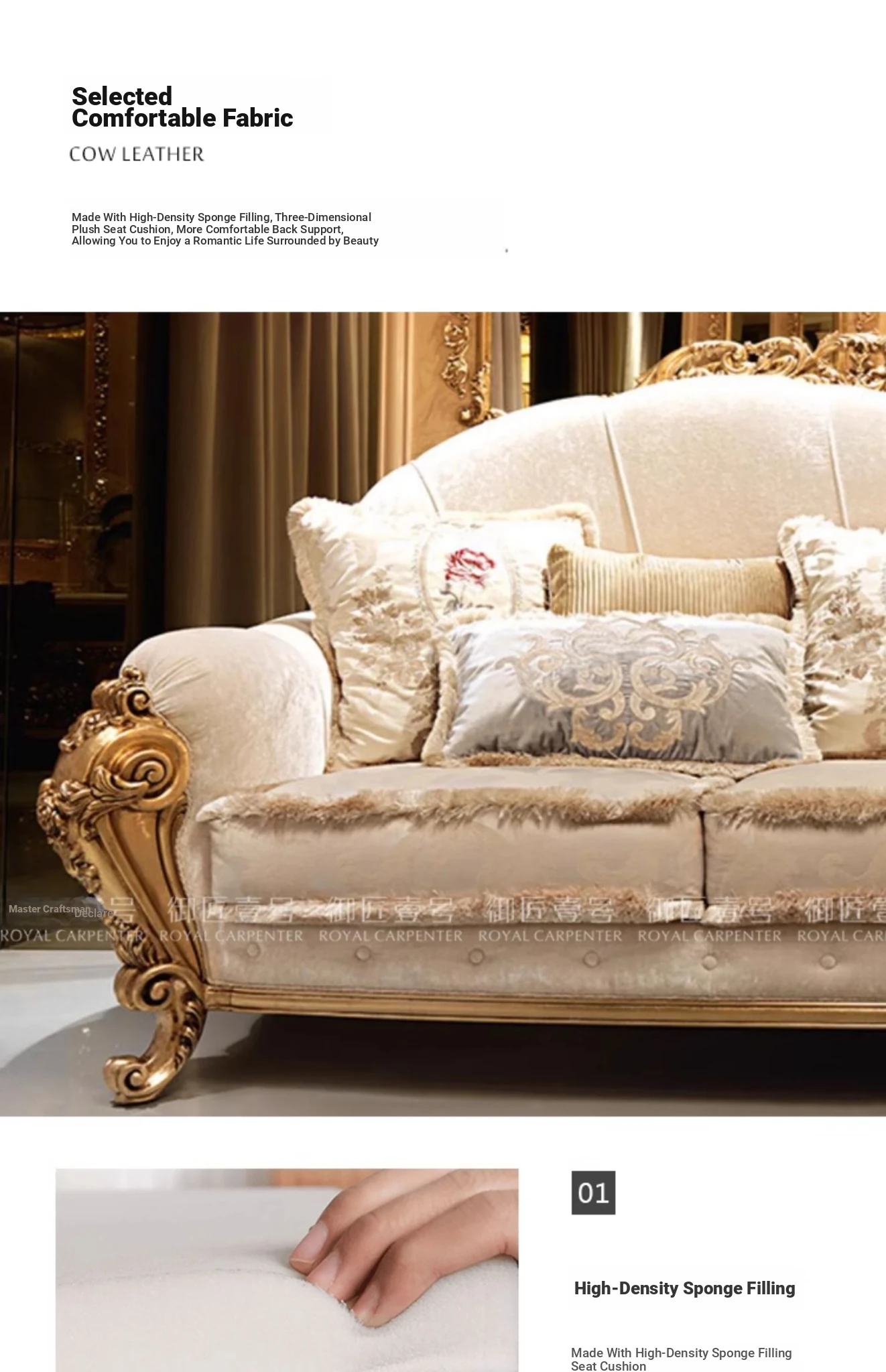 Luxurious European-Style Solid Wood Carved Golden Fabric Sofa Set for Large High-End Villas - Elegant French Living Room Furniture