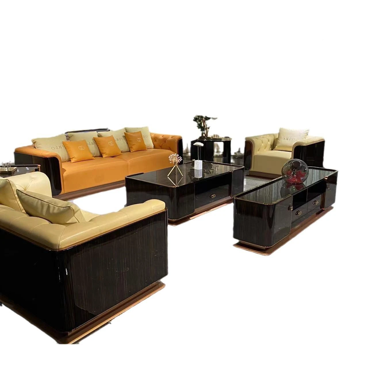 Luxurious Sand-Style Genuine Leather Sofa Set for High-End Villas - Modern 1+2 Combination Living Room Couch with Minimalist Design