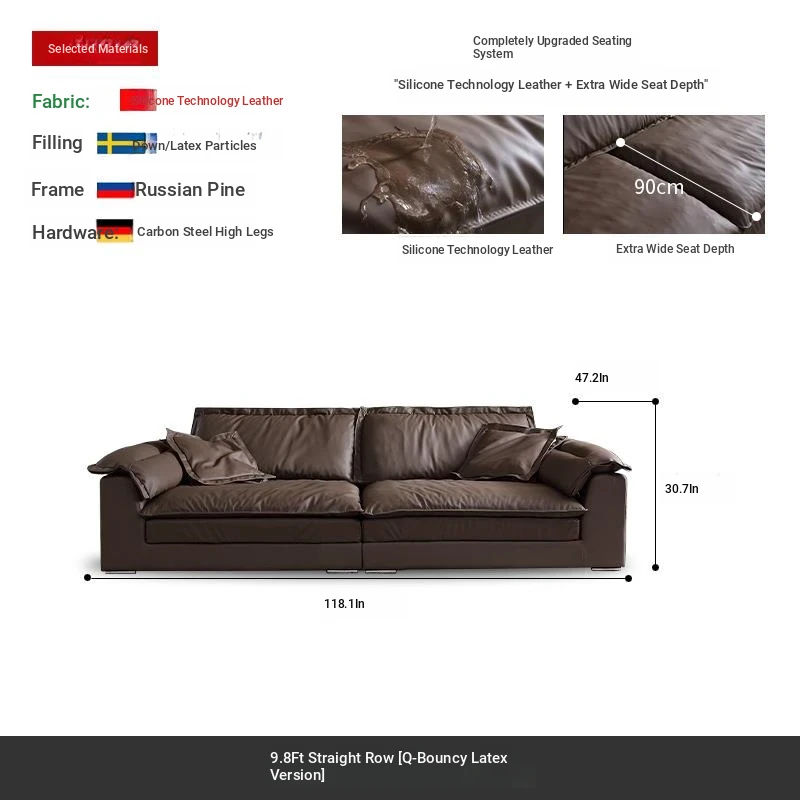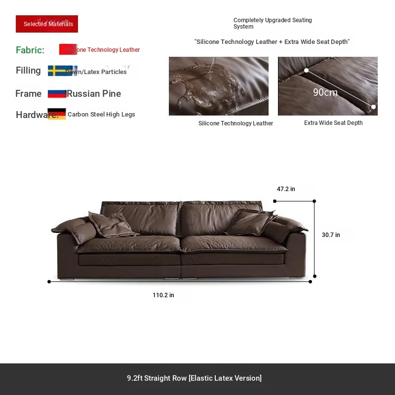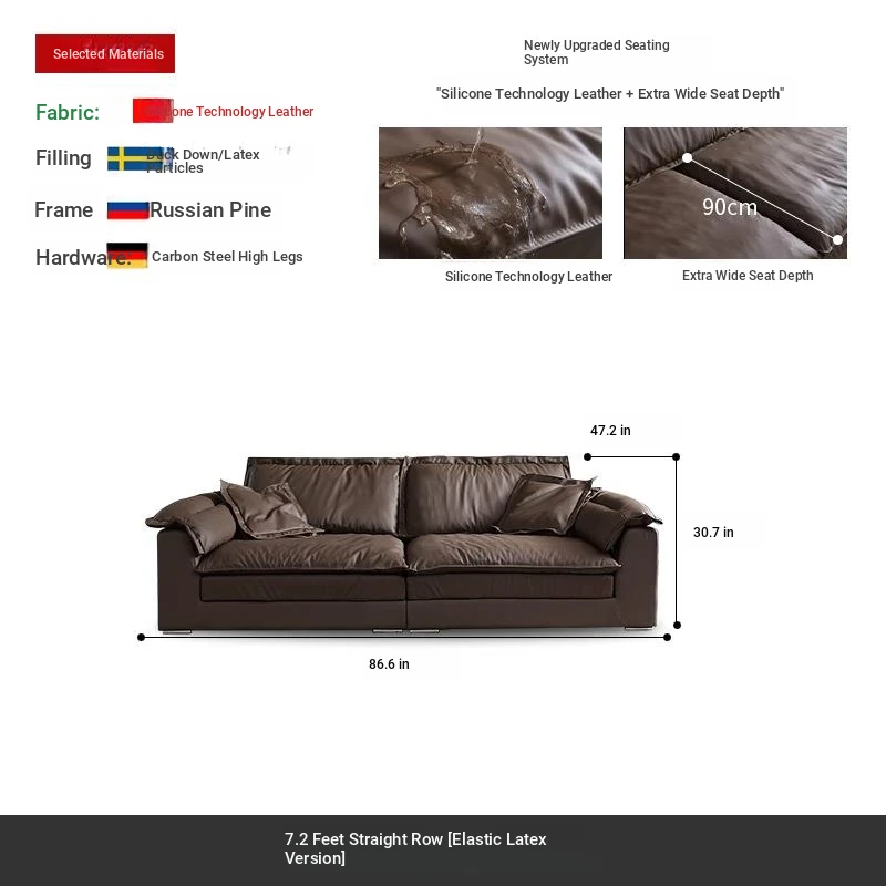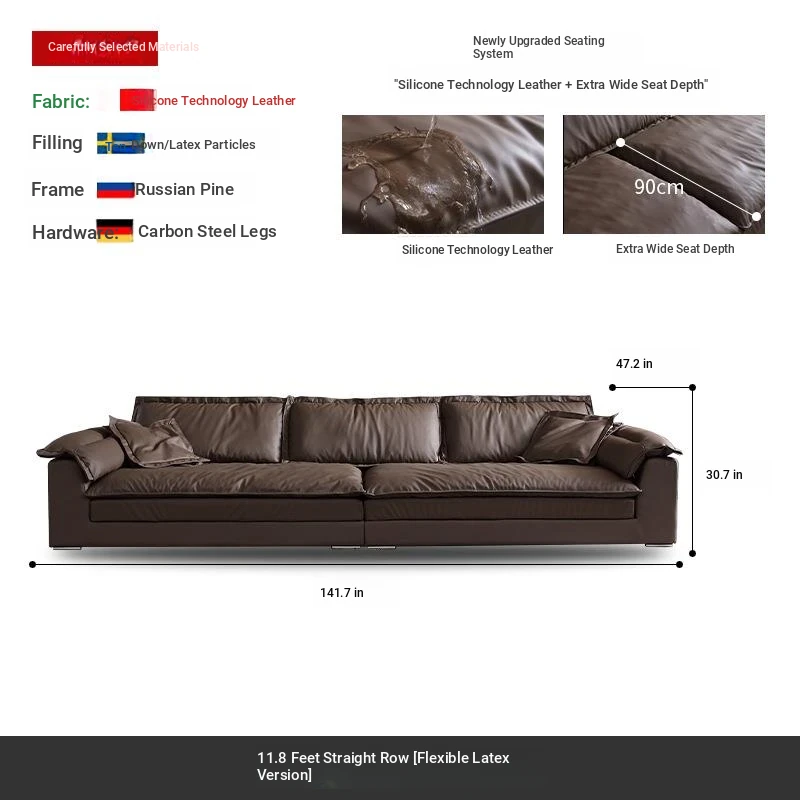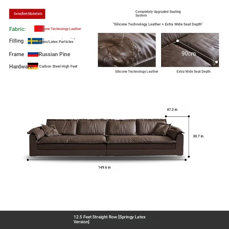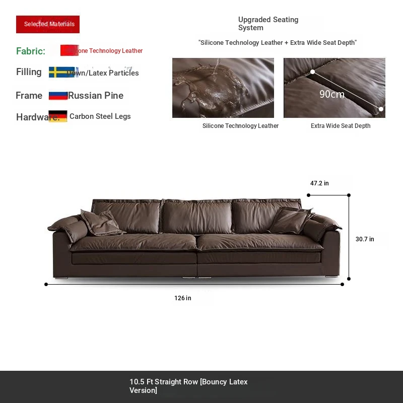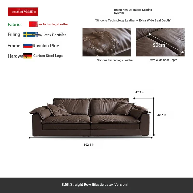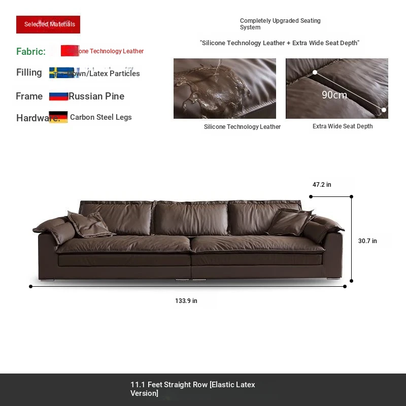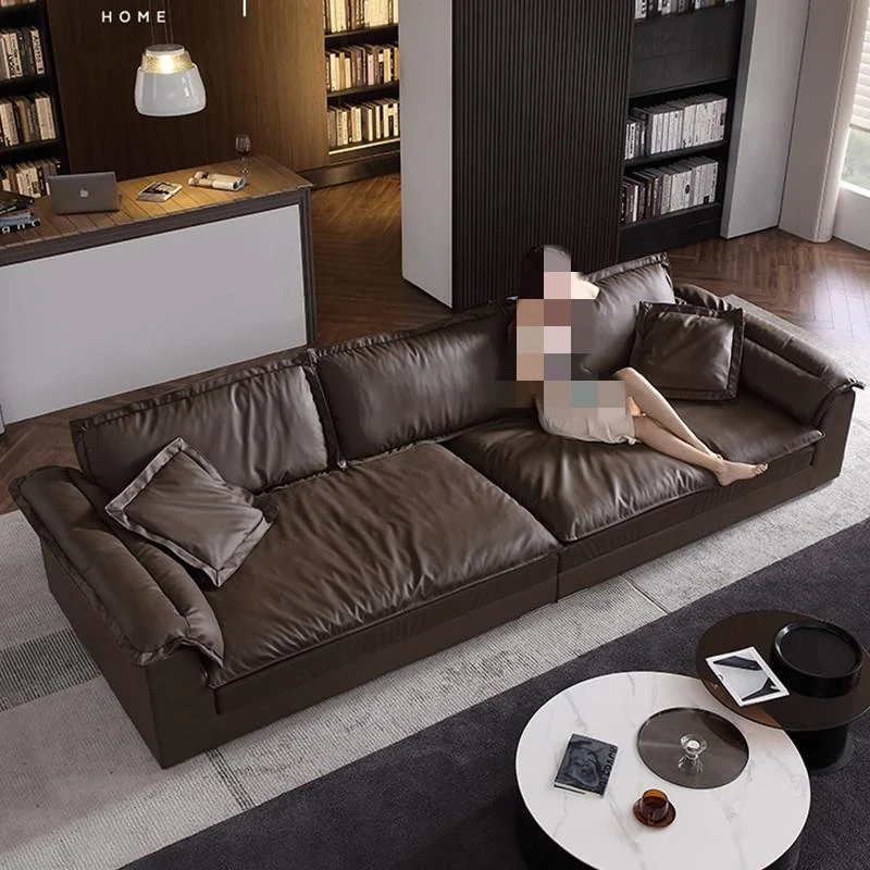 Luxury Eco-Friendly Silicone Leather Sofa - Modern Italian Minimalist Deep Seat Wide Sofa for Living Room, Trendy Design Perfect for Stylish Interiors