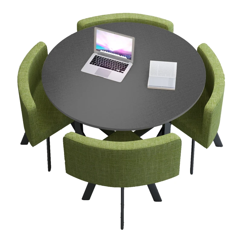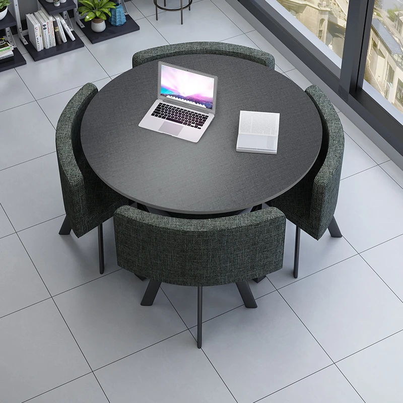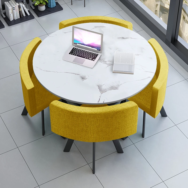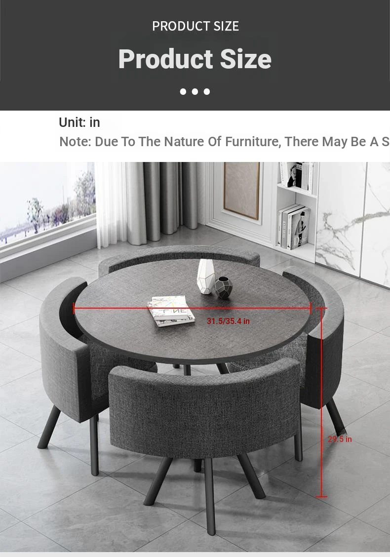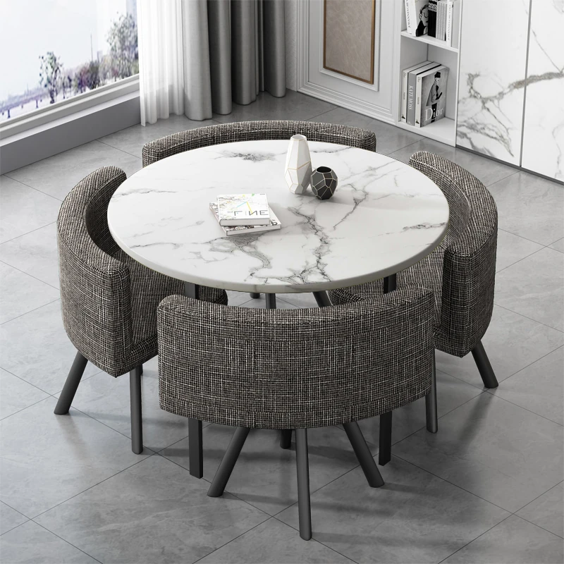 Imitation stone grain round + gray cloth chair 1 table 4 chairs