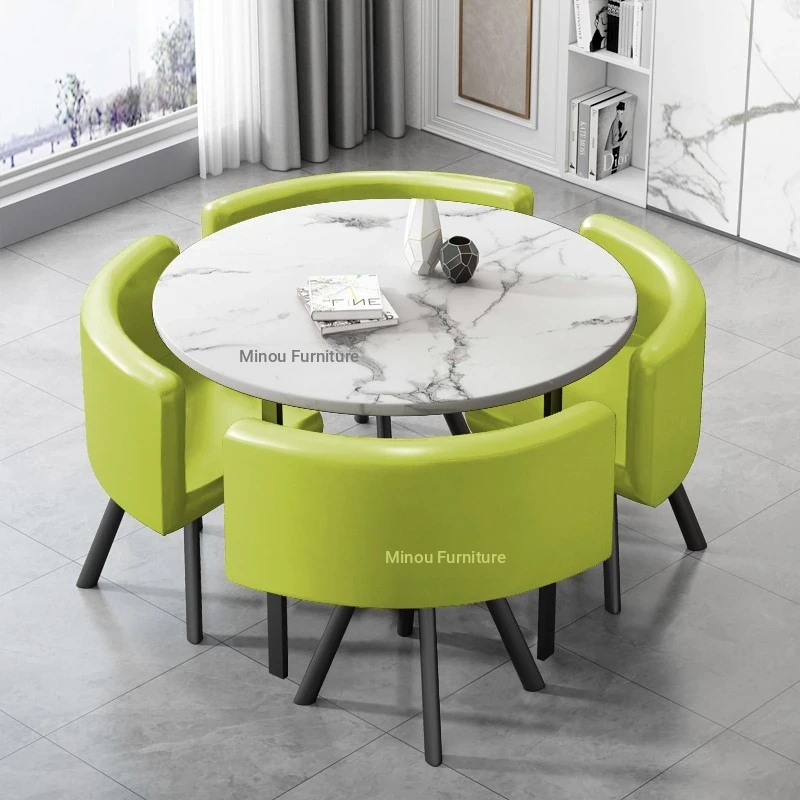 Minimalist Reception Desk and Chair Set - Stylish Meeting Table for Storefronts, Office Lounges, and Casual Gatherings - Scandinavian-Inspired Round and Square Dining Tables