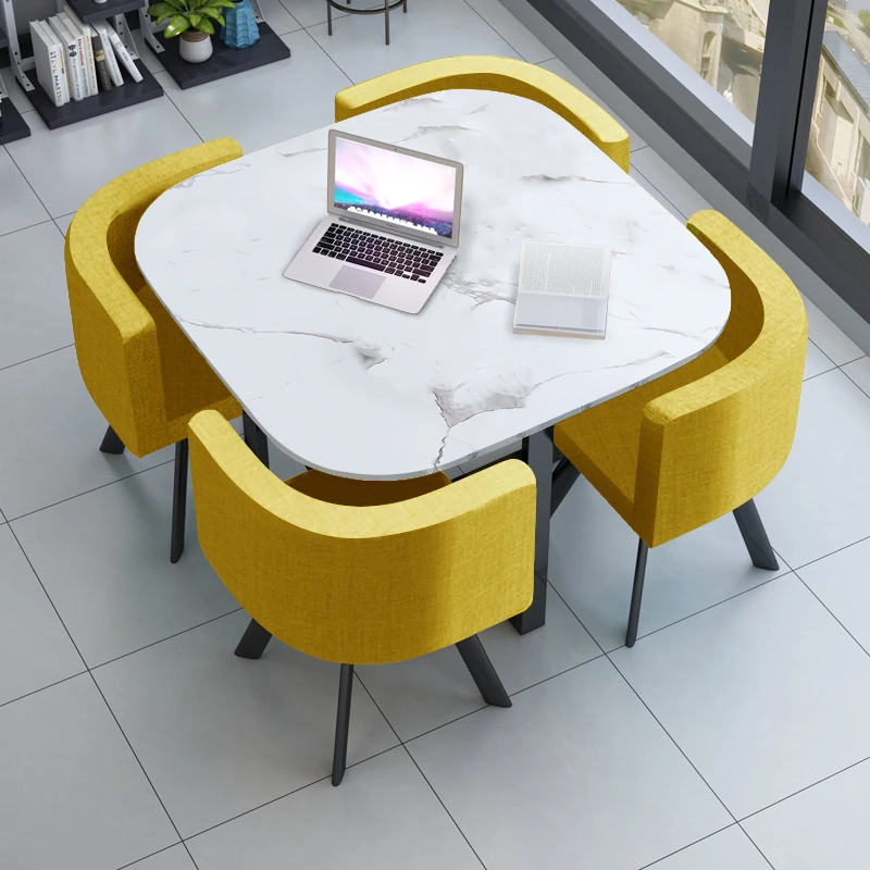 Imitation stone pattern square + gray cloth chair 1 table 4 chairs