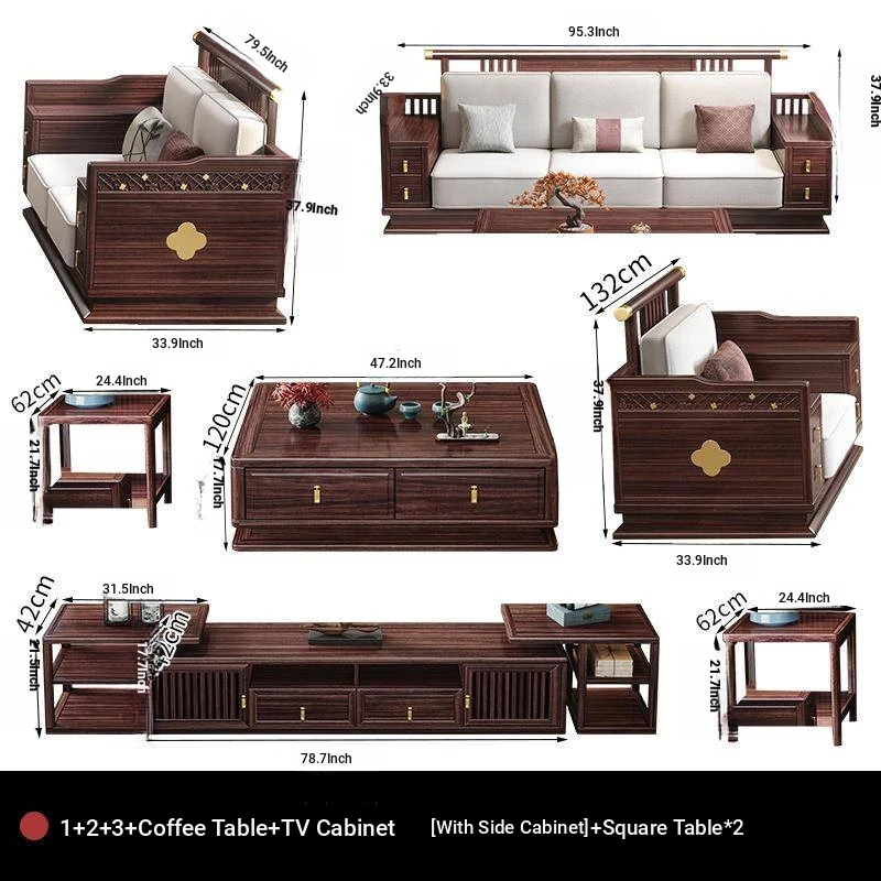 1+2+3 + coffee table + TV cabinet (with side frame)