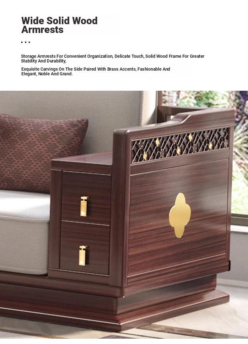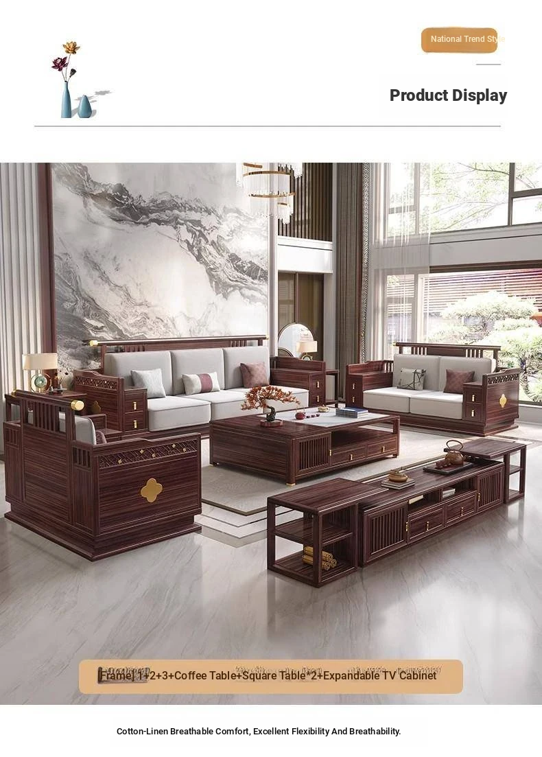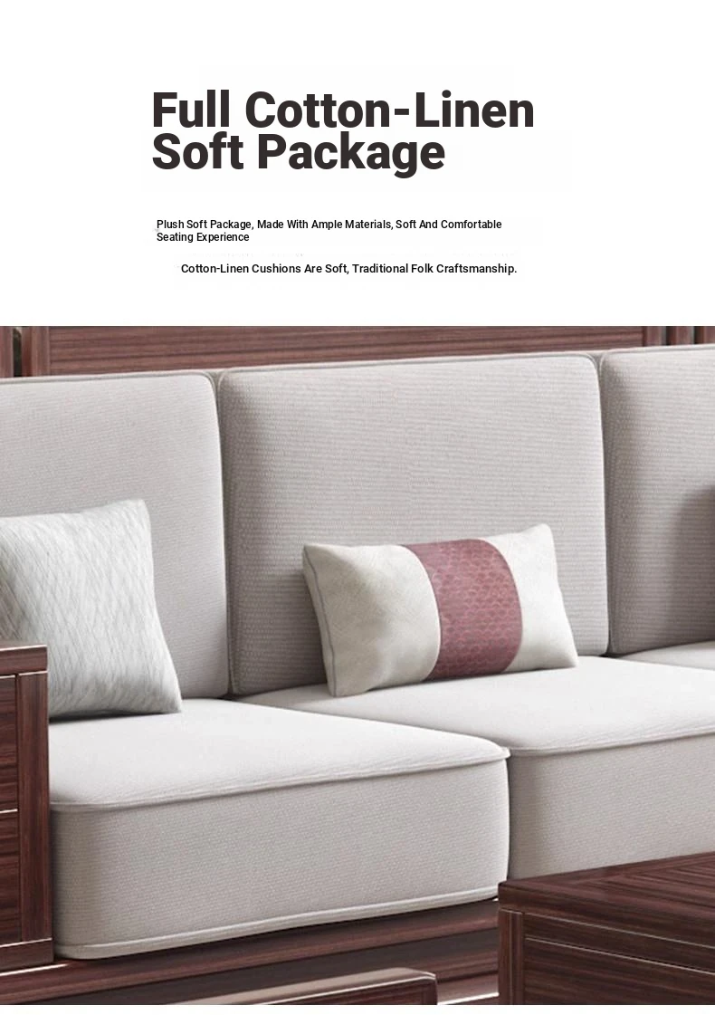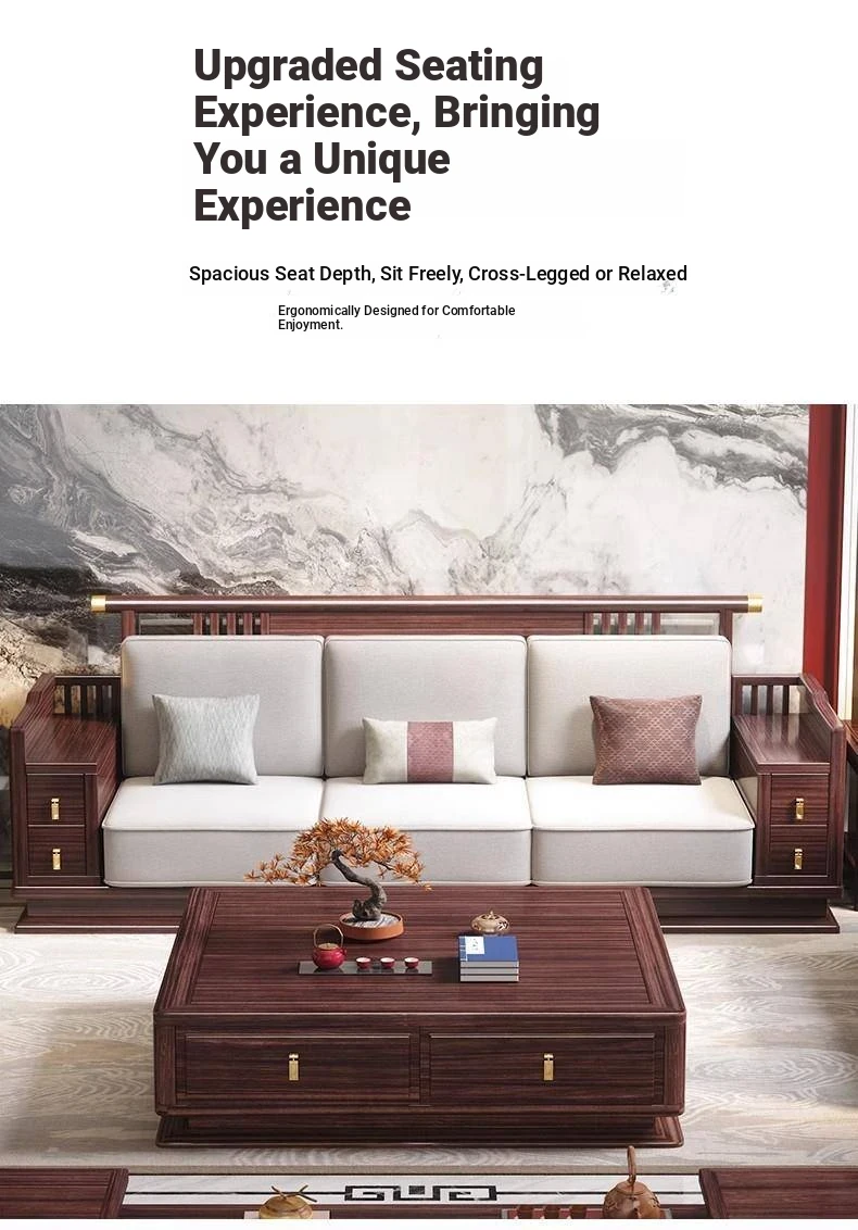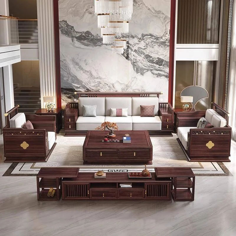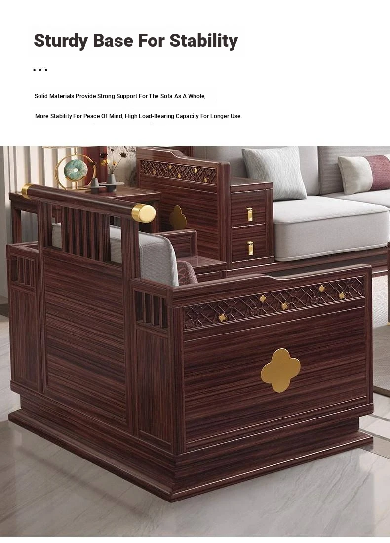 Modern Chinese Solid Wood Sofa Set - All Solid Black Gold Wood, Minimalist Design for Spacious Villas and Living Rooms, Perfect for Home Decoration