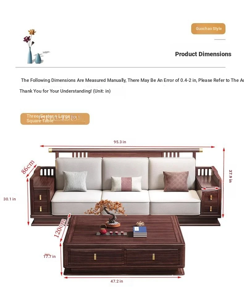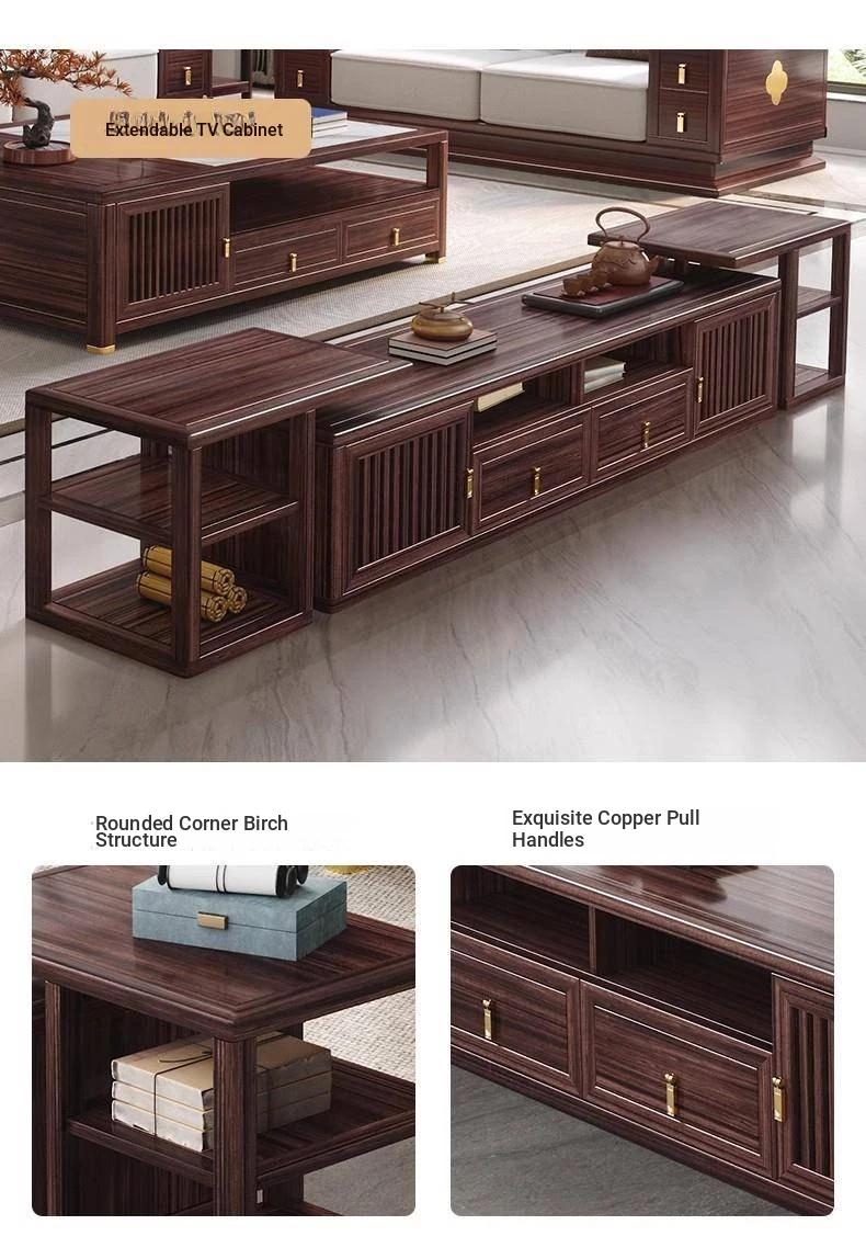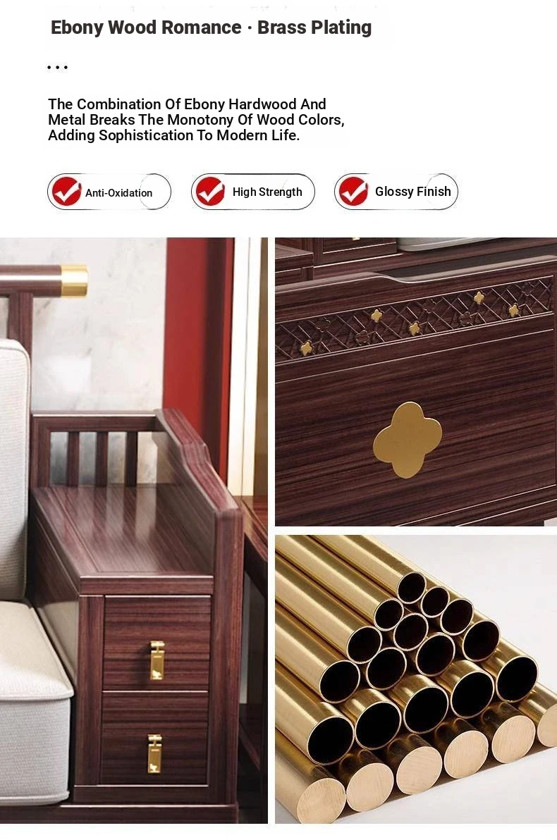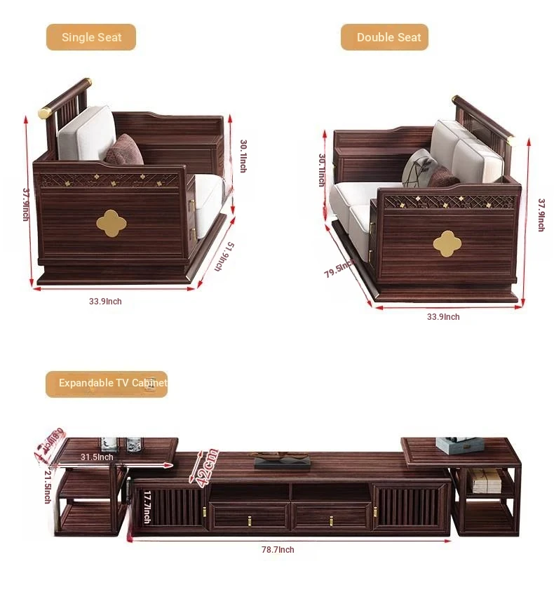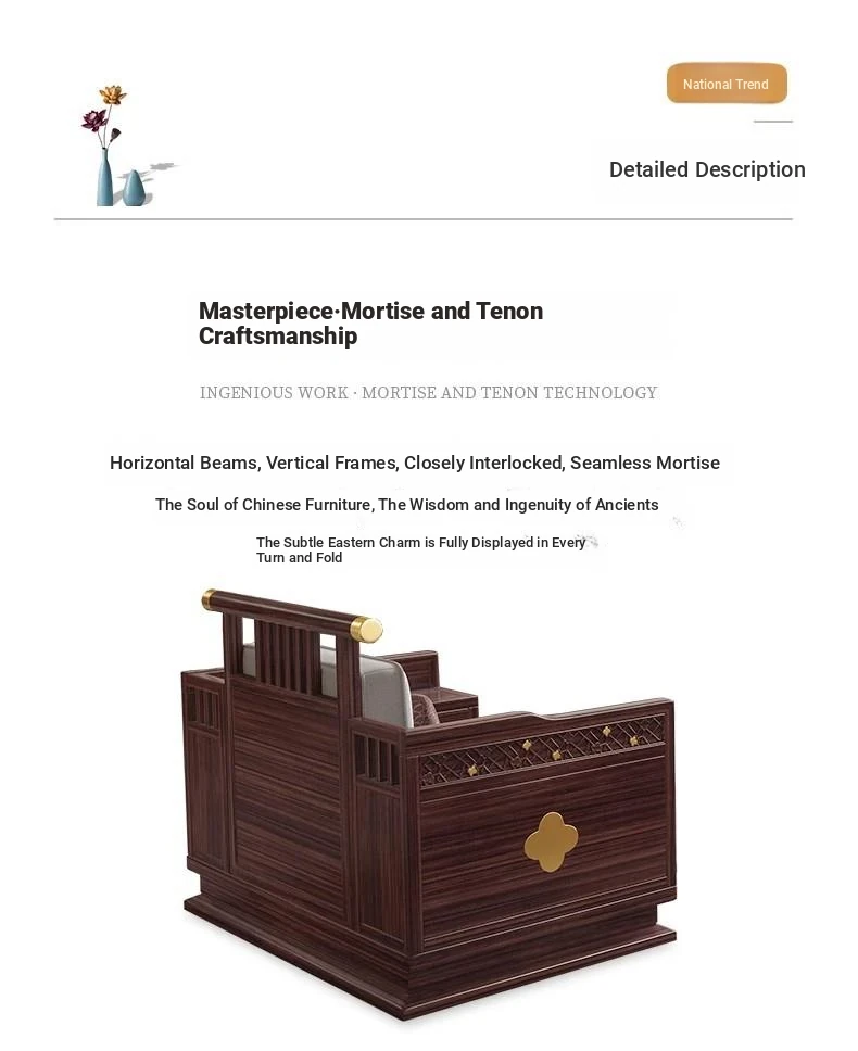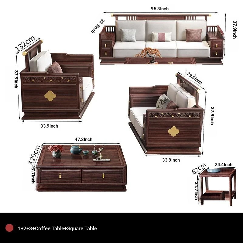 Modern Chinese Solid Wood Sofa Set - All Solid Black Gold Wood, Minimalist Design for Spacious Villas and Living Rooms, Perfect for Home Decoration