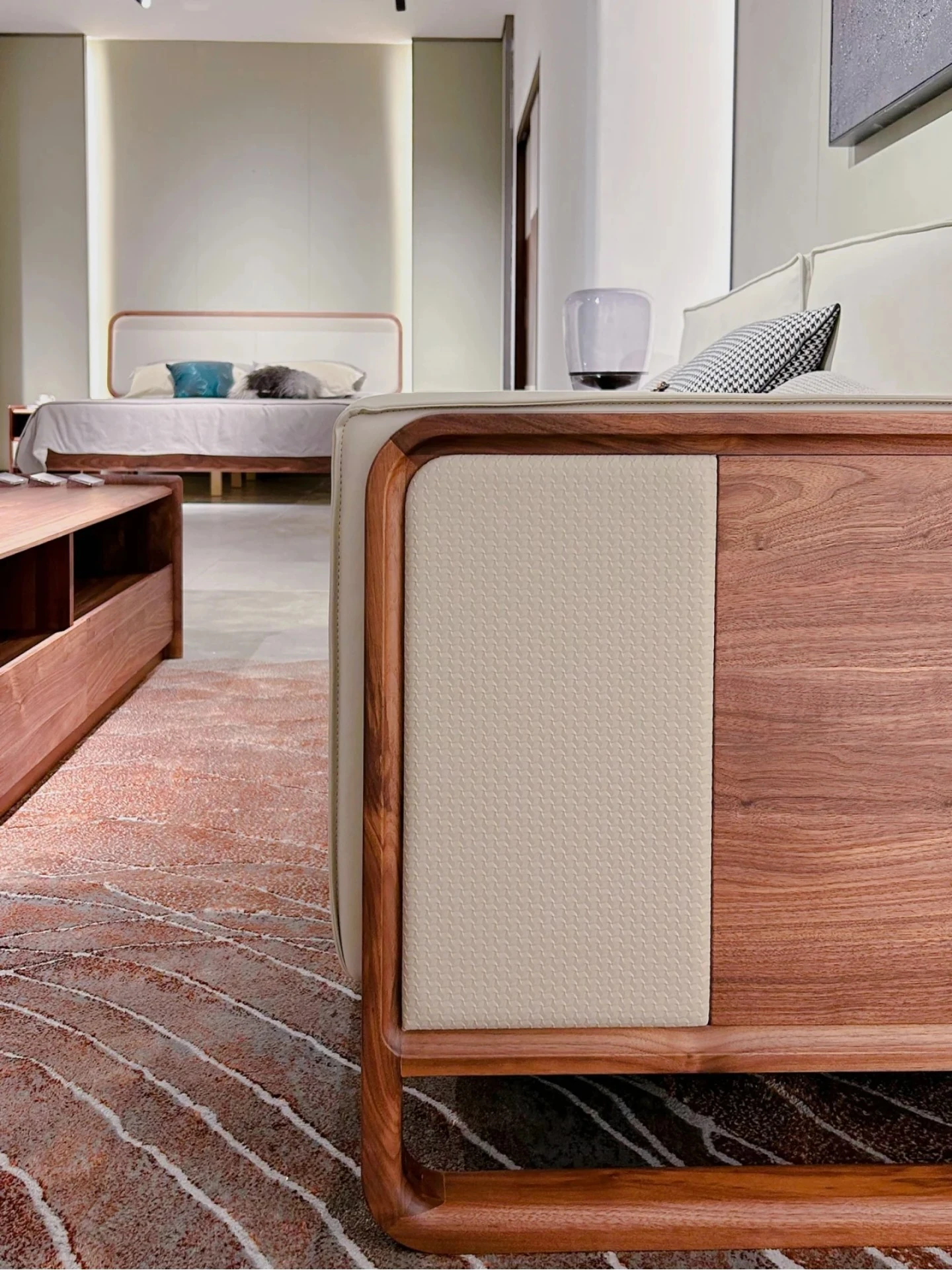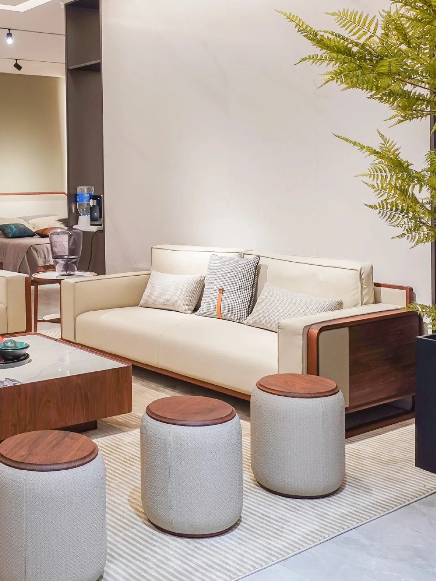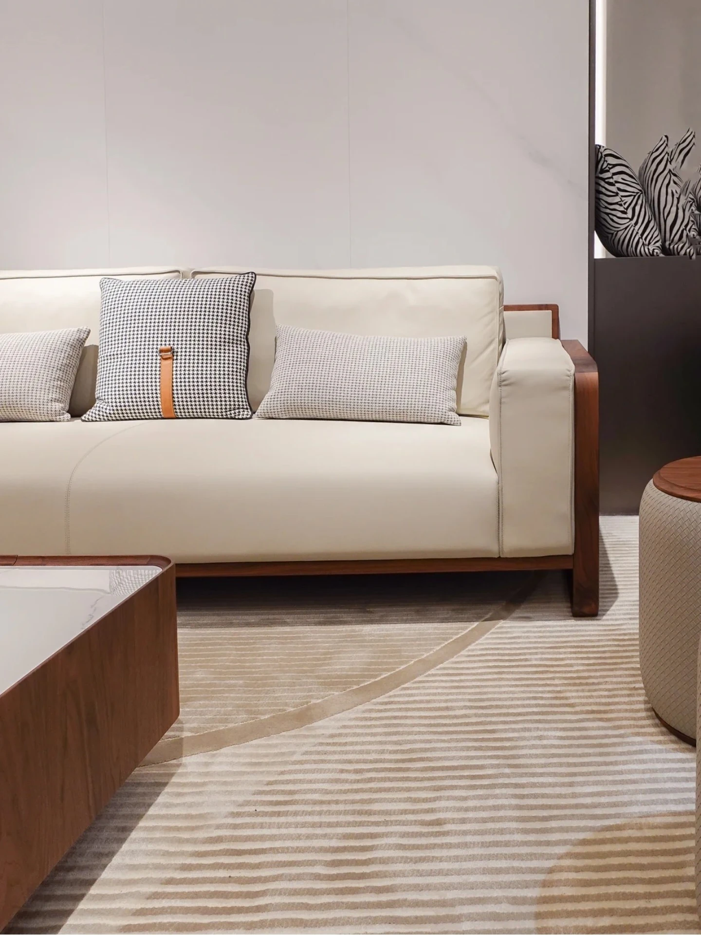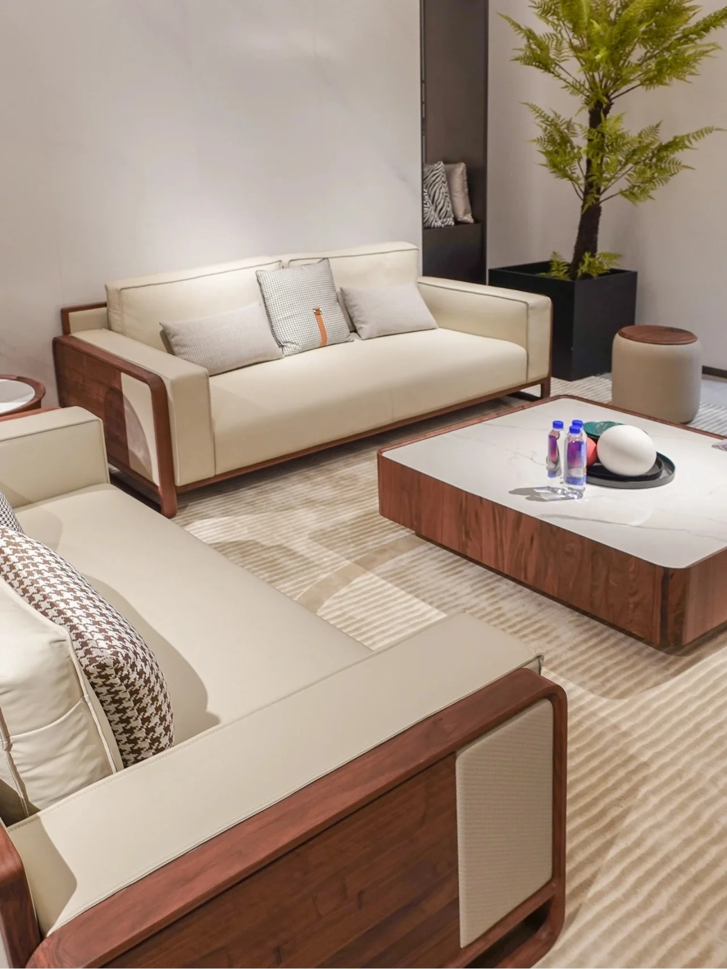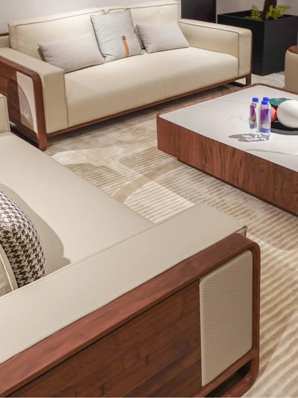 Modern Chinese Solid Wood Sofa Set for Living Room - Elegant & Minimalist Design for Spacious Homes and Reception Areas