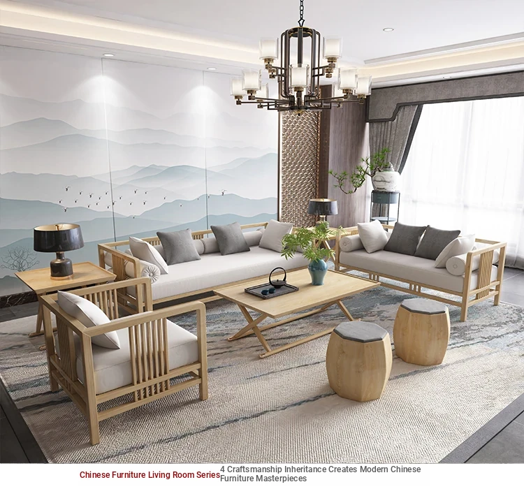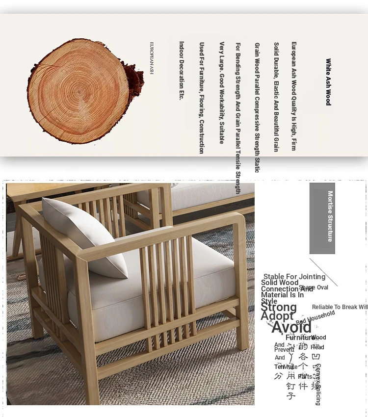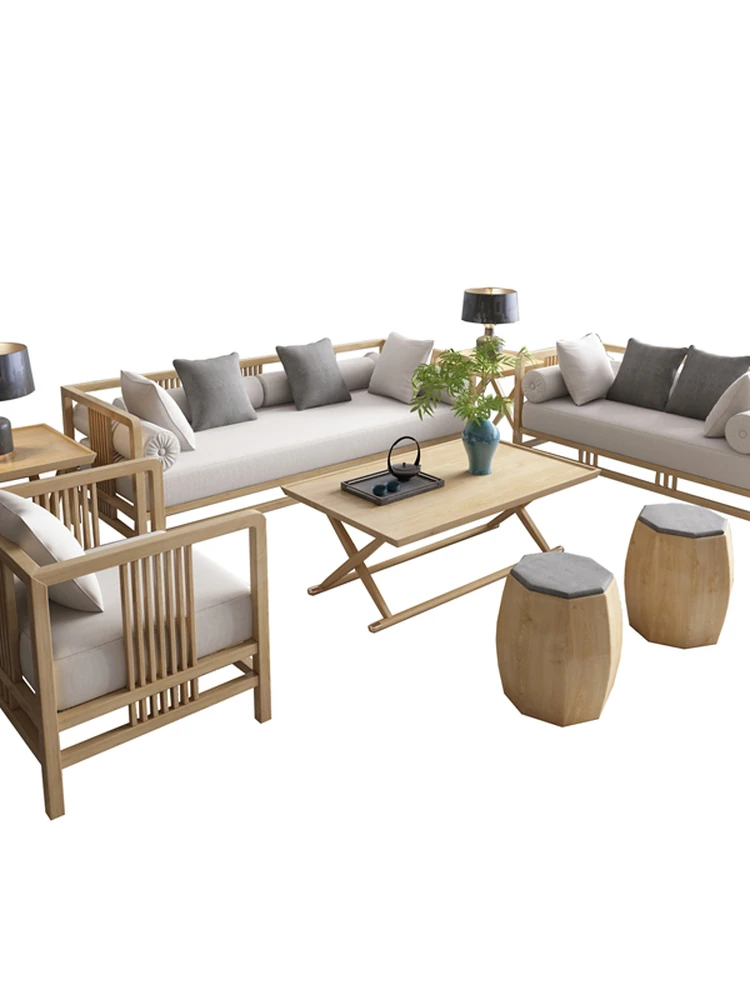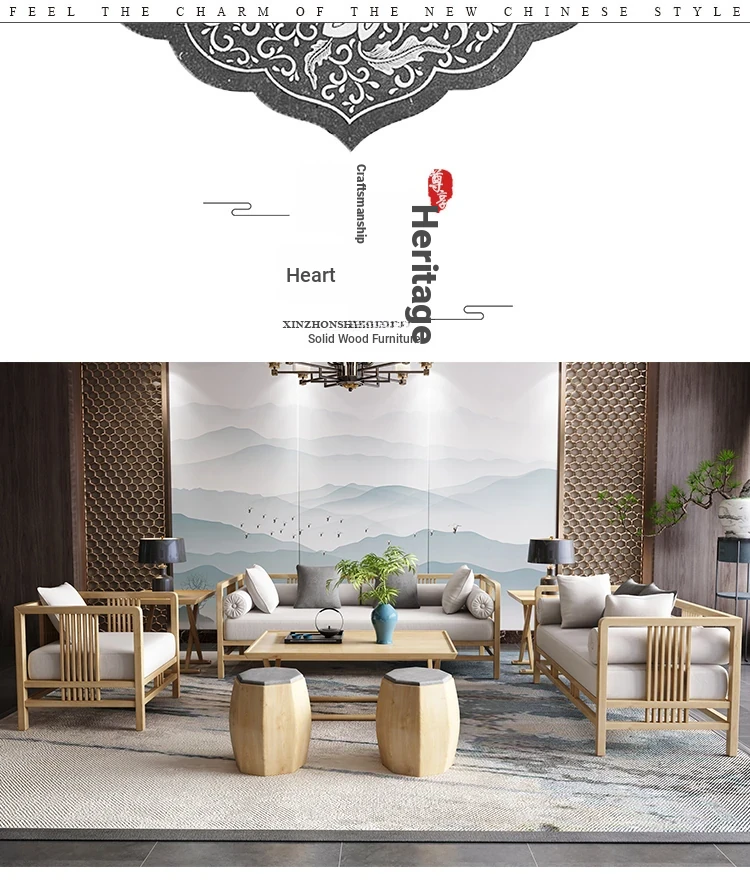 Modern Chinese Solid Wood Sofa Set - Zen-Inspired Minimalist Luxury Furniture for Villas and Guesthouses, Perfect for Contemporary Living Rooms
