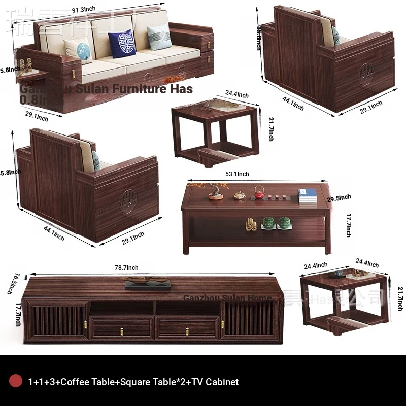 1+1+3 + with long tea table + square * 2 + TV cabinet (non-retractable)