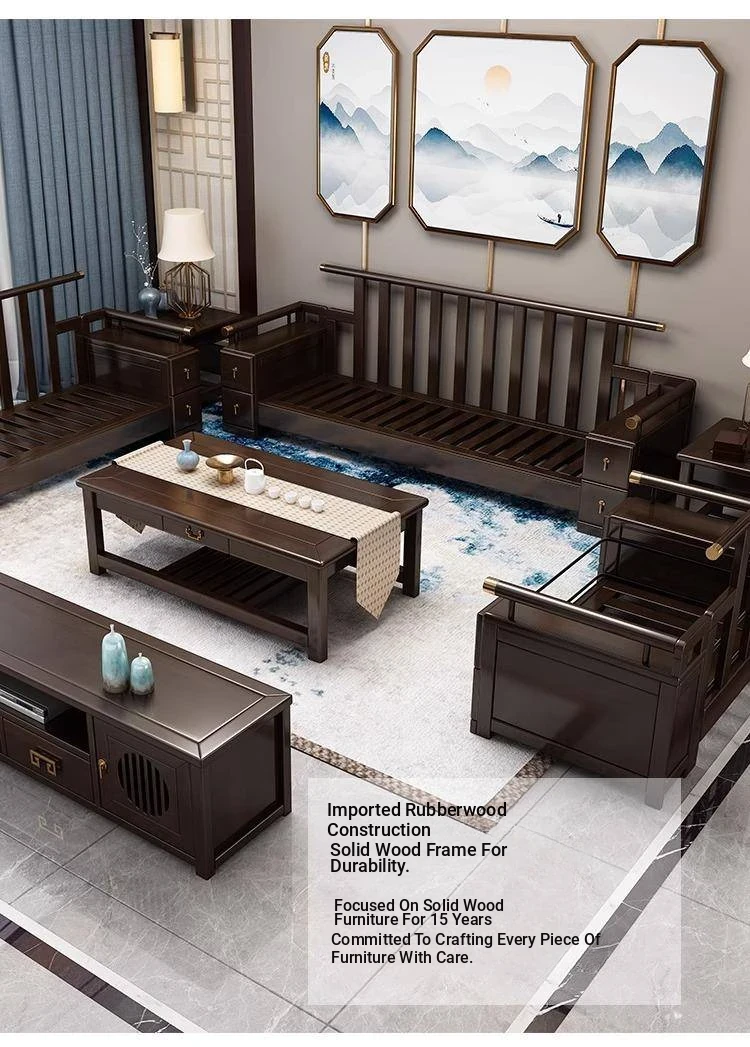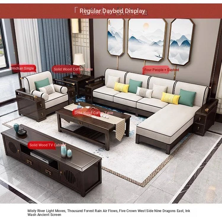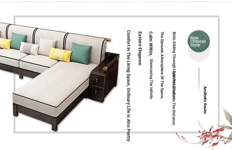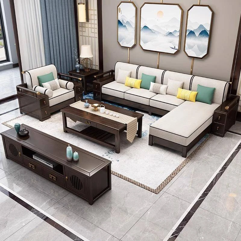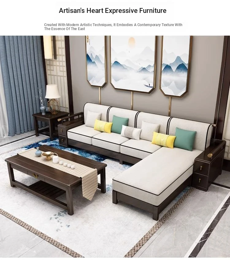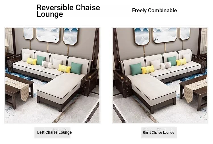 Modern Chinese Style Solid Wood Sofa Set – Versatile All-Season Design for Your Living Room – Minimalist Luxury Corner Chaise Lounge Sofa