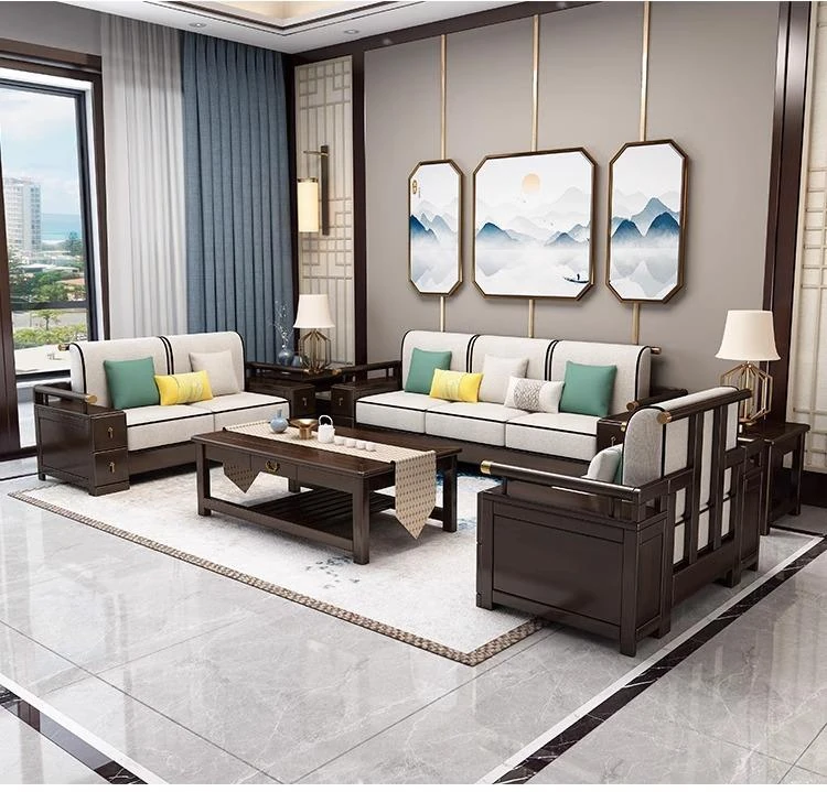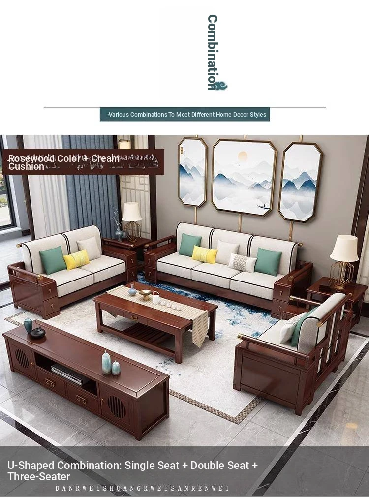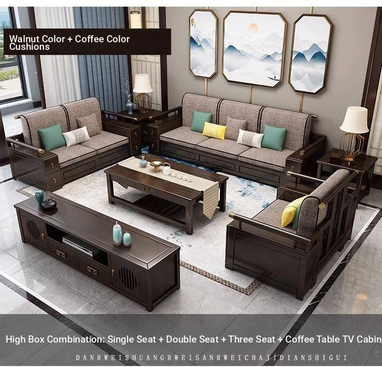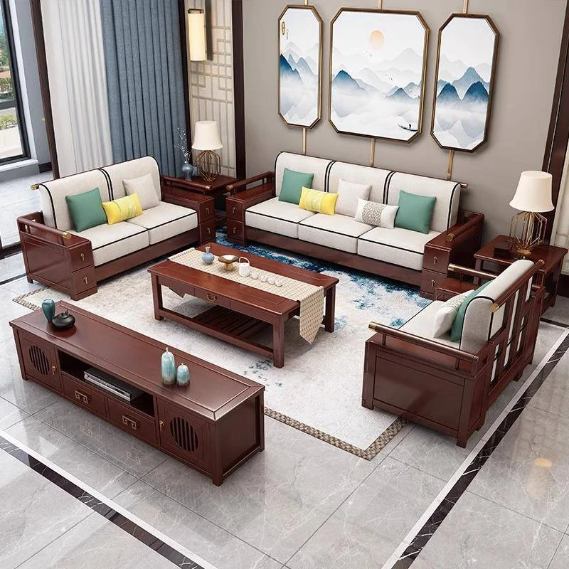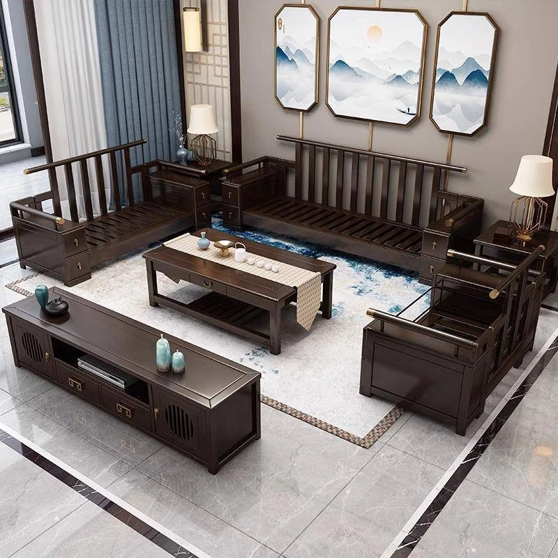 Modern Chinese Style Solid Wood Sofa Set – Versatile All-Season Design for Your Living Room – Minimalist Luxury Corner Chaise Lounge Sofa