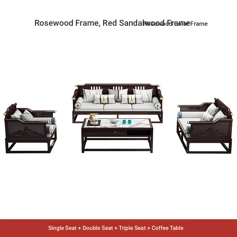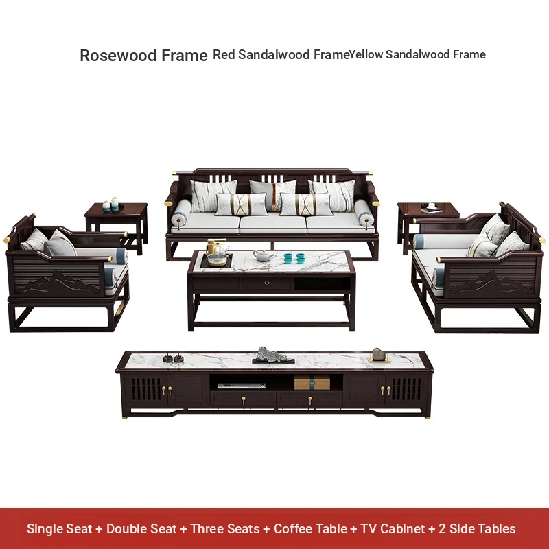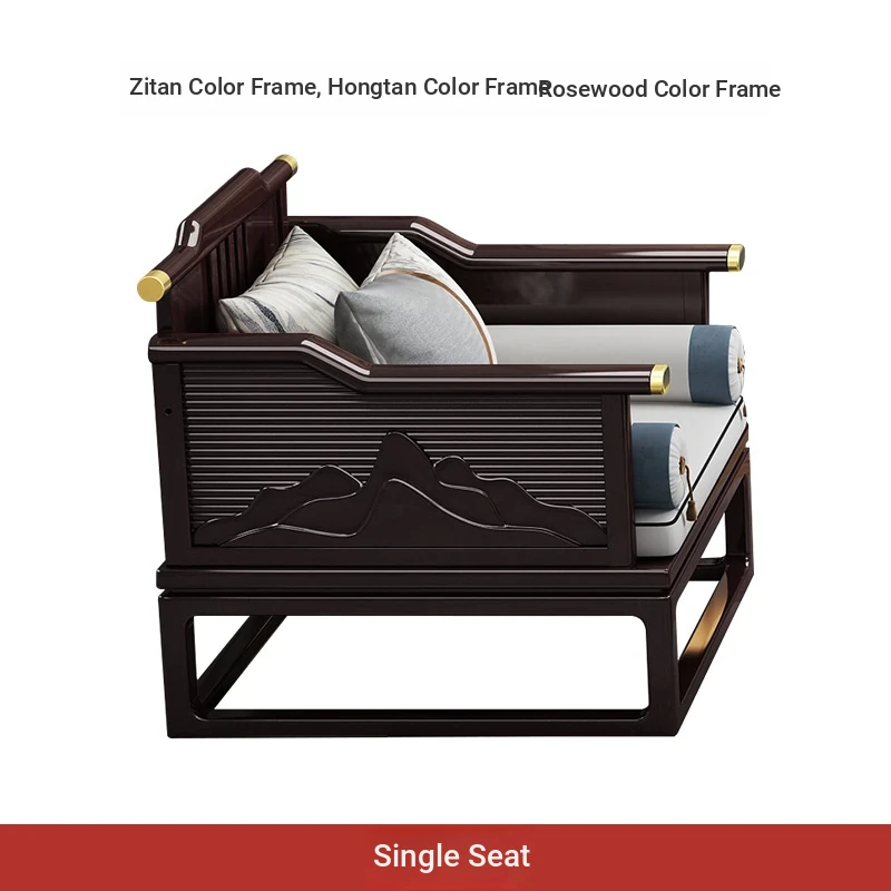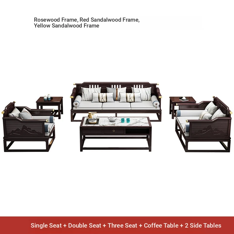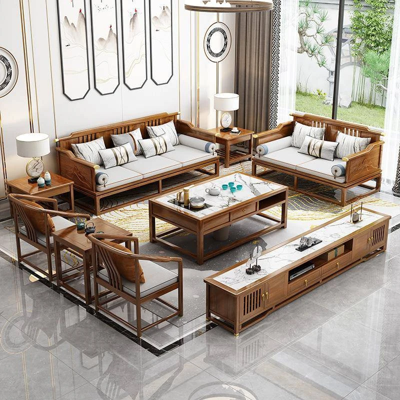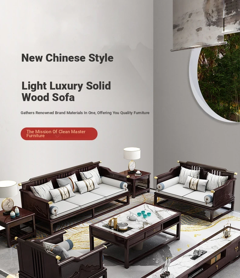 Modern Chinese Style Solid Wood Sofa Set - Minimalist Zen Luxury for Spacious Villas, Perfect for Living Room Décor with Elegant Chinese Aesthetics.