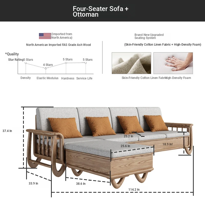 Modern Minimalist L-Shaped Sofa for Summer – Perfect for Small Apartments, Featuring High Backrest and Storage Box for Living Room, Model 168013